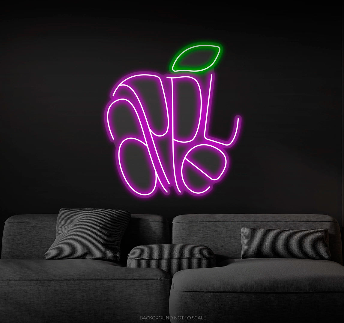 Apple-Shaped Design: The classic apple shape is beautifully outlined in neon, creating a universally recognizable and appealing symbol.