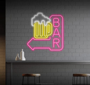 Raise a glass to good times with our Beer Mug and Bar Arrow LED Neon Sign. It's the perfect addition to any space, infusing an atmosphere of celebration and camaraderie that will keep you and your friends toasting all night long!