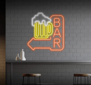 Are you a bar owner or a beer enthusiast looking to add a touch of excitement to your space? Look no further than our Beer Mug and Bar Arrow LED Neon Sign! This sleek sign is designed for those who appreciate the joy of raising a glass and enjoying great drinks.