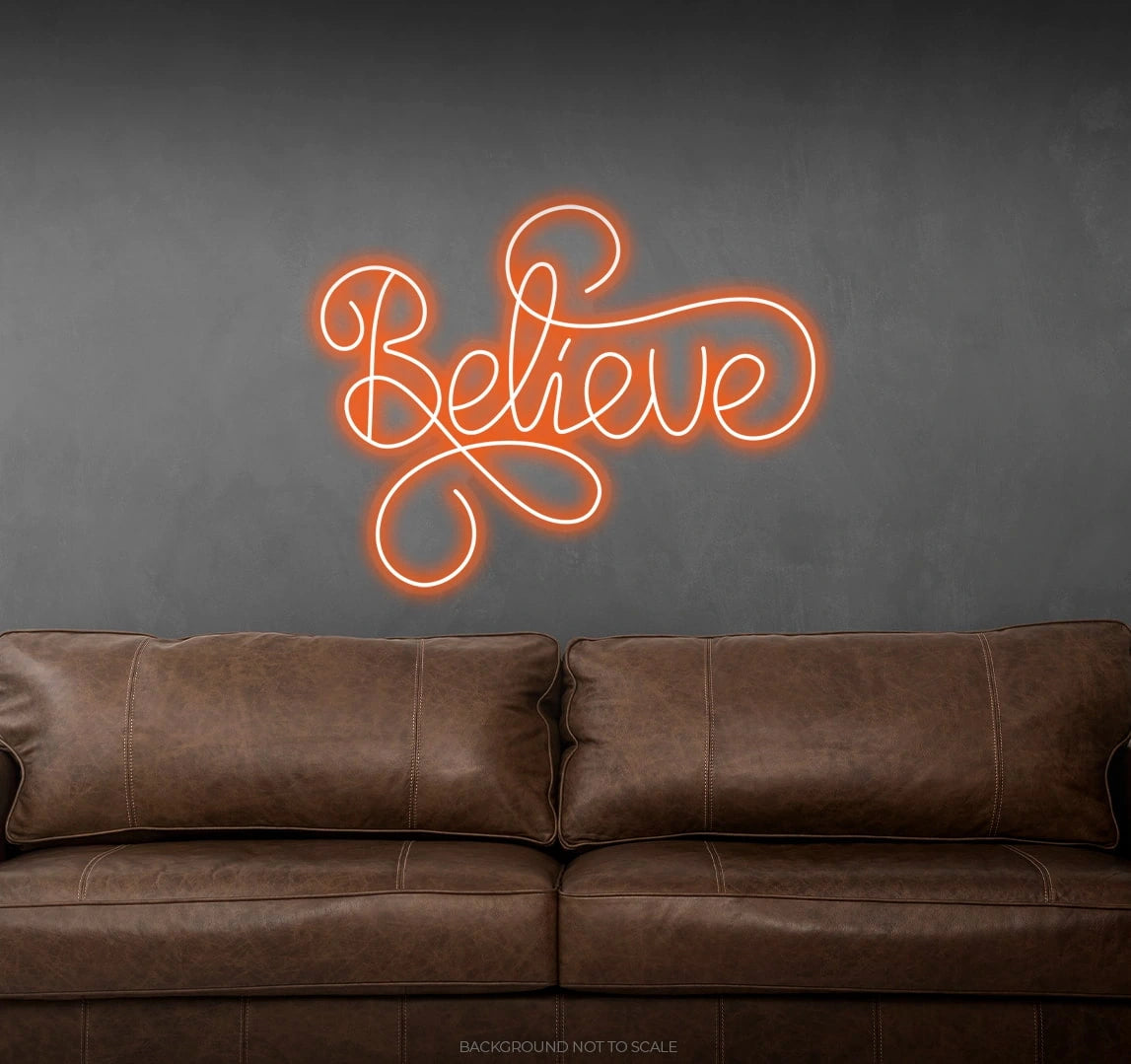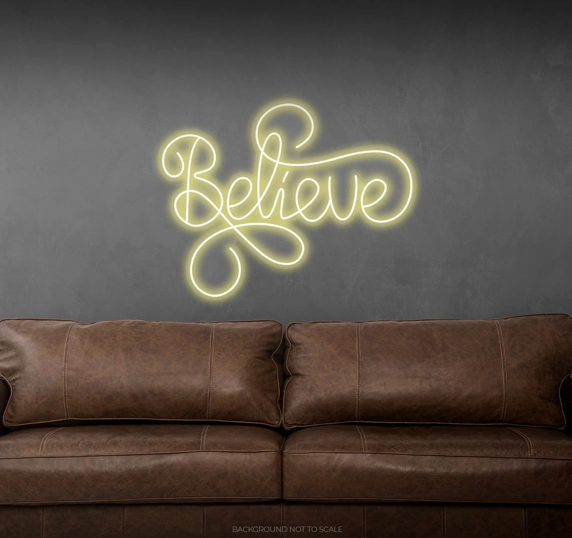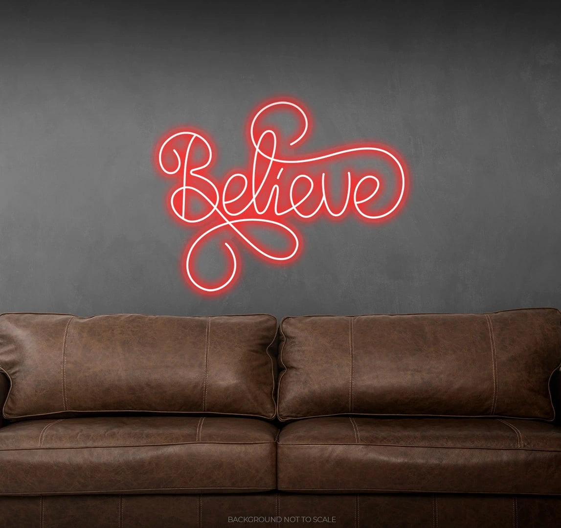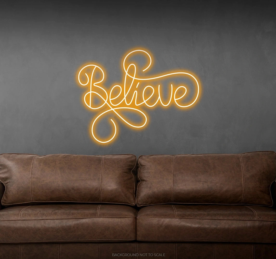 - Watch as our LED neon sign lights up your space with an inspiring and uplifting glow, featuring the word "Believe" written in a beautiful and heartfelt handwriting script ✒️🌟.