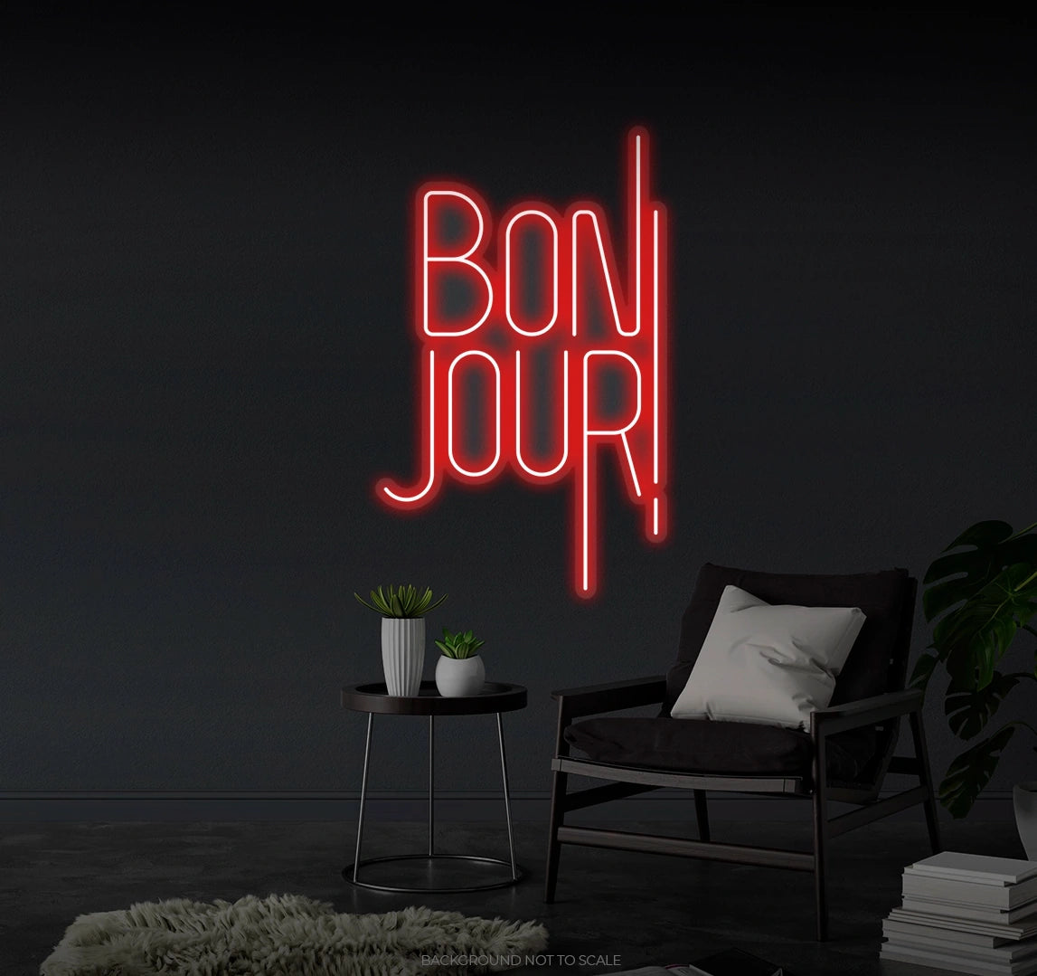 Chic Design: Crafted with a sleek and elegant font, the "Bon Jour" LED Neon adds a touch of sophistication to your decor. It’s an eye-catching piece that effortlessly blends style with functionality.