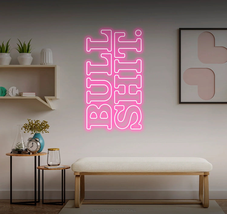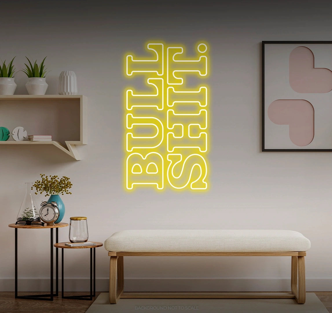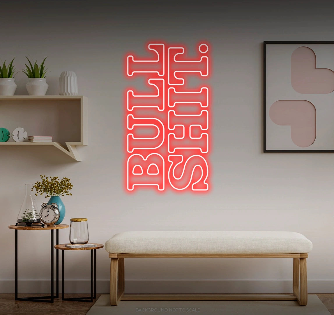 1. Bold Radiance: Illuminate your space with a bold and straightforward glow as our "Bullshit" Vertical LED Neon stands tall, making a candid statement. This high-energy expression transforms your surroundings into a space filled with unapologetic humor and a touch of irreverence.