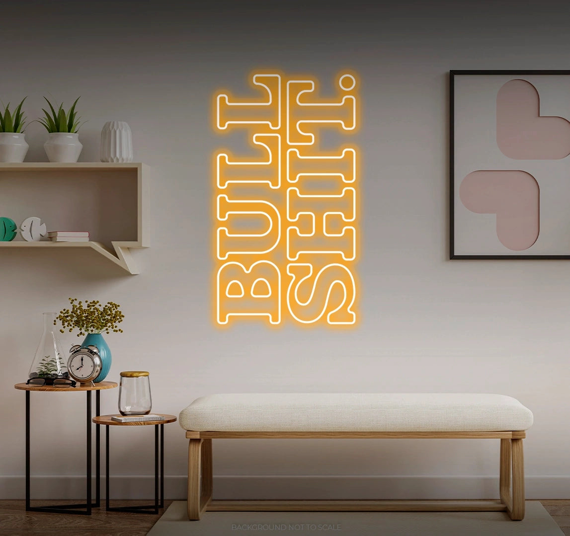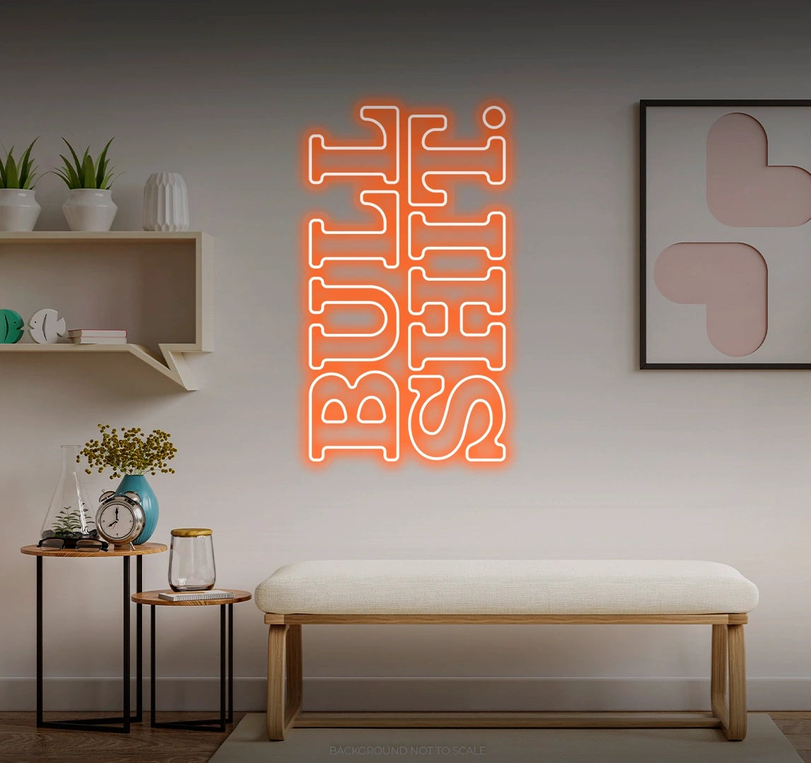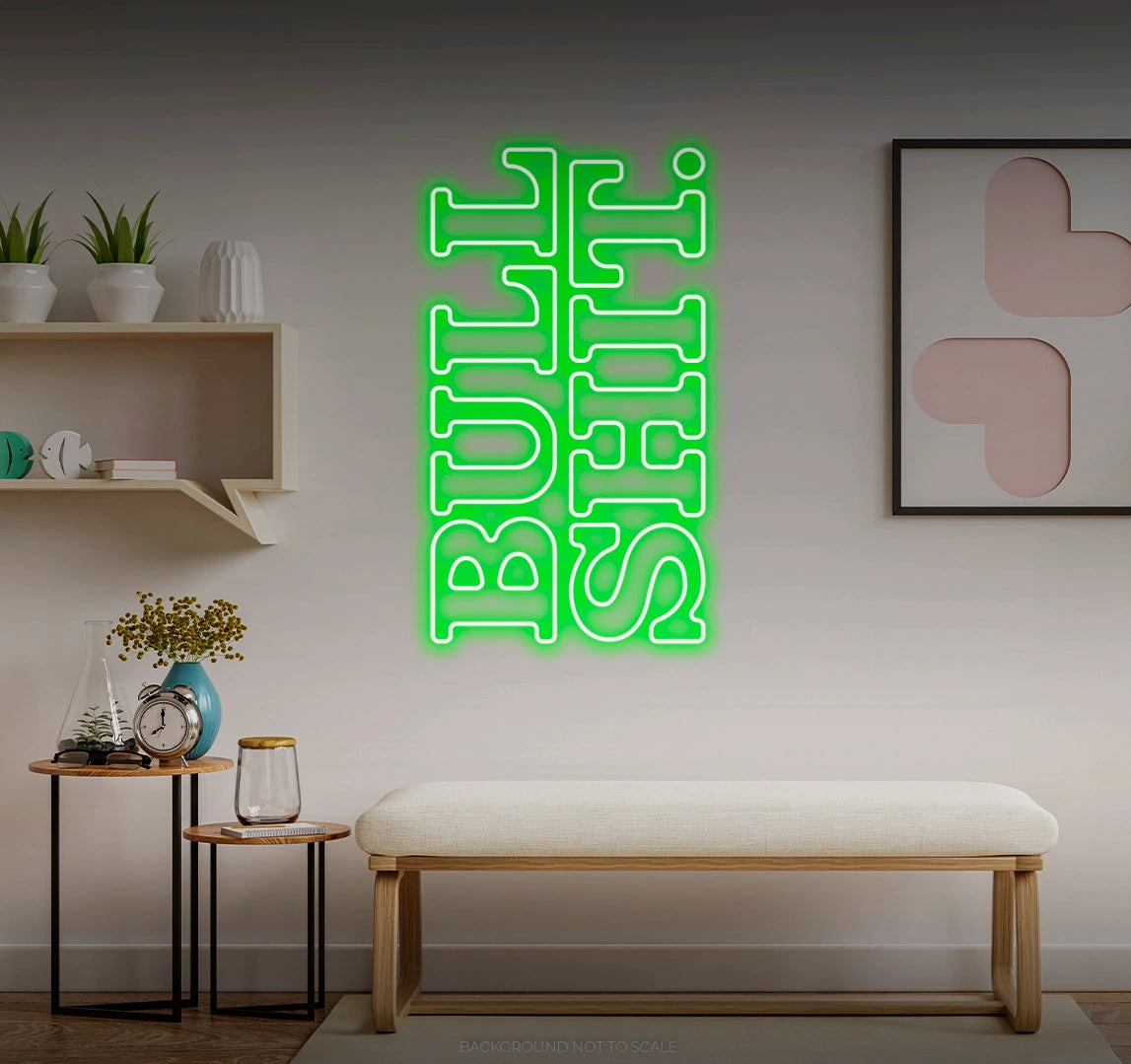 1. Bold Radiance: Illuminate your space with a bold and straightforward glow as our "Bullshit" Vertical LED Neon stands tall, making a candid statement. This high-energy expression transforms your surroundings into a space filled with unapologetic humor and a touch of irreverence.