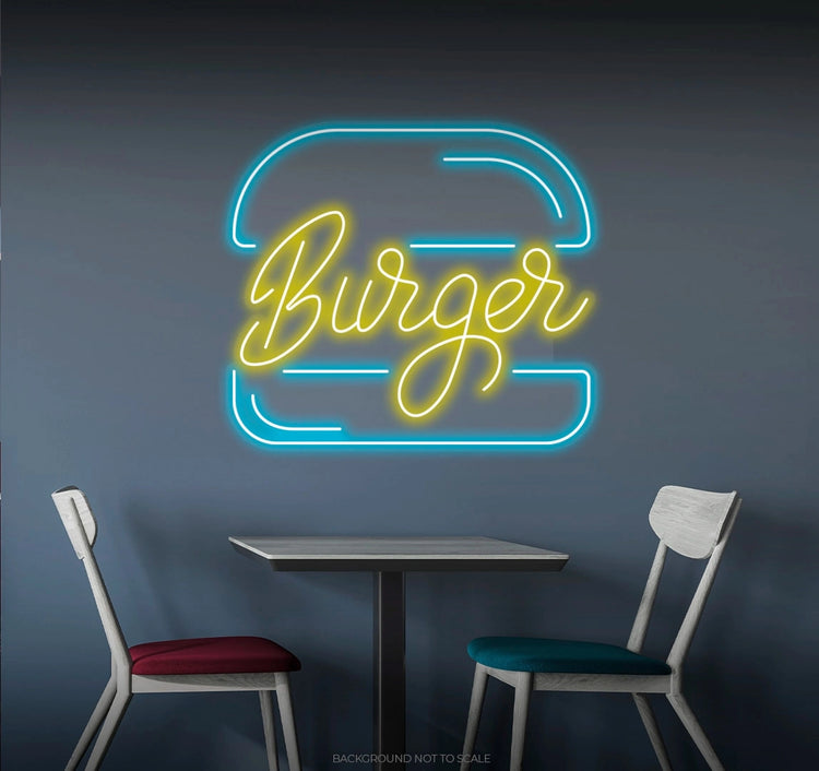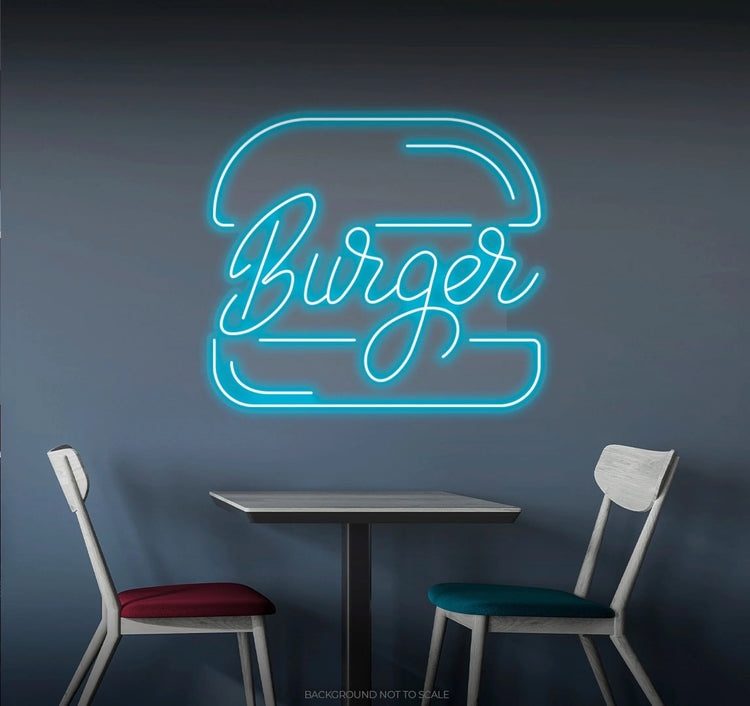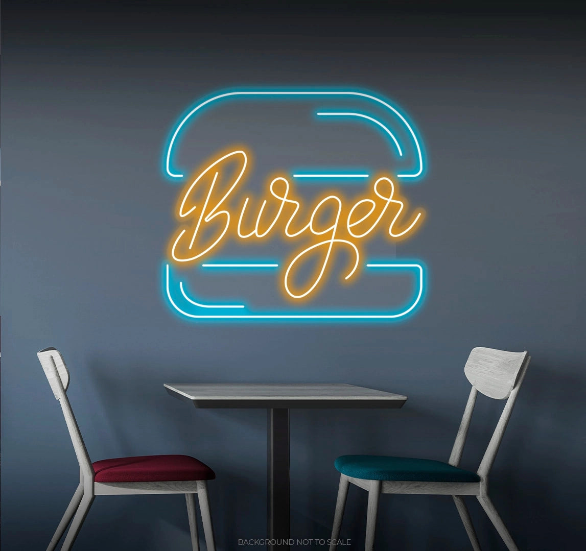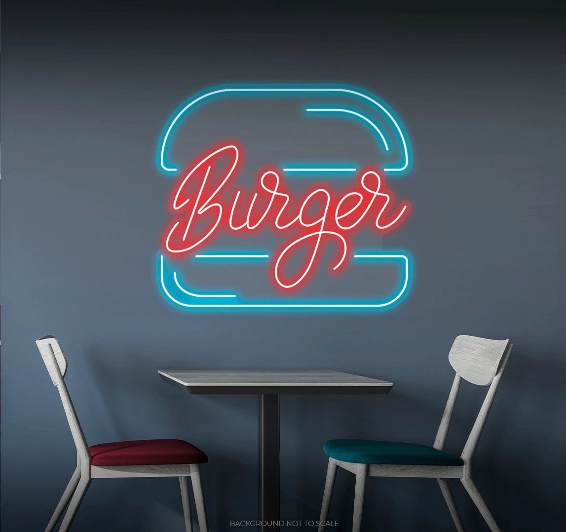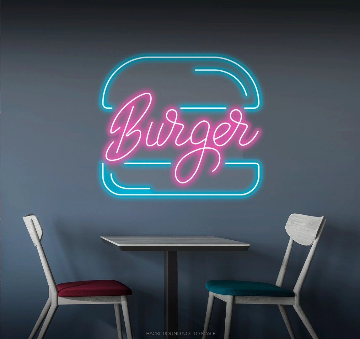 Customizable Burger-Inspired Hues: Personalize your neon sign with an array of burger-inspired colors and sizes. Tailor it to complement your space or create a combination that resonates with the dynamic and delicious beauty of "Burger Handwritten."