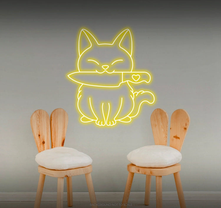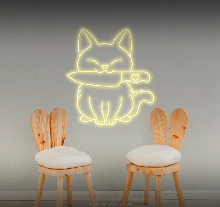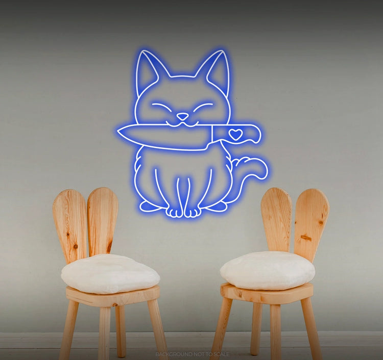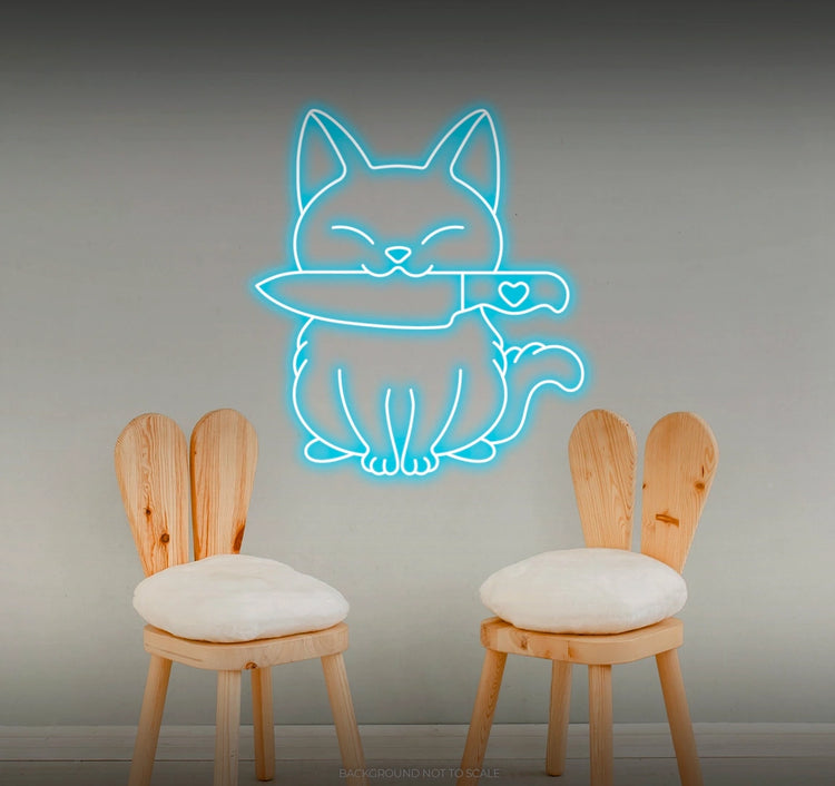 - Illuminate your space with the imaginative presence of a neon "Cat and Knife" sign, creating an atmosphere of whimsy and artistic expression.