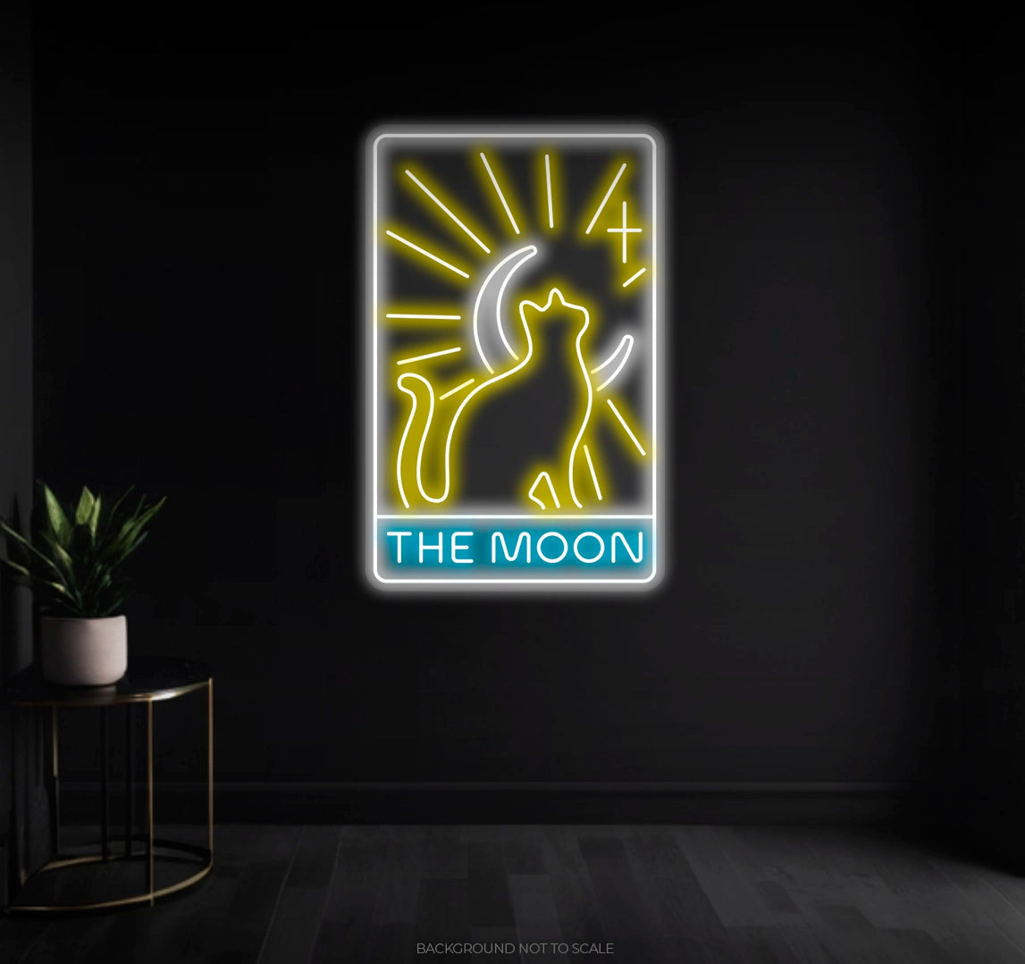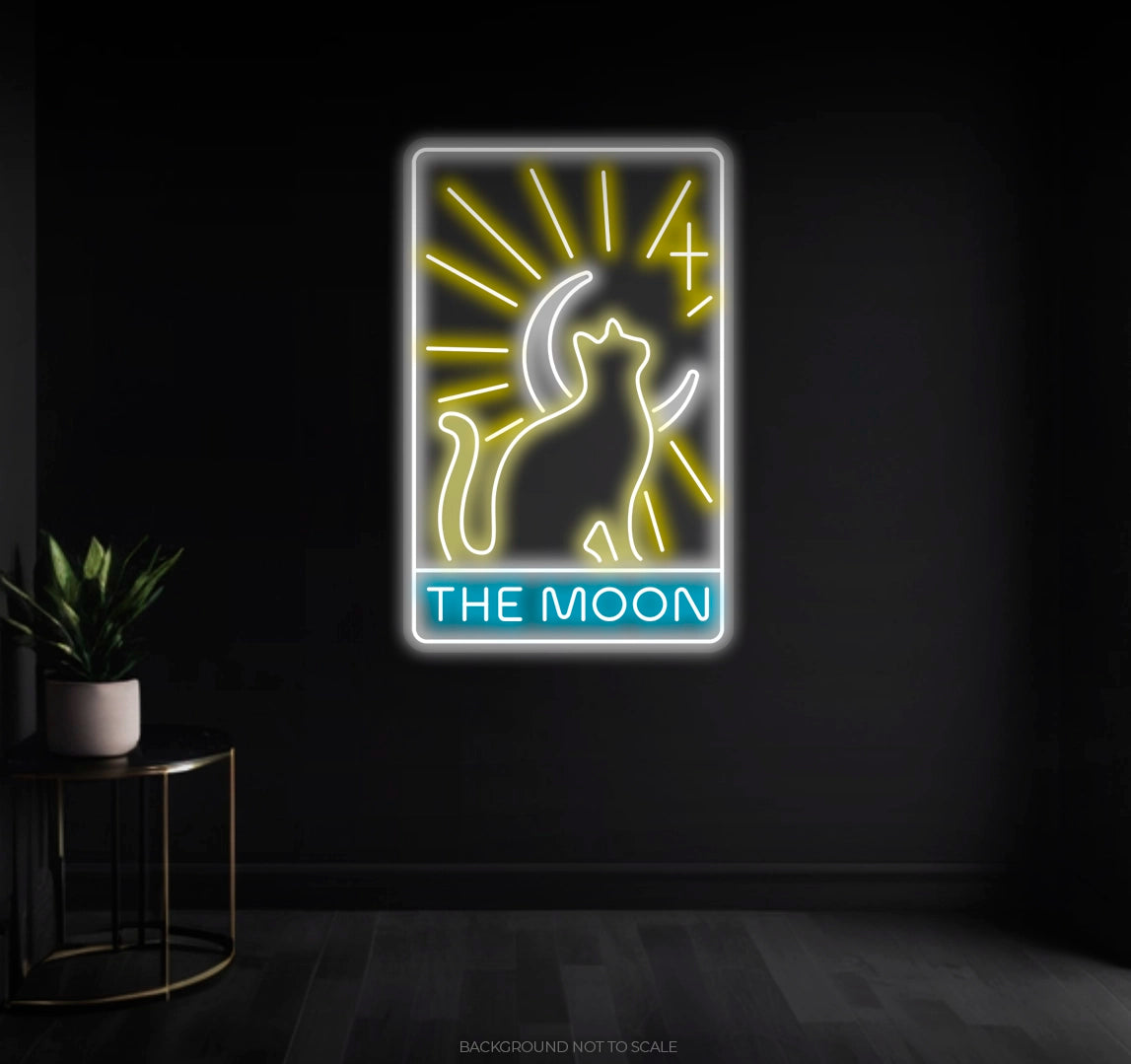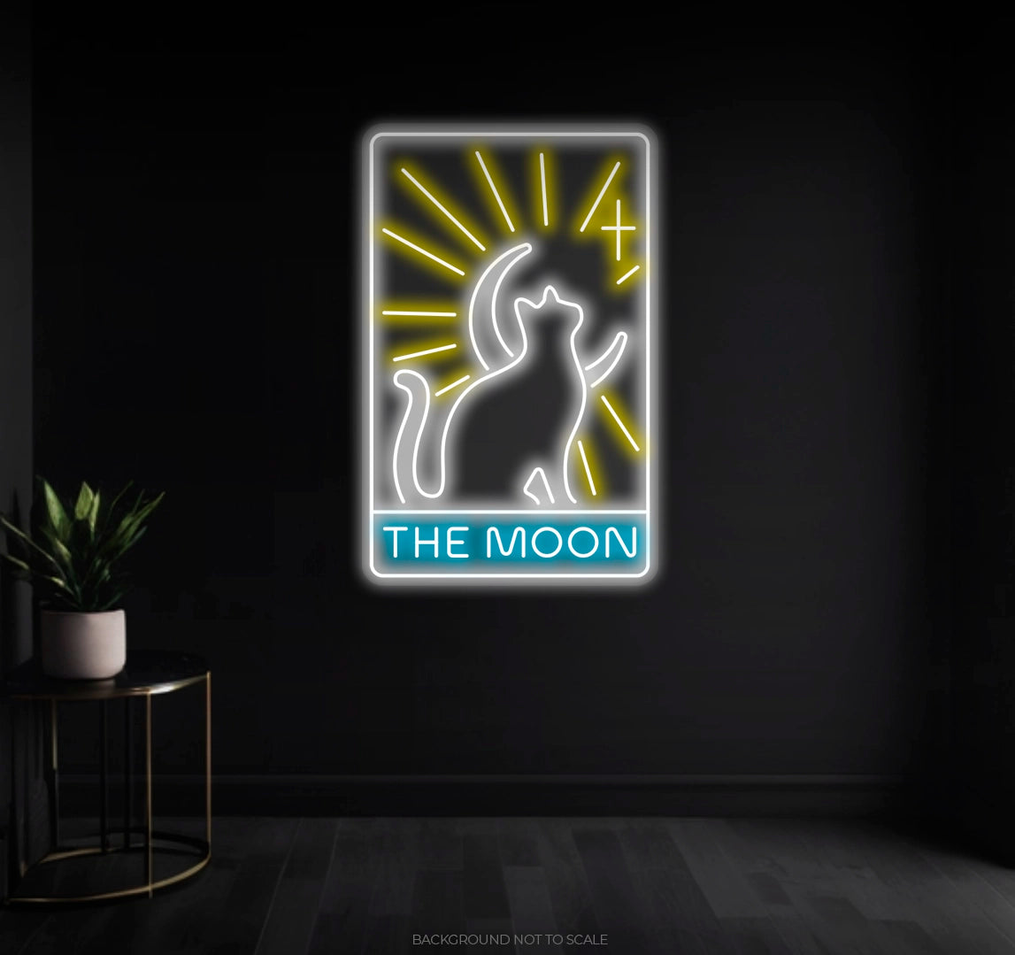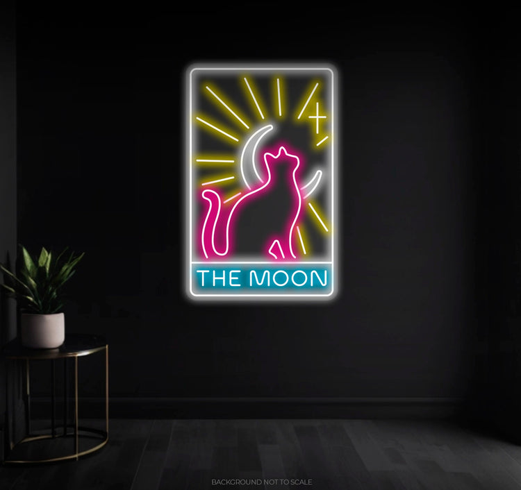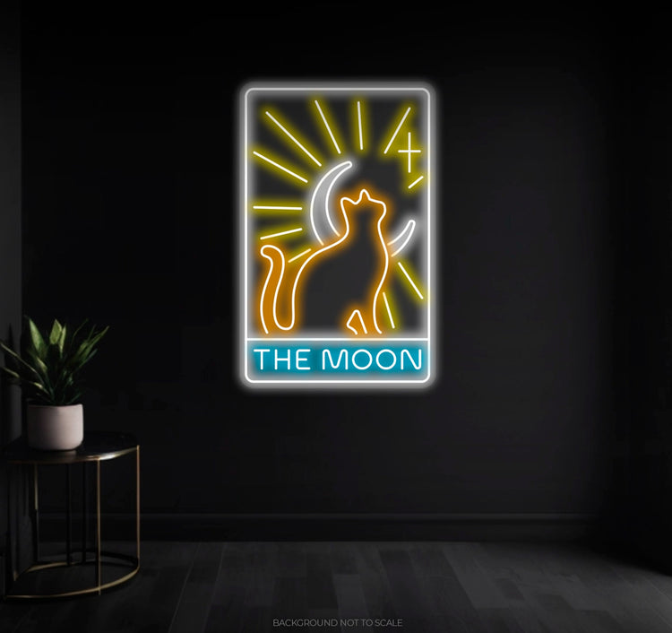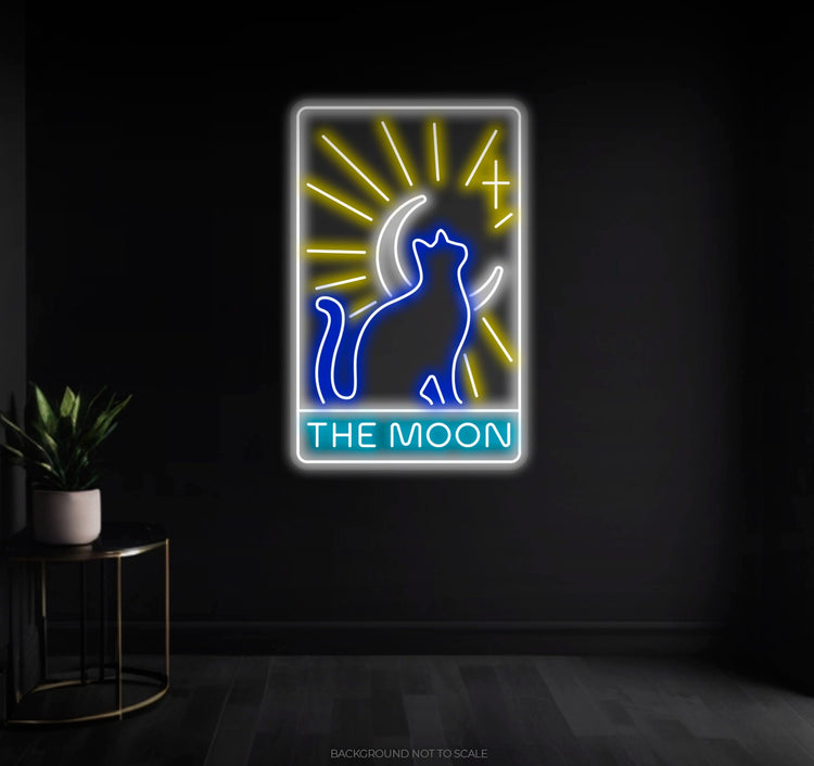 Mystical Glow: Illuminate your space with the soft, enchanting radiance of our "Cat The Moon Card" LED Neon. Featuring a charming cat lounging beneath a glowing moon, this design creates a calming and dreamy atmosphere perfect for any room.