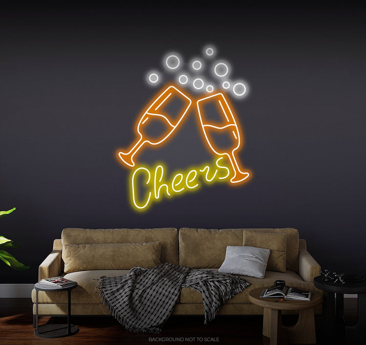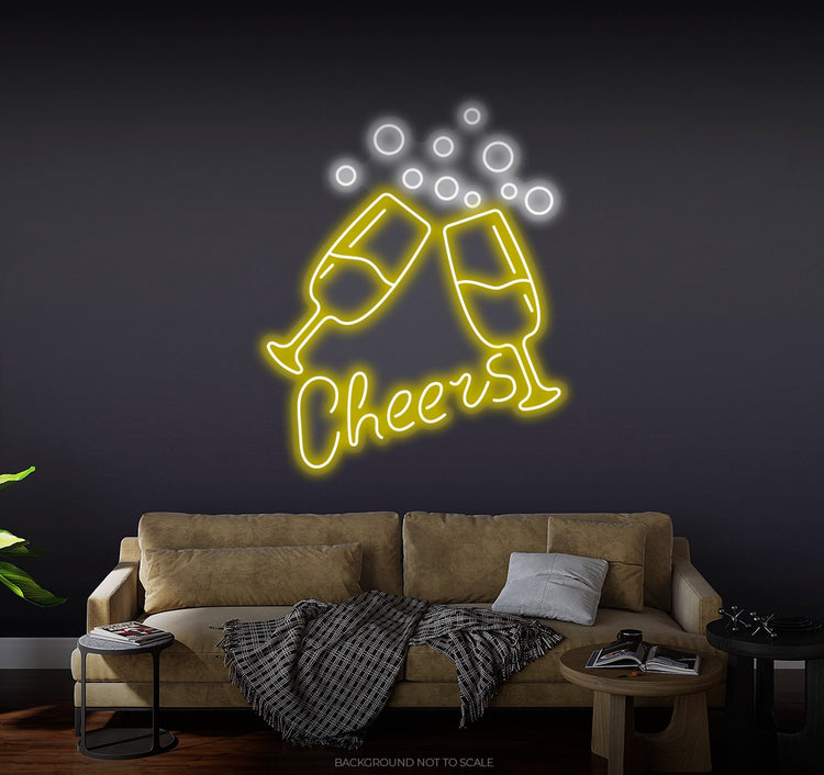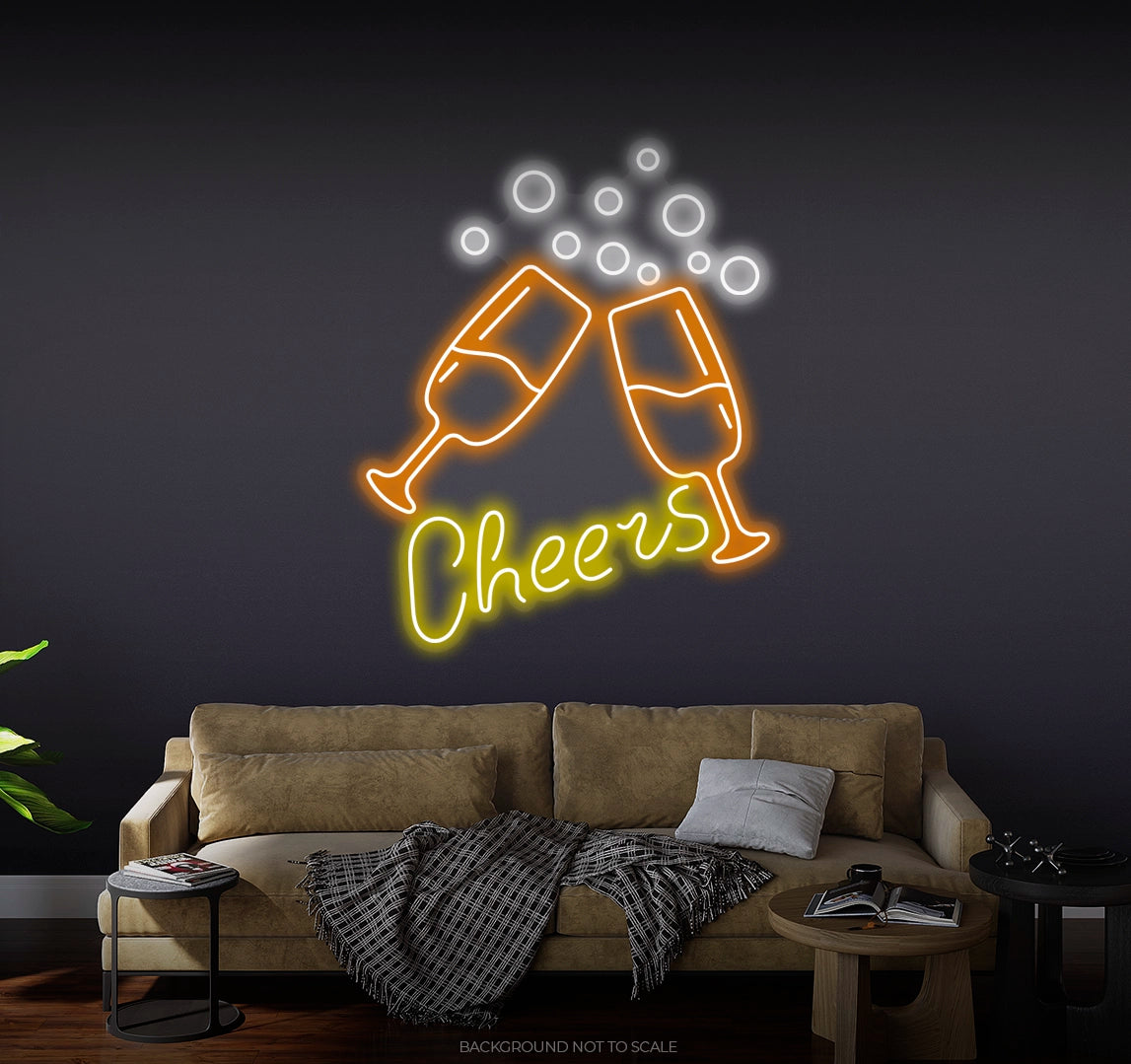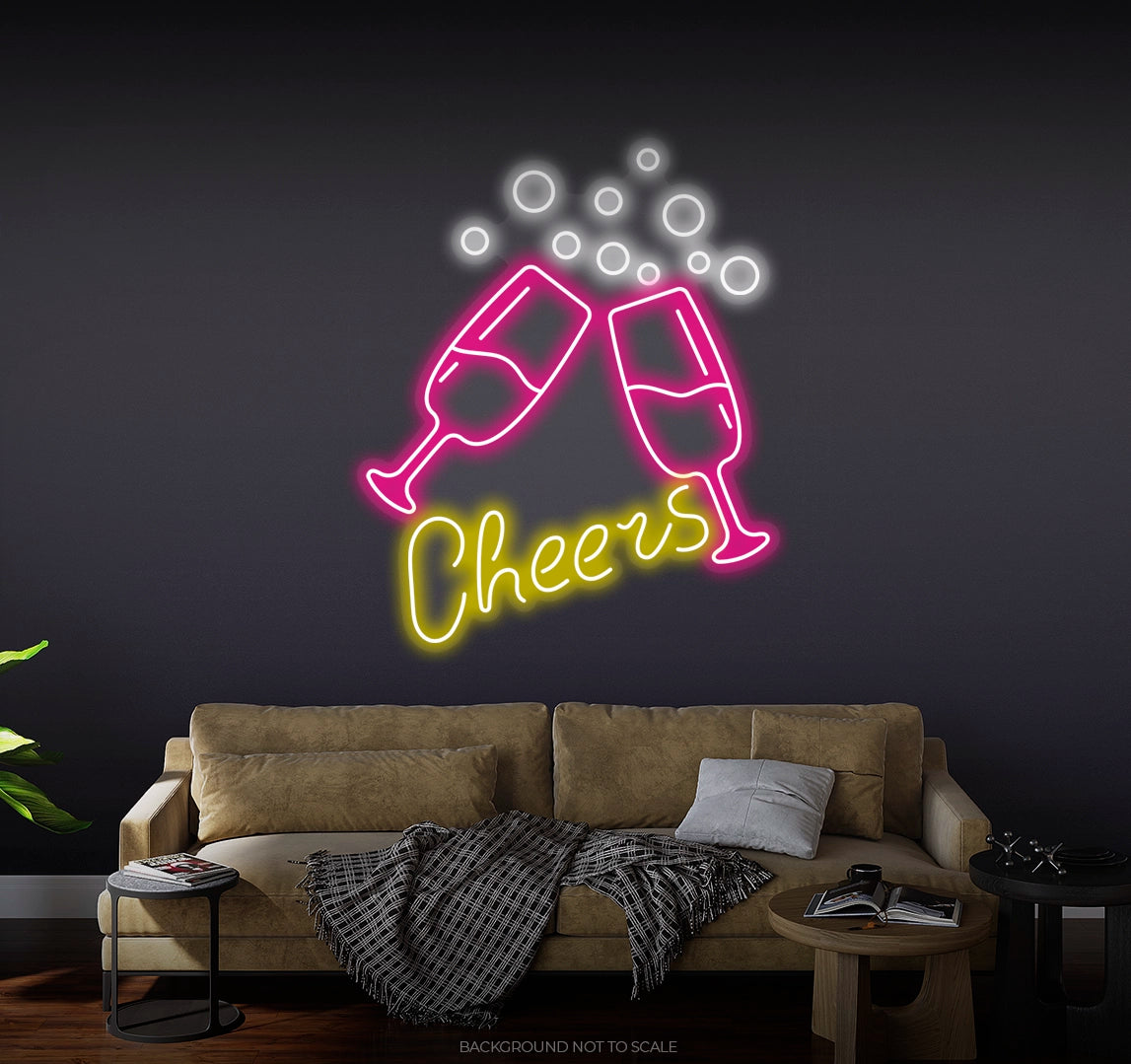 Illuminate your love for celebrations and create an inviting atmosphere with our "Cheers" and Champagne Glasses LED Neon Sign. It's an exceptional addition to any space, infusing an aura of refined festivity.
