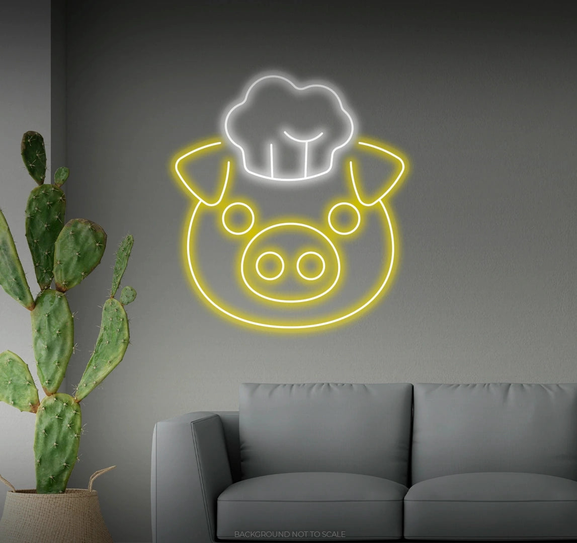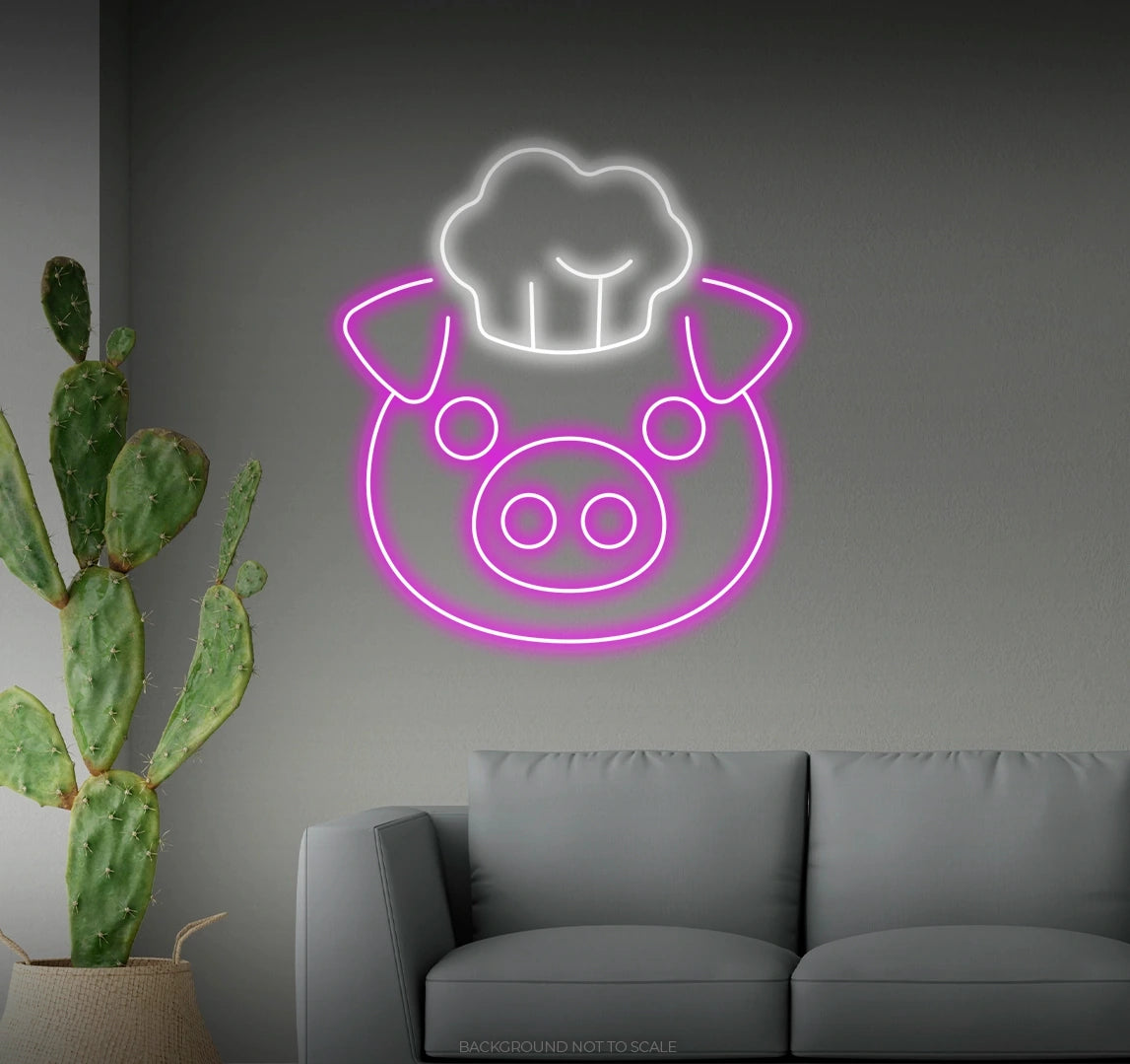 Elevate Your Space with Culinary Delight: Embrace the delicious presence of the "Chef Pig" with our LED neon sign, casting a radiant glow that enhances the ambiance and conviviality of your space, inspiring culinary adventures and memorable meals.