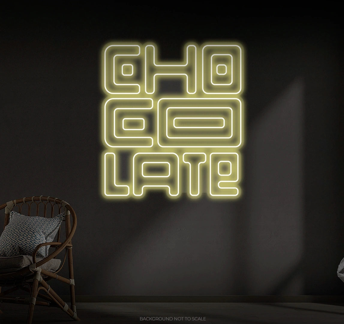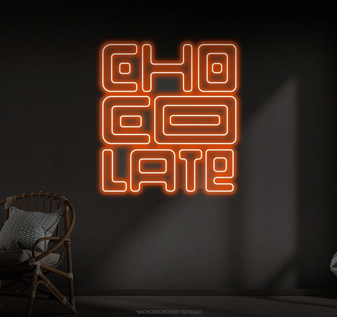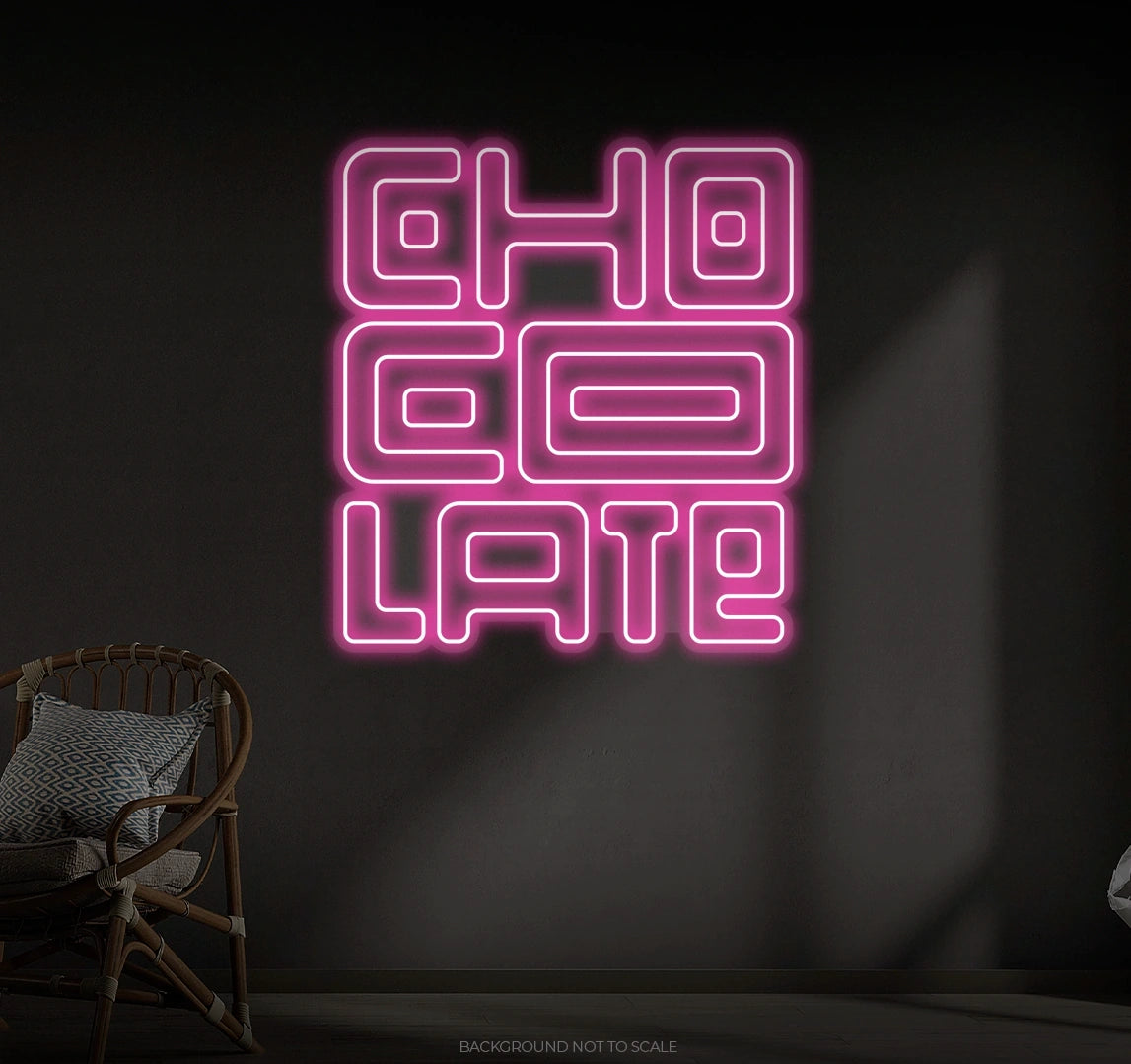 Rich Neon Glow: LED neon lights illuminate the sign with a vibrant chocolate-inspired palette—warm browns, creamy whites, or even playful pinks.