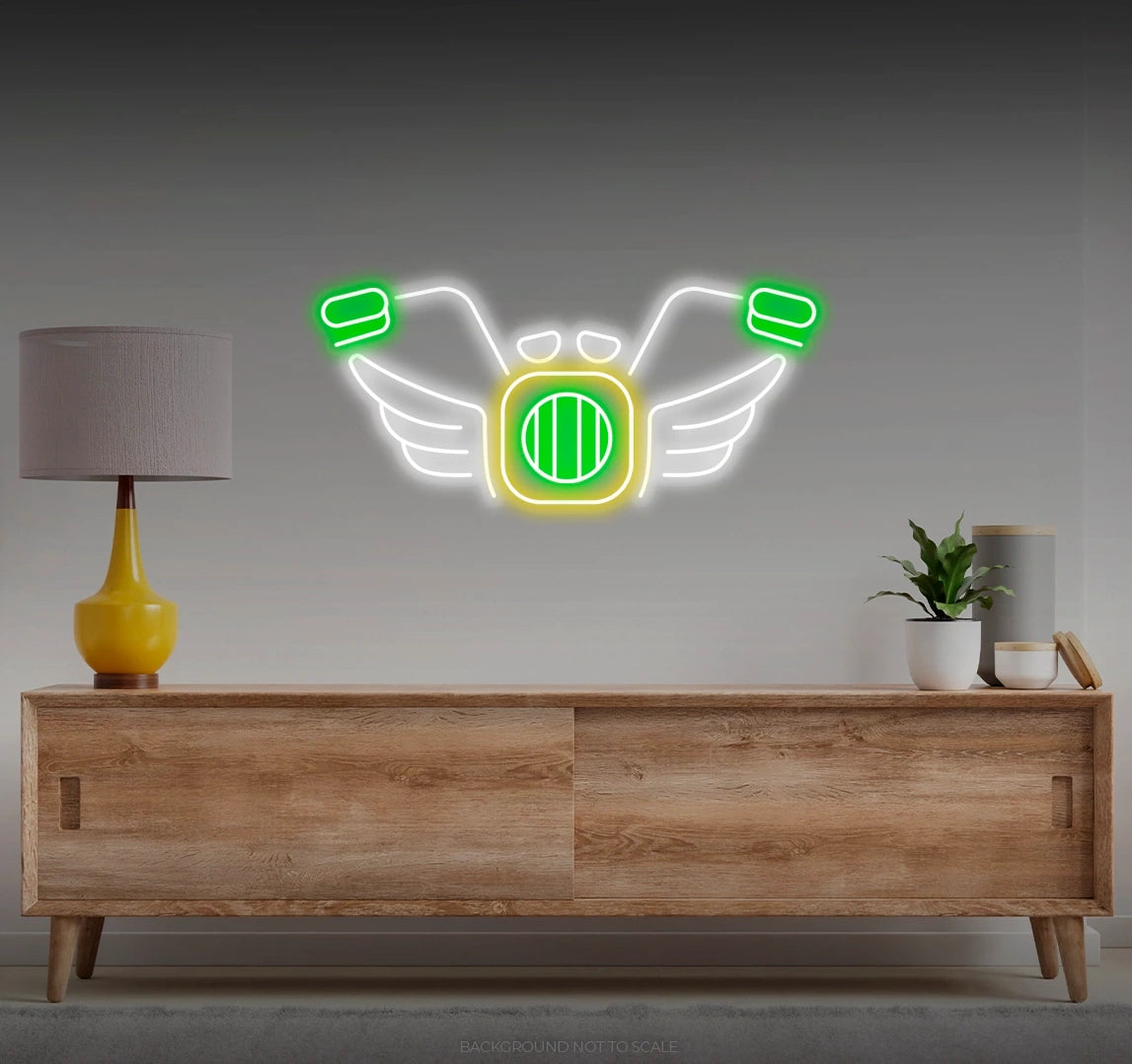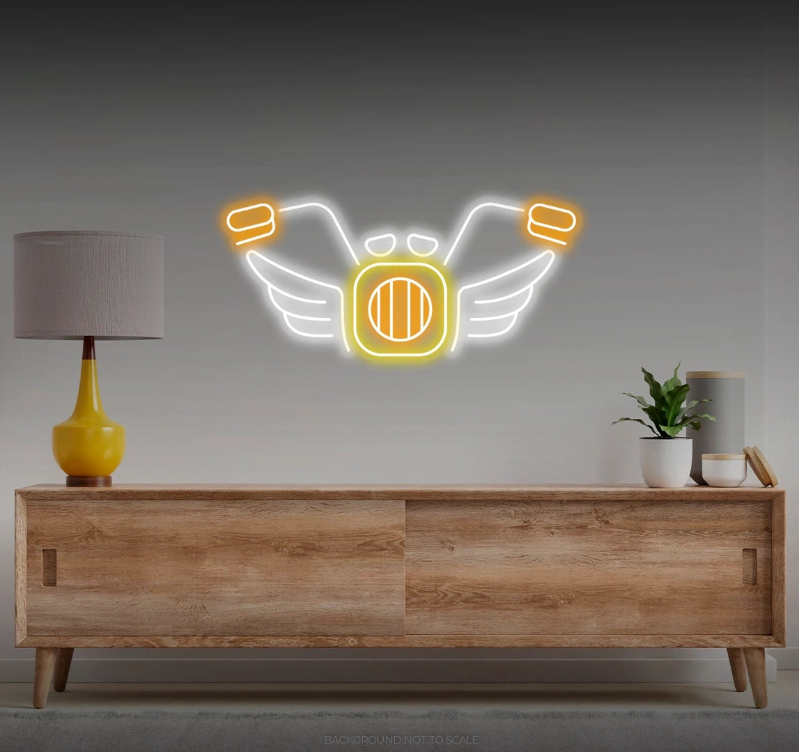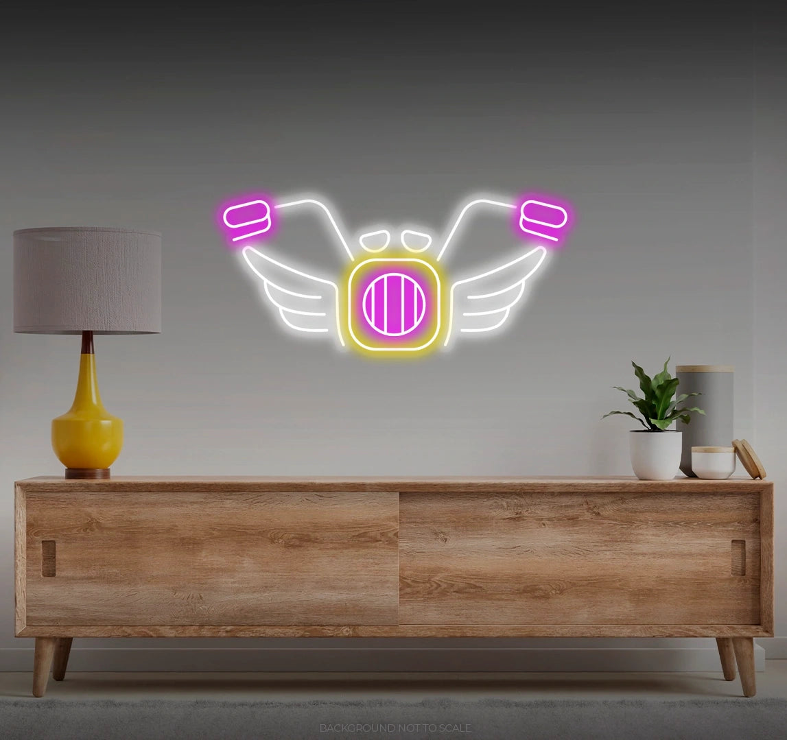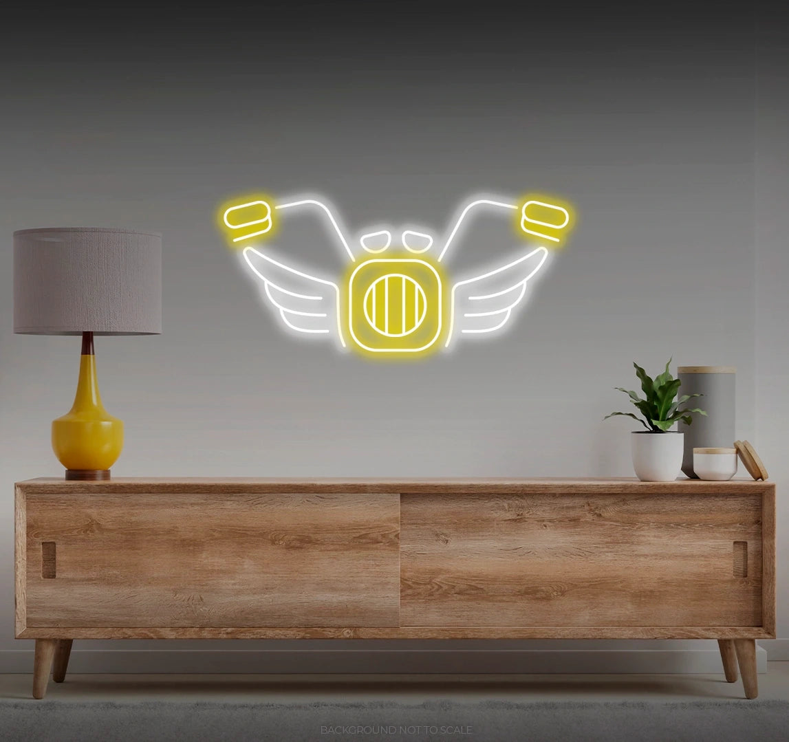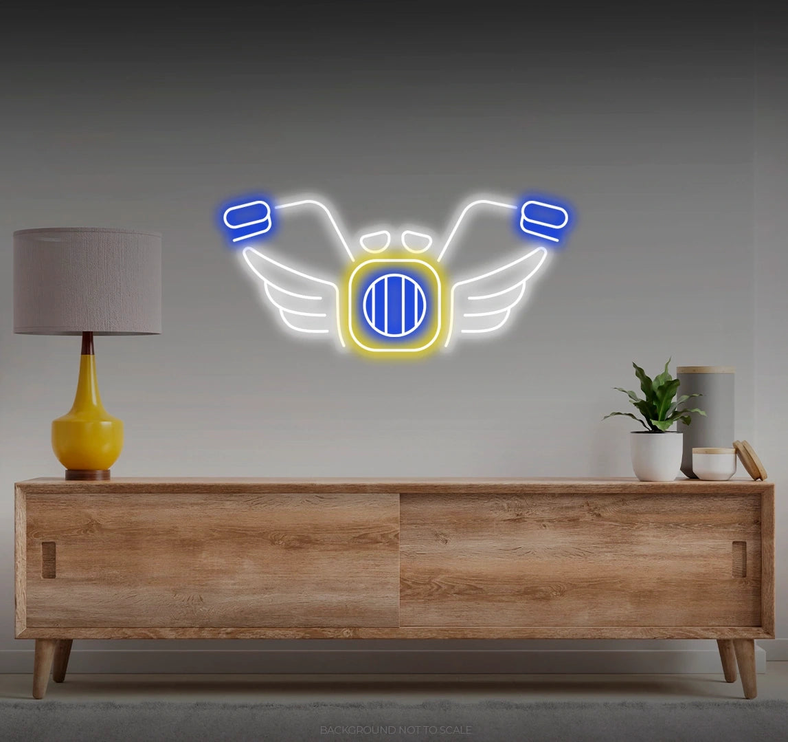 Daring Illumination: Illuminate your surroundings with a bold glow as our "Chopper Front View with Wings" LED Neon brings the thrill of the open road to any setting. Let this eye-catching creation evoke the spirit of freedom and exploration, adding a sense of adrenaline to your home, garage, or man cave.