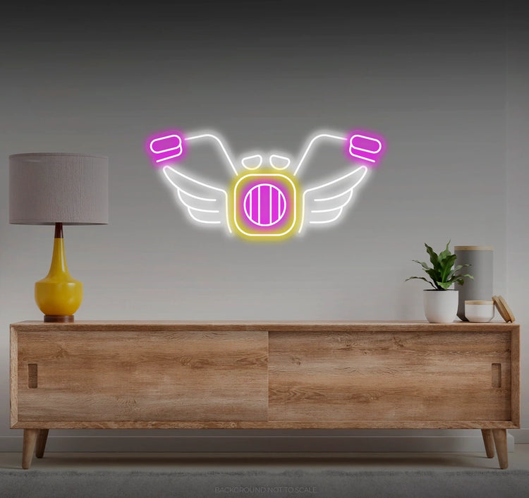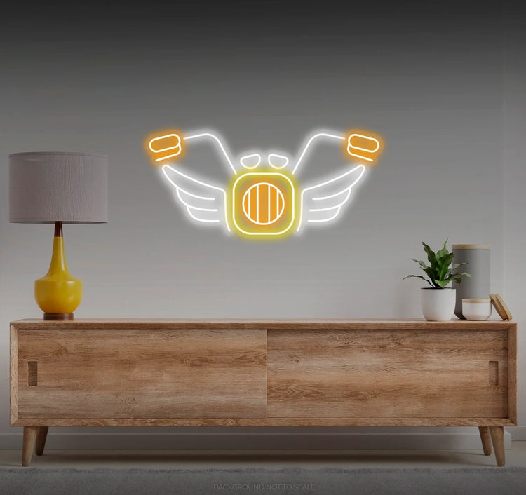 Durable and Safe: Crafted with durability in mind, our LED neon signs are safe to touch and built to last. Create a space that celebrates the spirit of adventure worry-free, as the radiant glow of "Chopper Front View with Wings" LED Neon shines brightly.