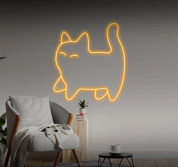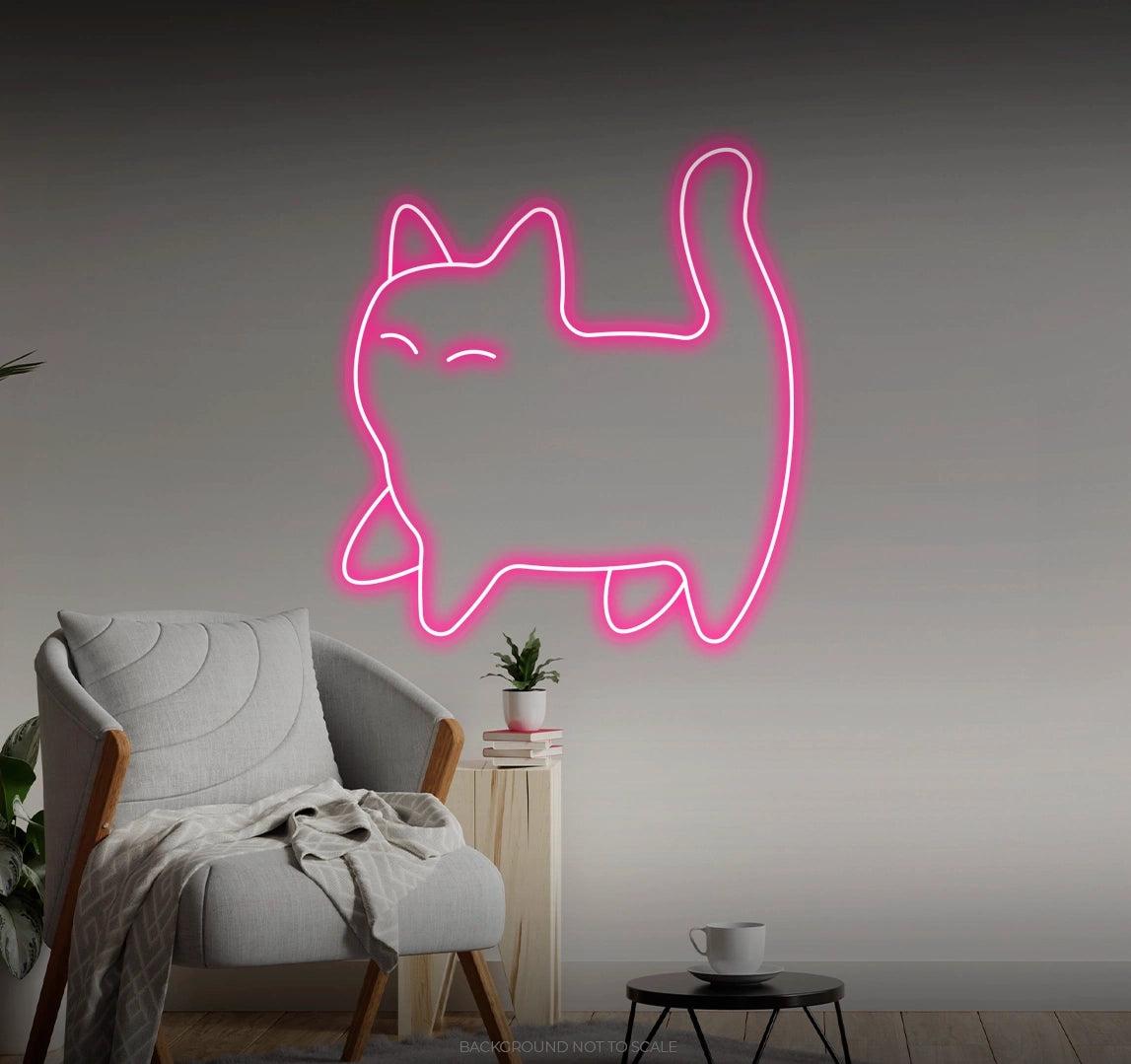 Charming Design: Illuminate your space with the heartwarming depiction of a chubby cat taking a leisurely stroll. Beyond its luminosity, our LED neon sign captures the essence of feline grace and relaxation, inviting viewers to embrace the warmth and comfort of a cat's presence.