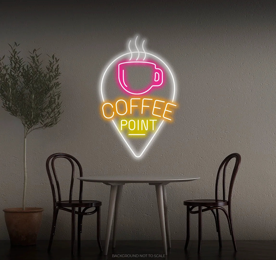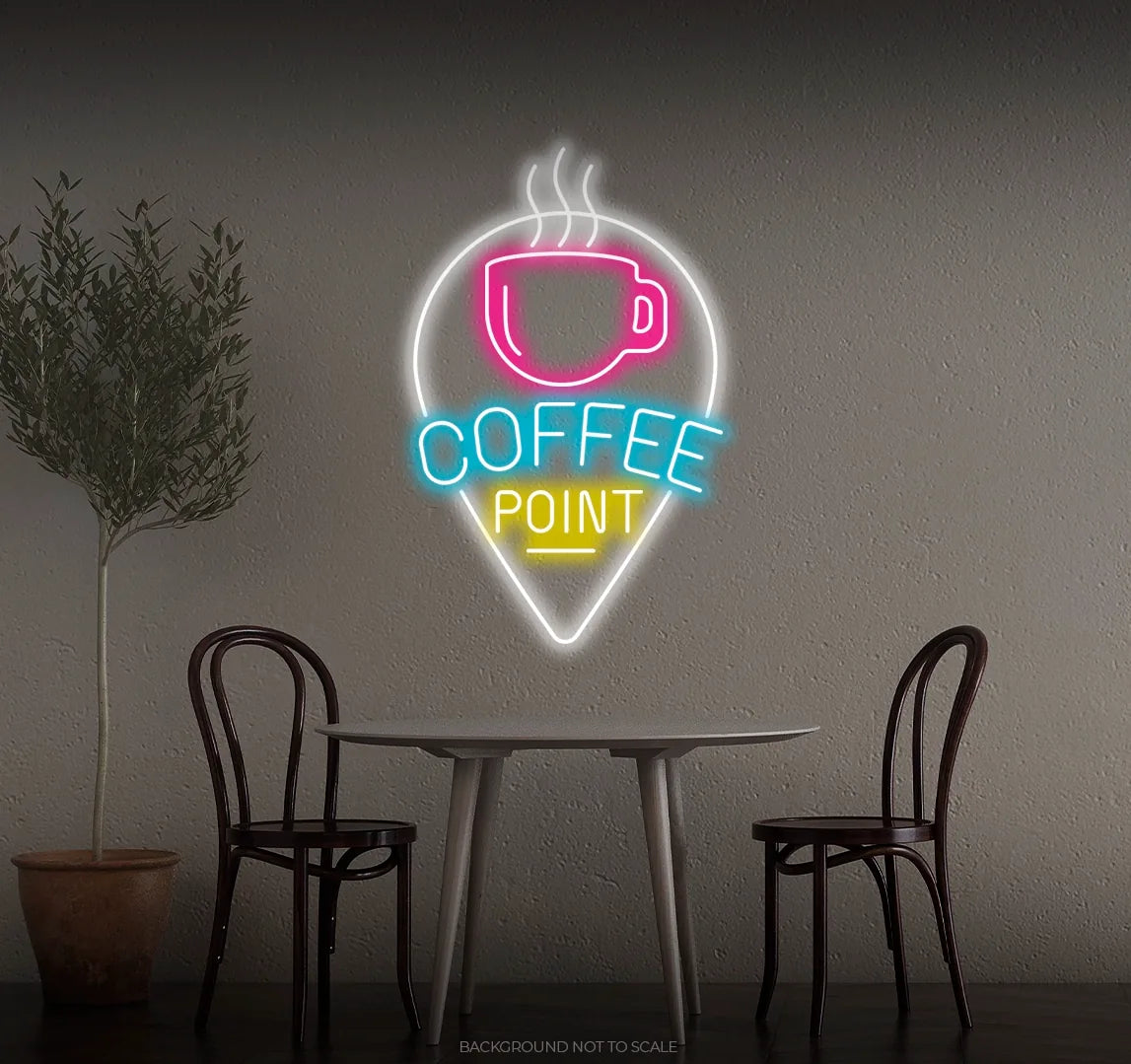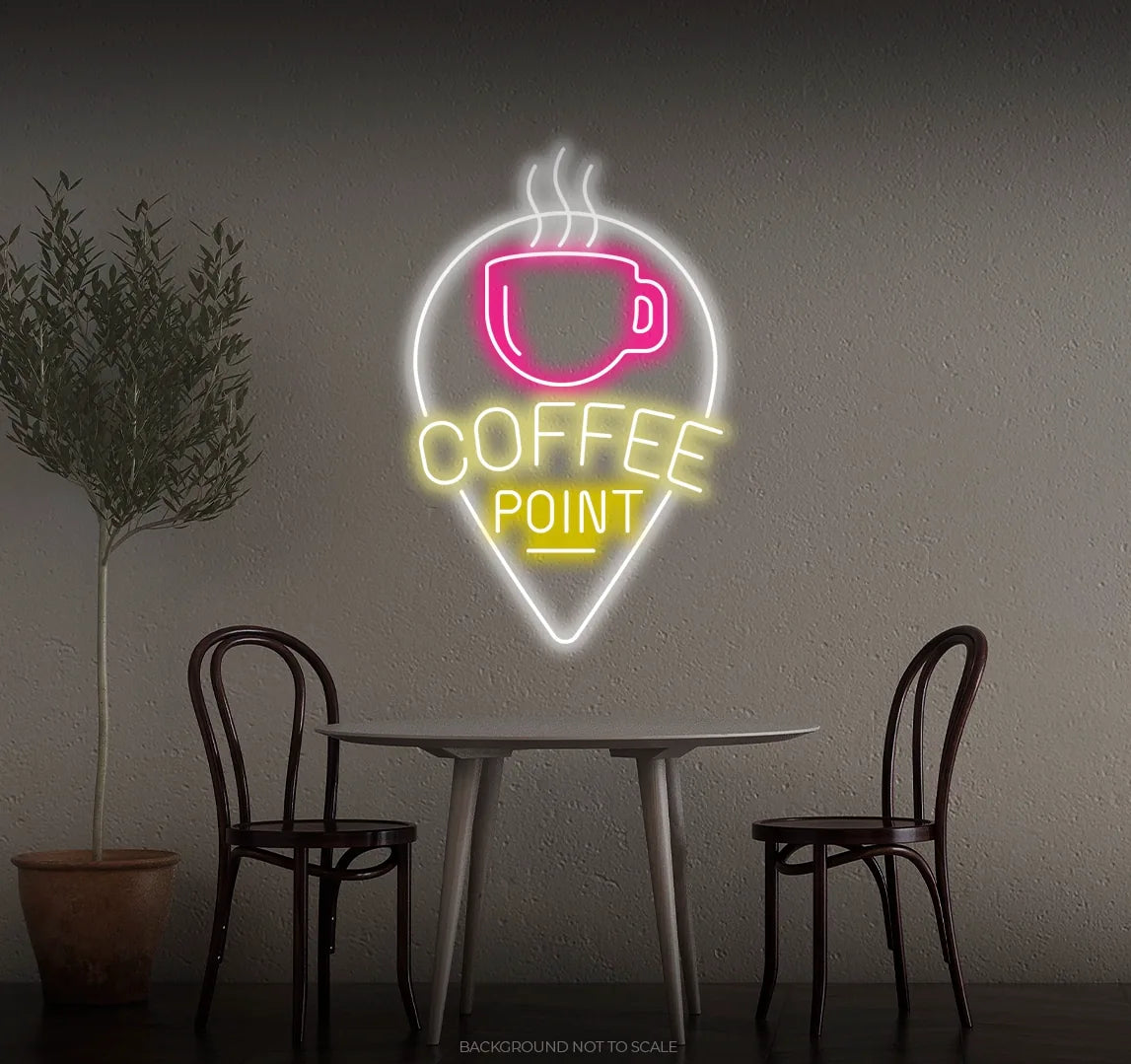 4. "Coffee Point" Signage Elegance: Illuminate your space with the delightful glow of our "Coffee Point" LED Neon. It doesn't just light up; it radiates with the timeless charm of coffee culture, capturing the essence of a cozy and inviting coffee spot.