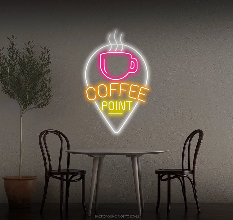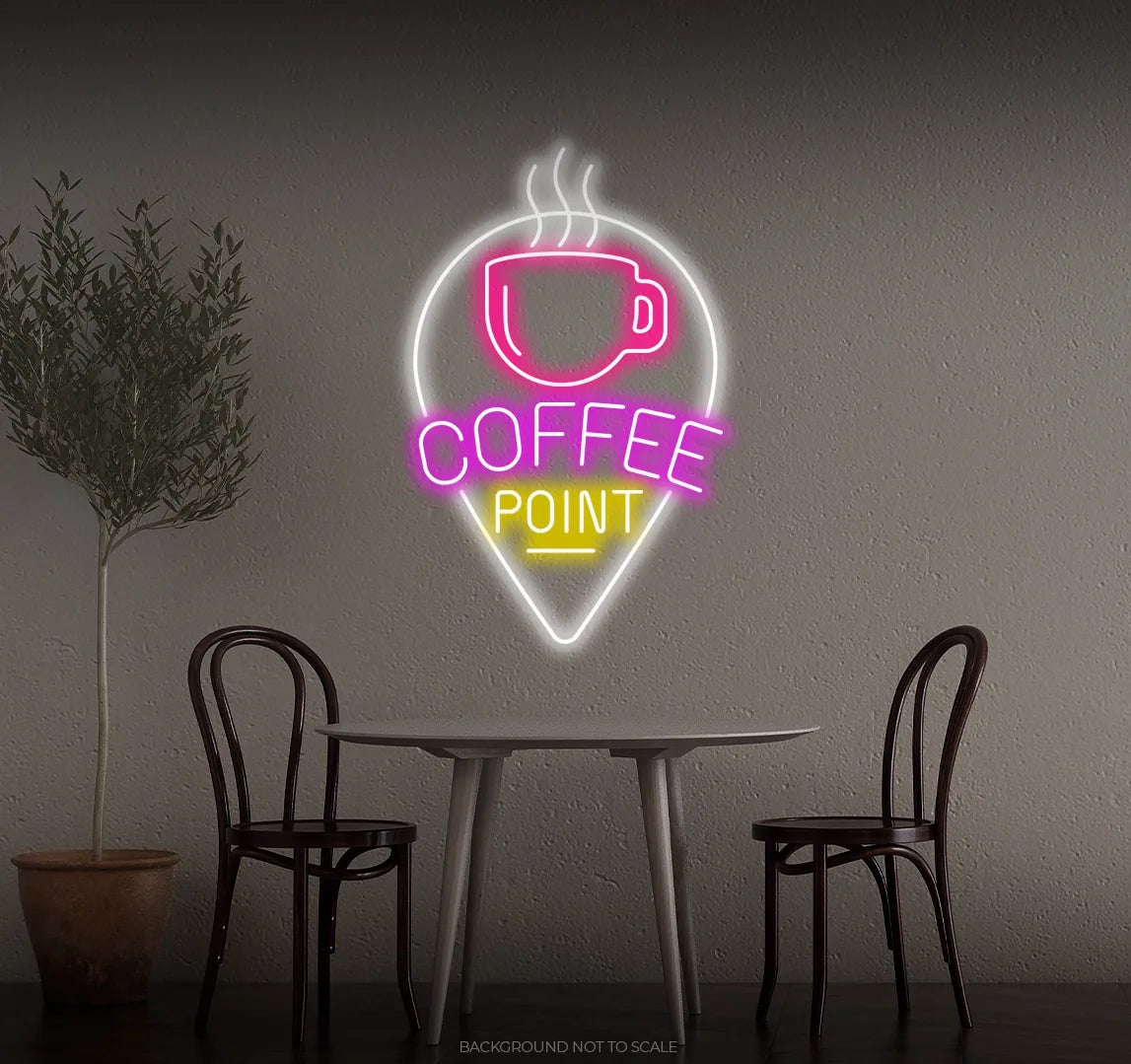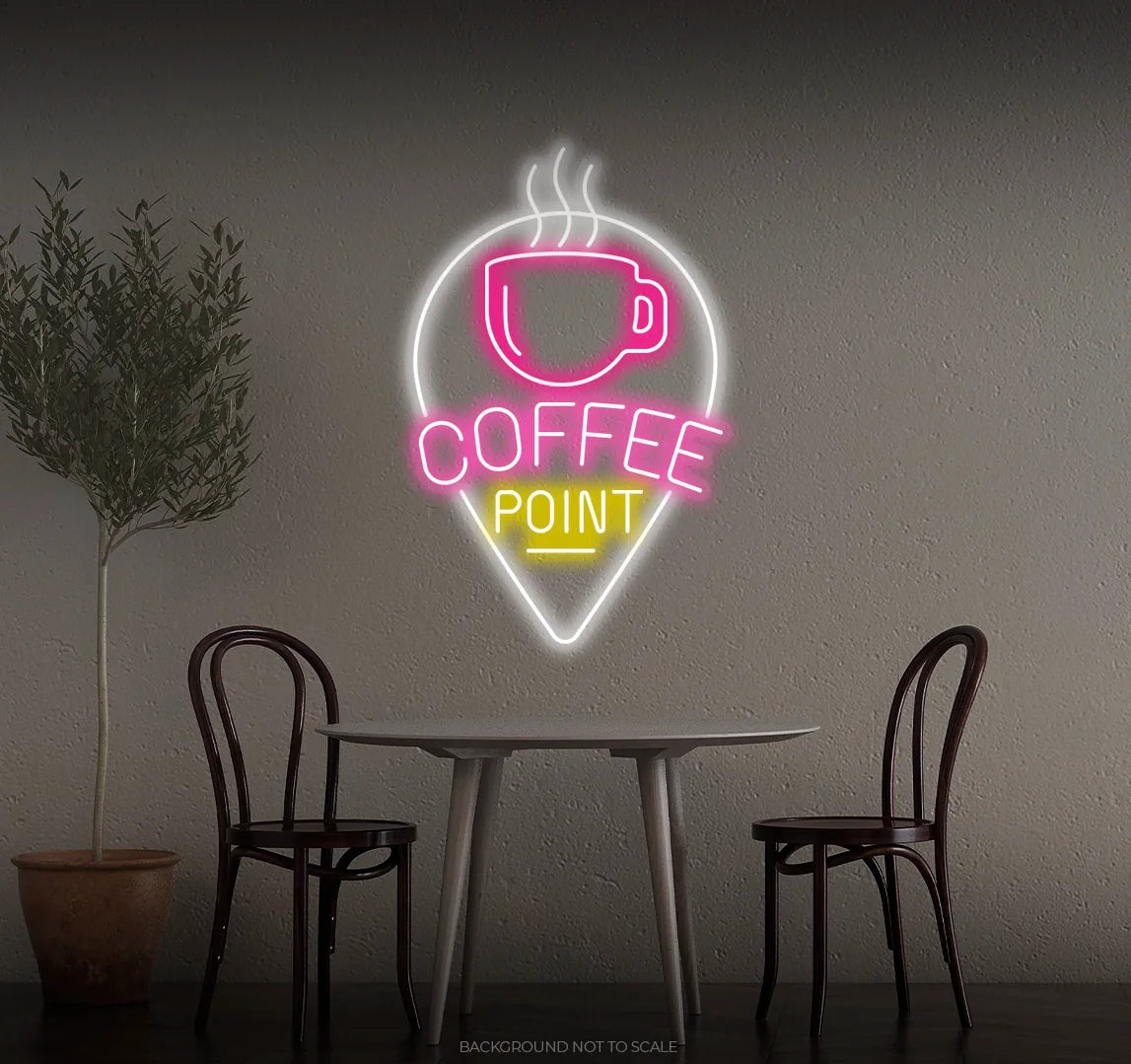 4. "Coffee Point" Signage Elegance: Illuminate your space with the delightful glow of our "Coffee Point" LED Neon. It doesn't just light up; it radiates with the timeless charm of coffee culture, capturing the essence of a cozy and inviting coffee spot.
