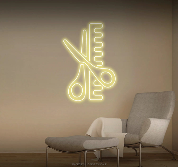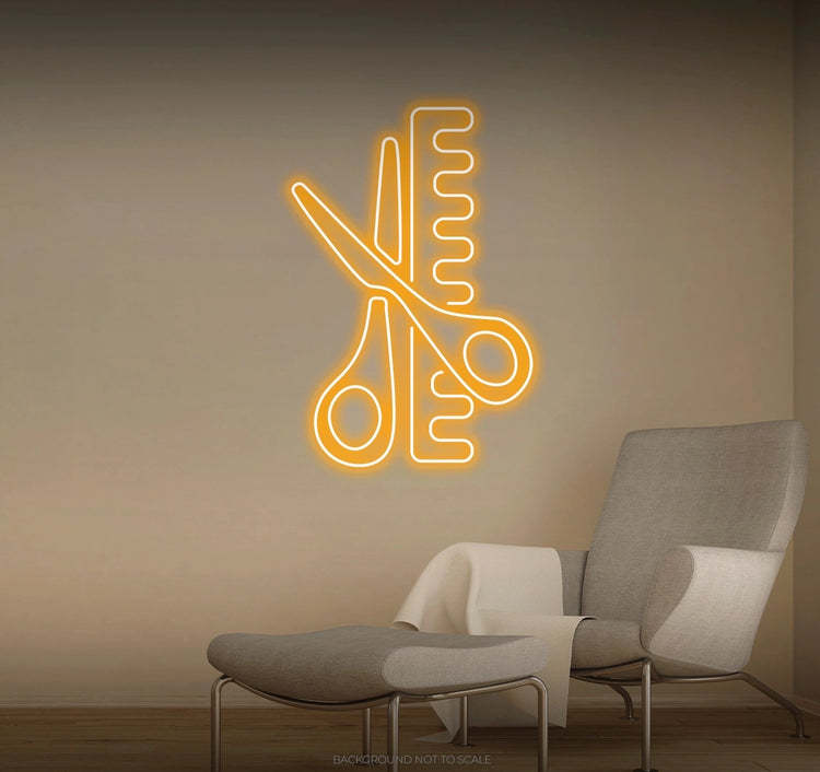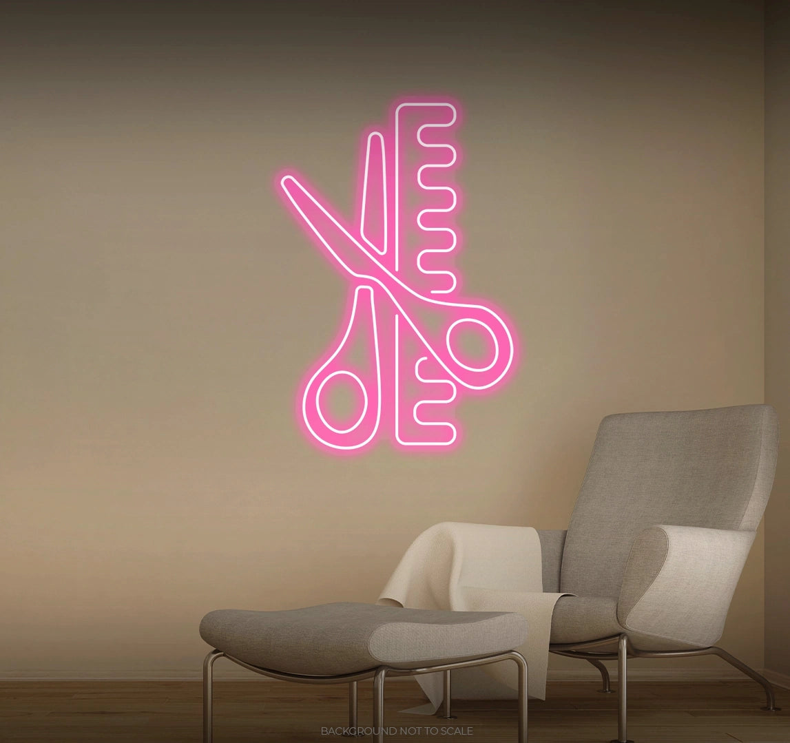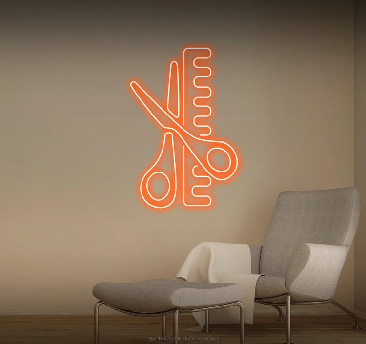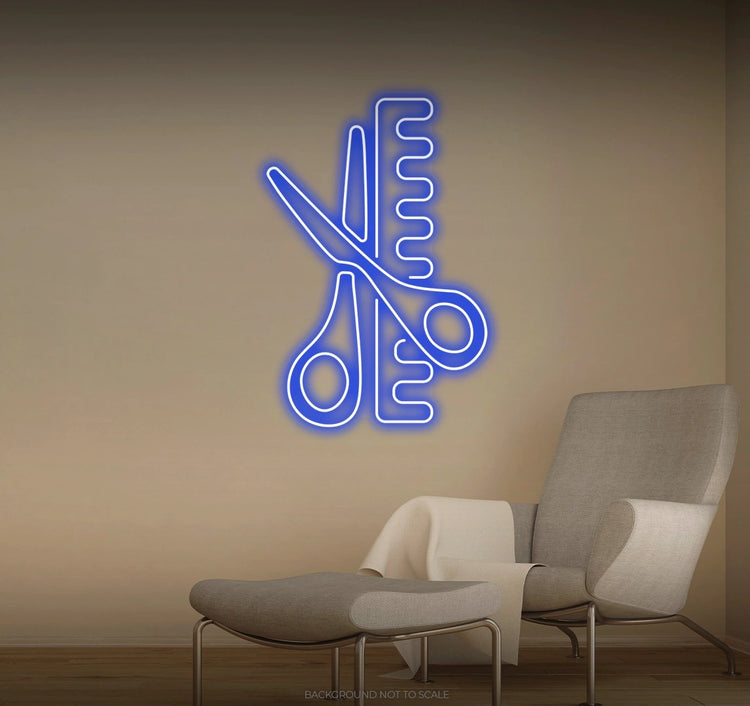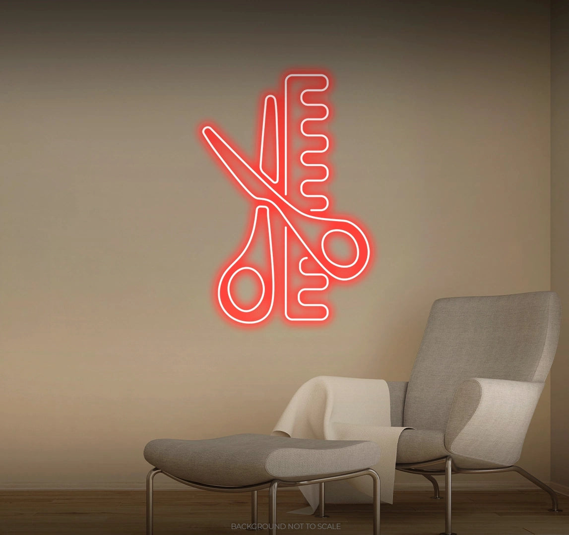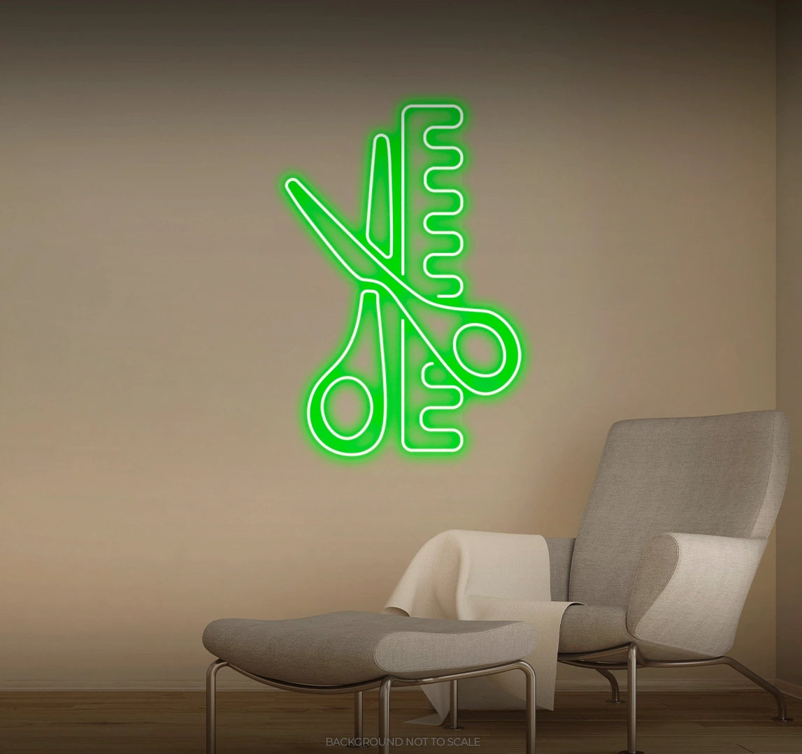 8. Durable and Stylishly-Safe: LED neon signs stand the test of time, being durable and safe to touch. Create a space of professional elegance worry-free, as the delightful glow of "Comb Scissors Icon" emanates from our LED Neon.