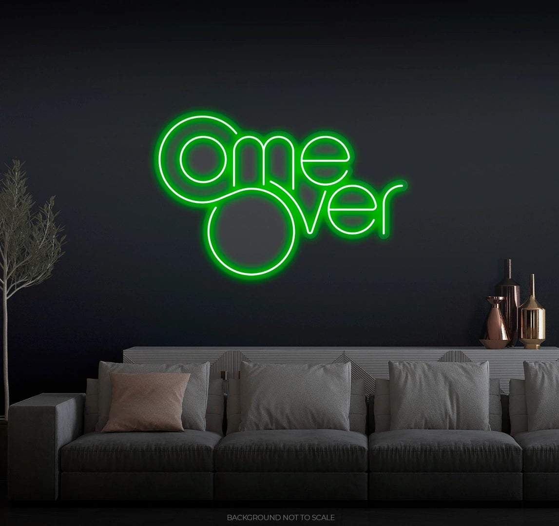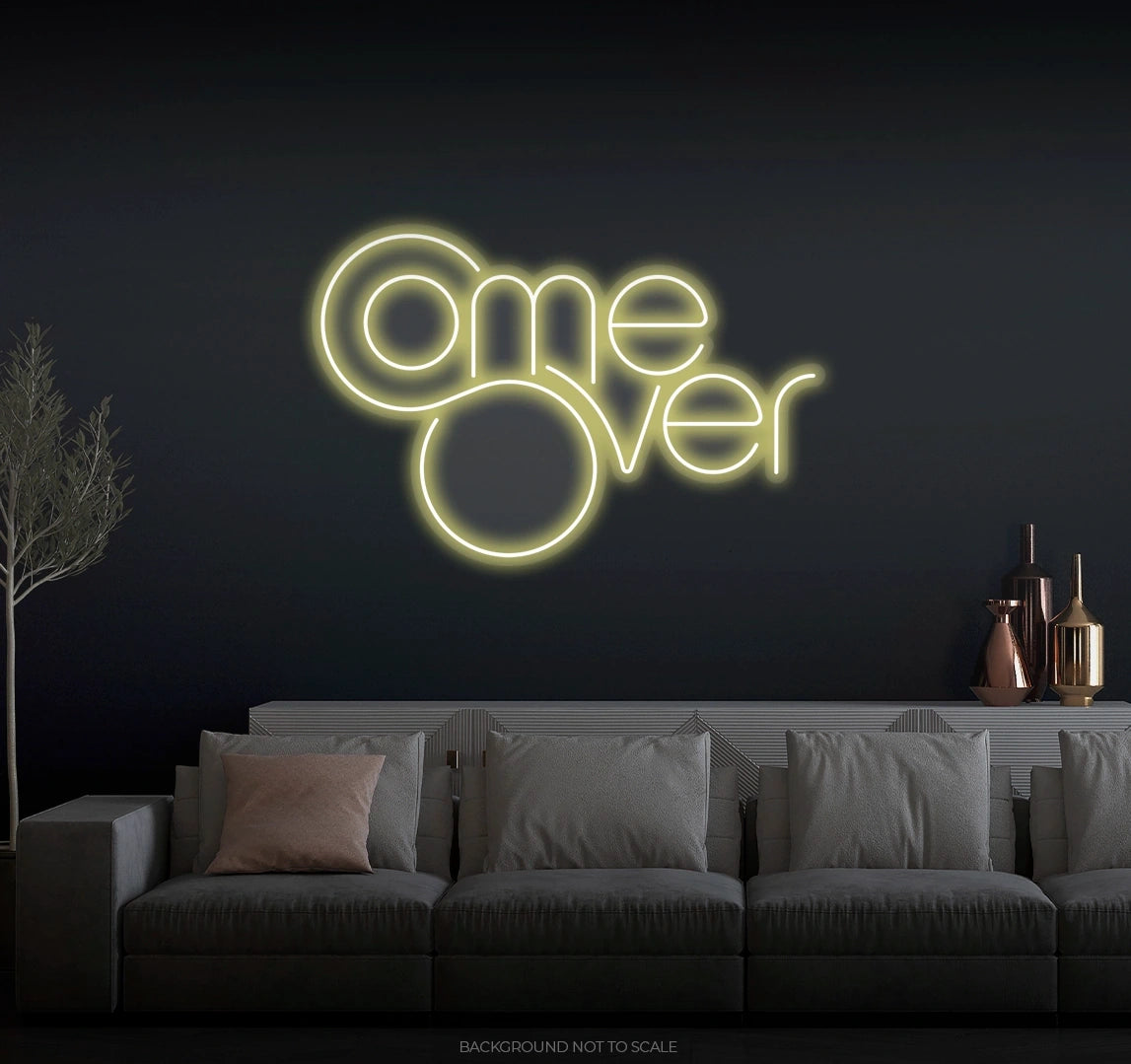 Create a welcoming and vibrant atmosphere with the "Come Over" LED Neon. This neon design serves as a playful yet inviting message, perfect for parties, lounges, or any space where you want to make people feel right at home.