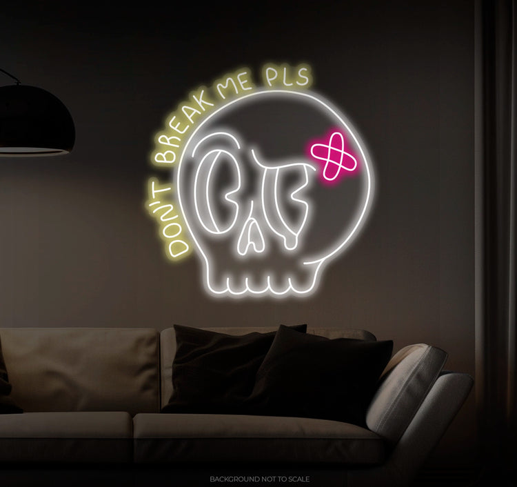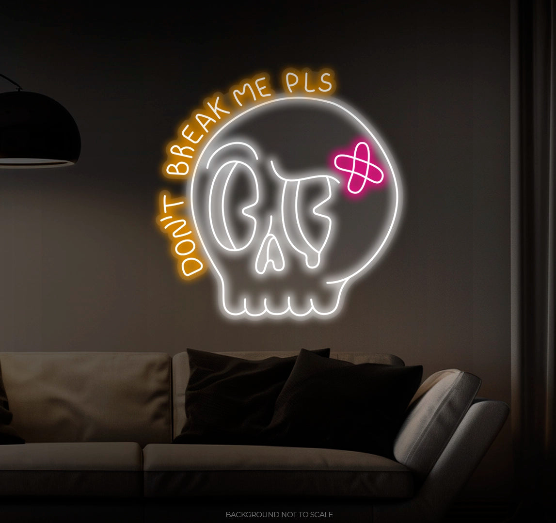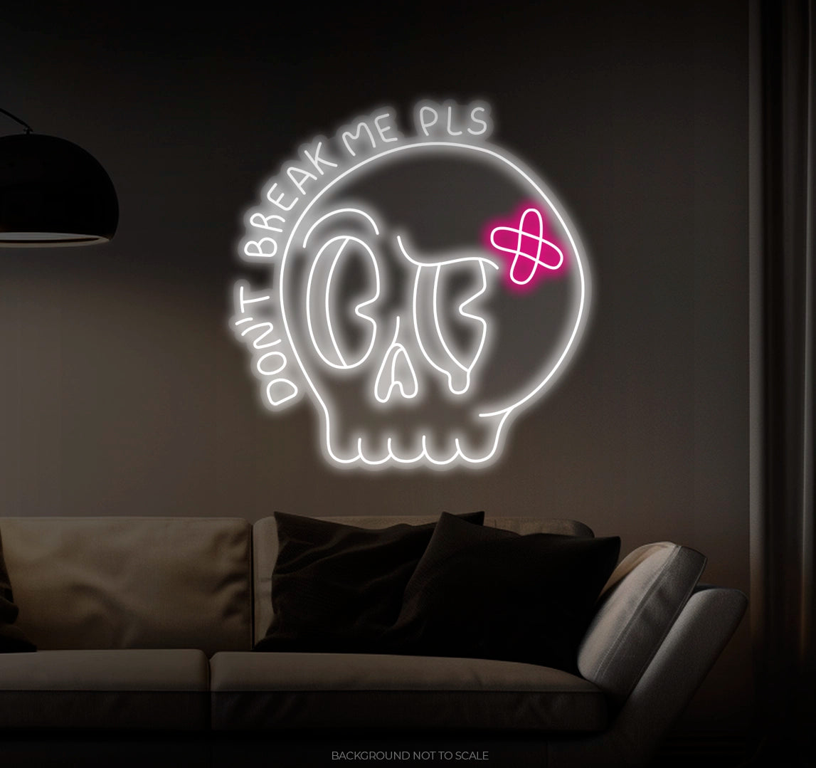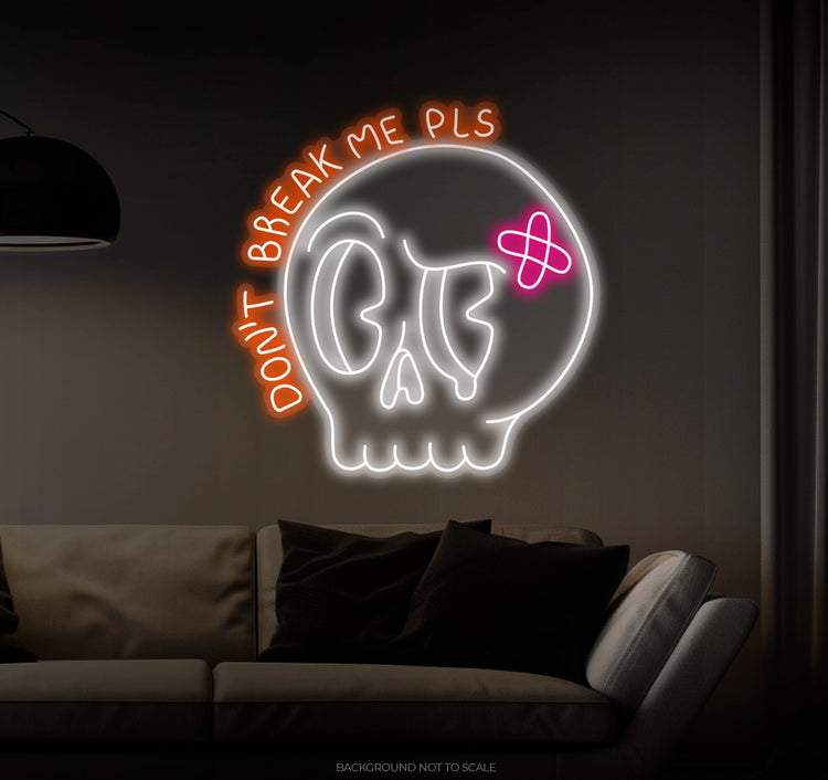 Expressive Design: A dramatic skull with tears, accompanied by the heartfelt plea, "Don't Break Me Please." This neon sign conveys both strength and fragility, evoking deep emotions.