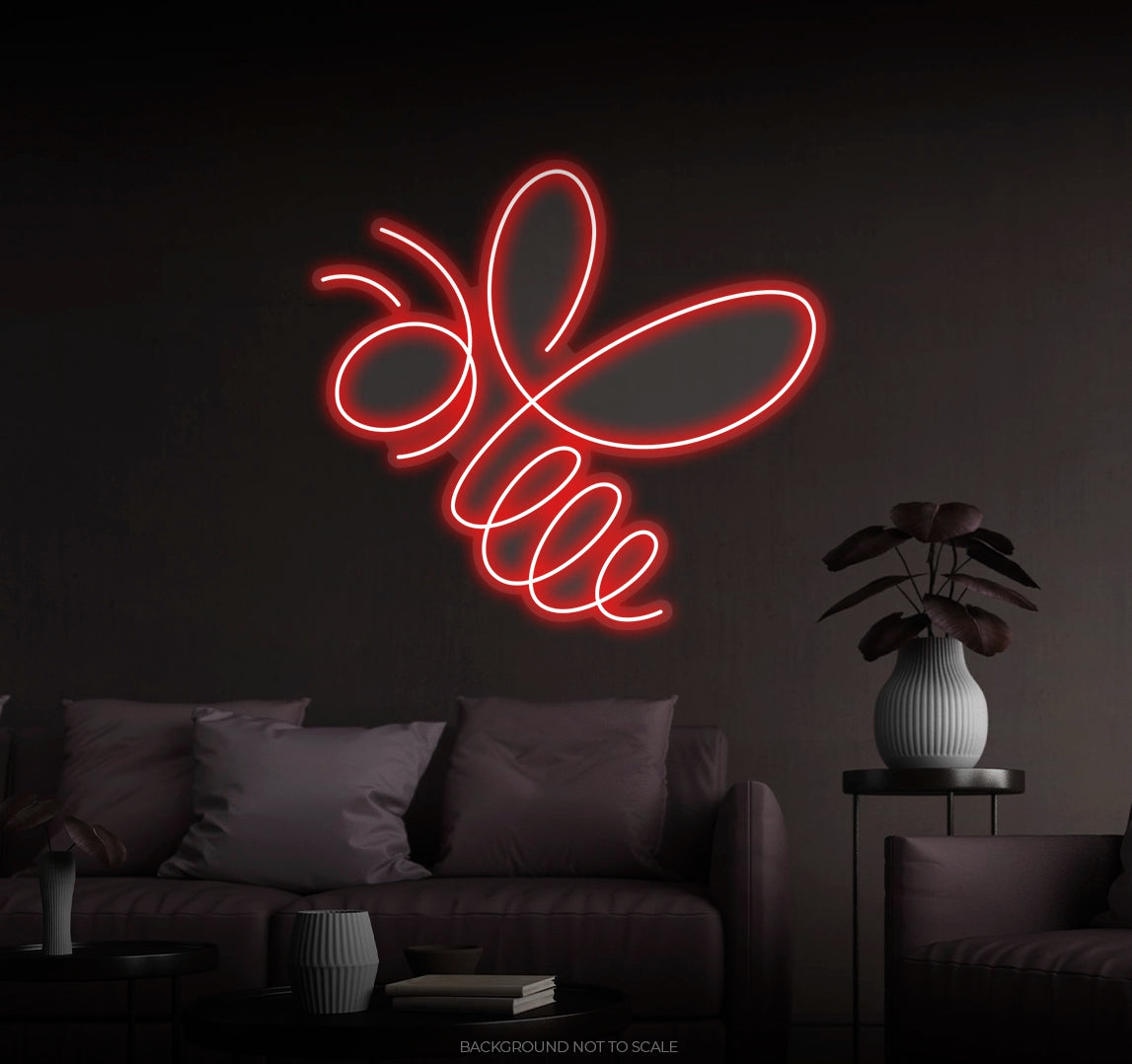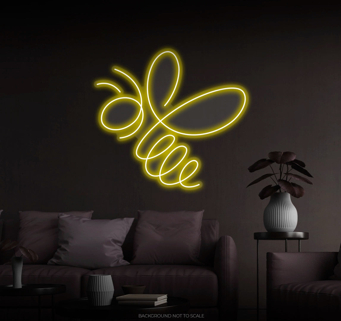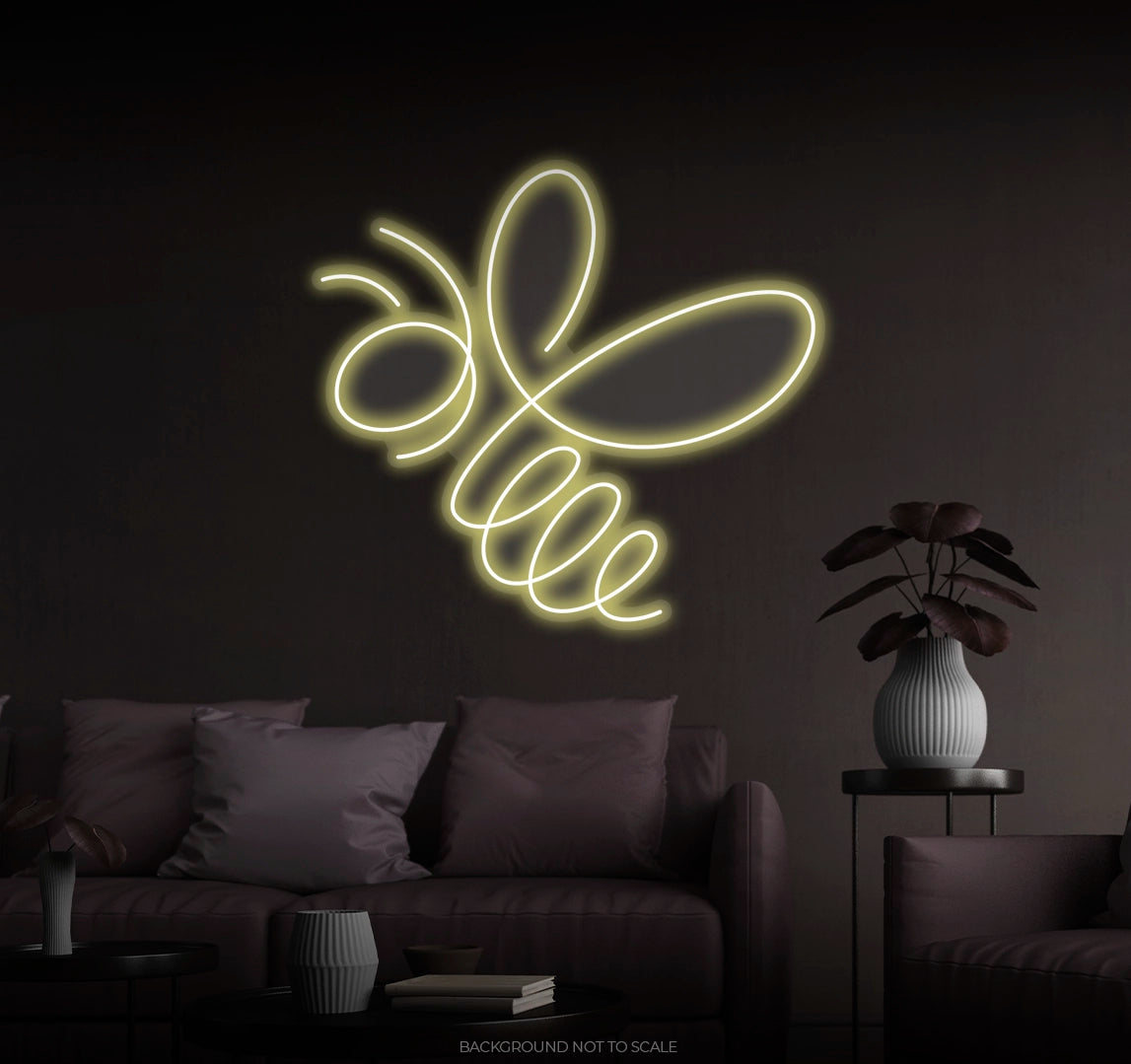 Vivid Neon Glow: LED neon lights bring the bee to life in colors like golden yellow, soft white, or any custom combination. The curly trail adds a dynamic and playful touch.