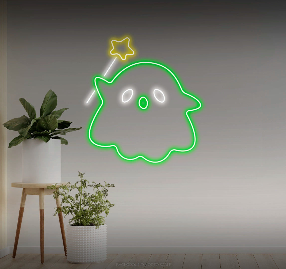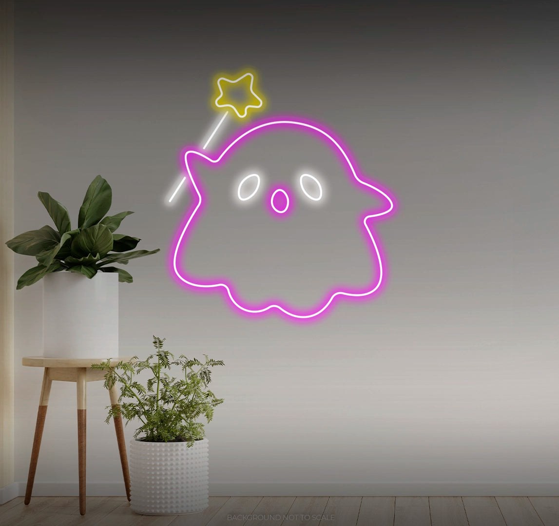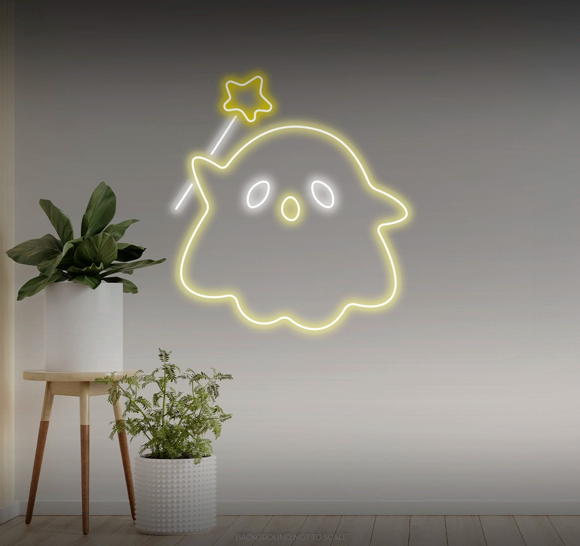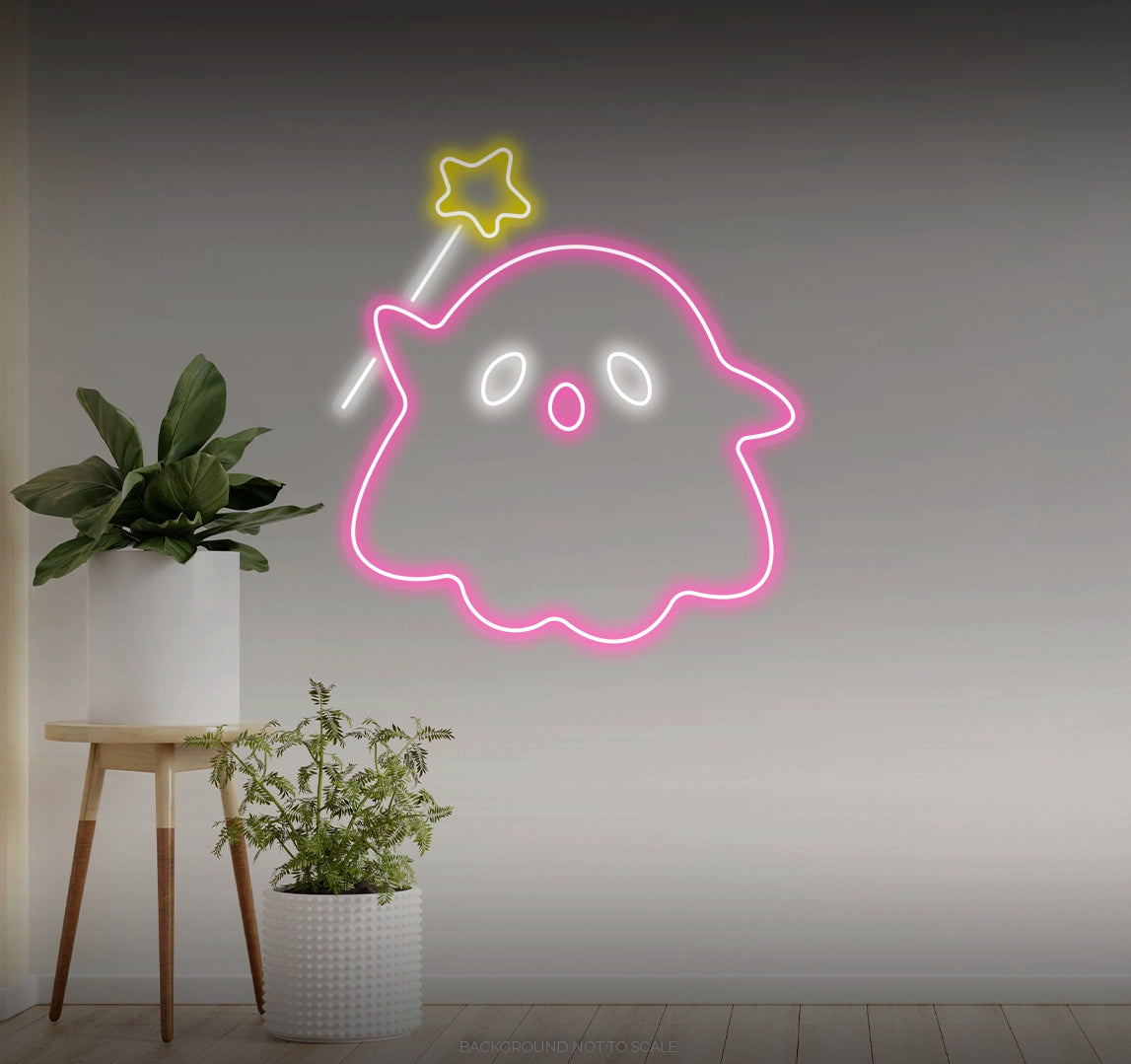 Adorable Design: Illuminate your space with the adorable depiction of the cute ghost, holding a magic stick that radiates with wonder. Beyond its luminosity, our LED neon sign captures the essence of innocence and playfulness, inviting viewers to embrace the magic of childhood.