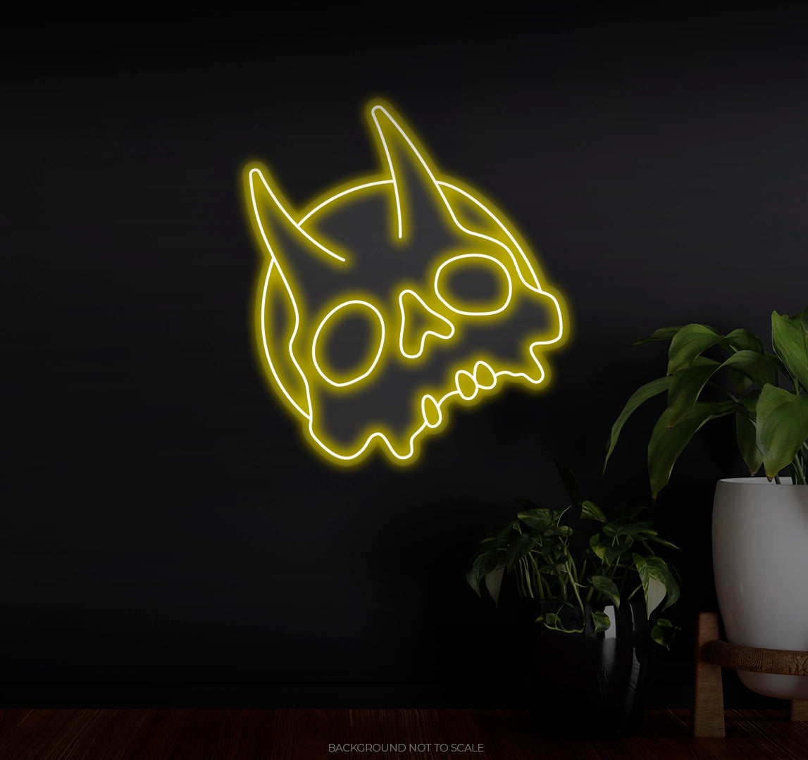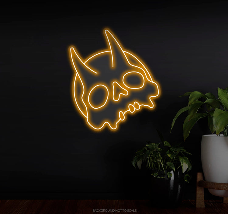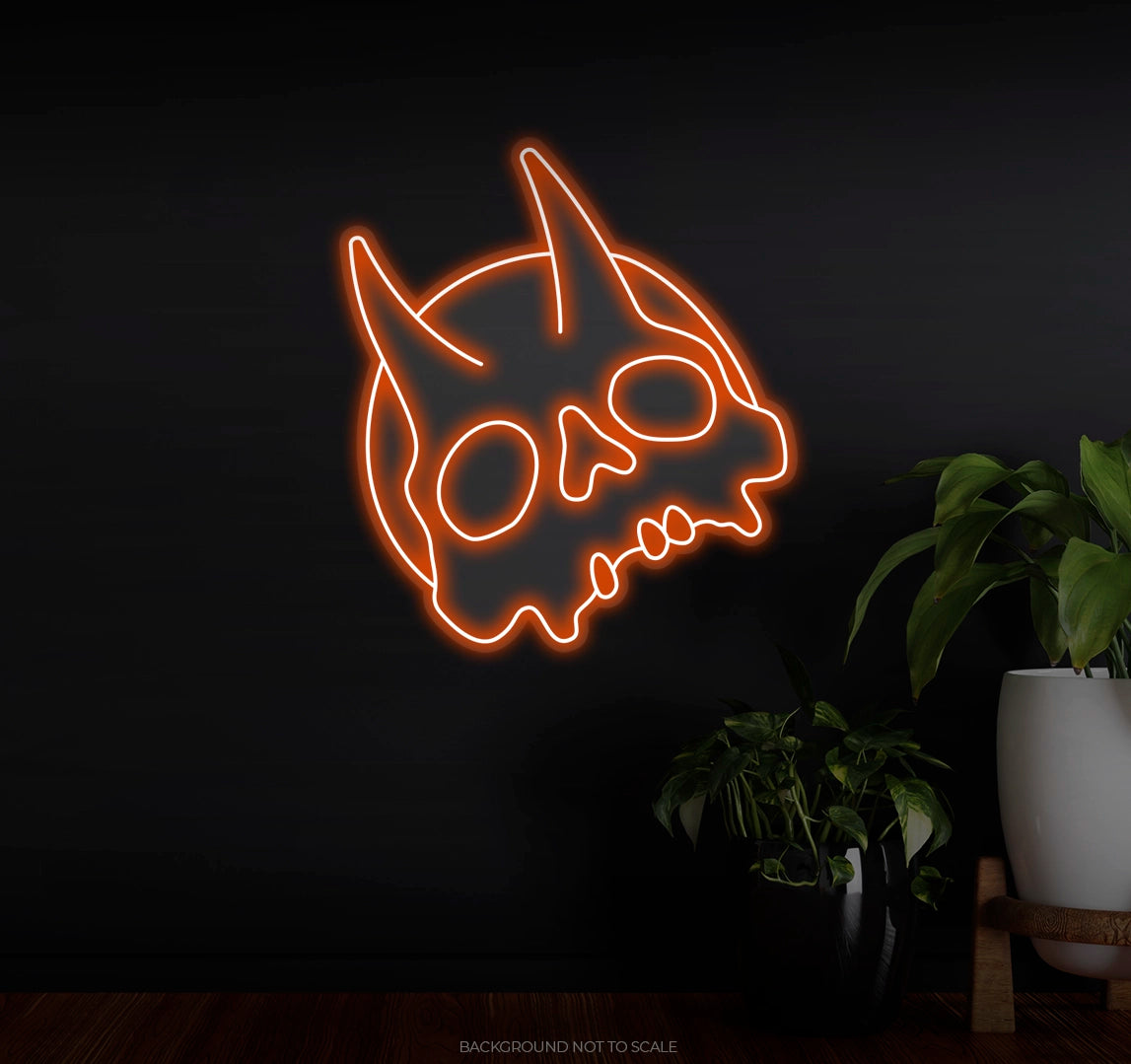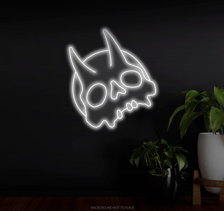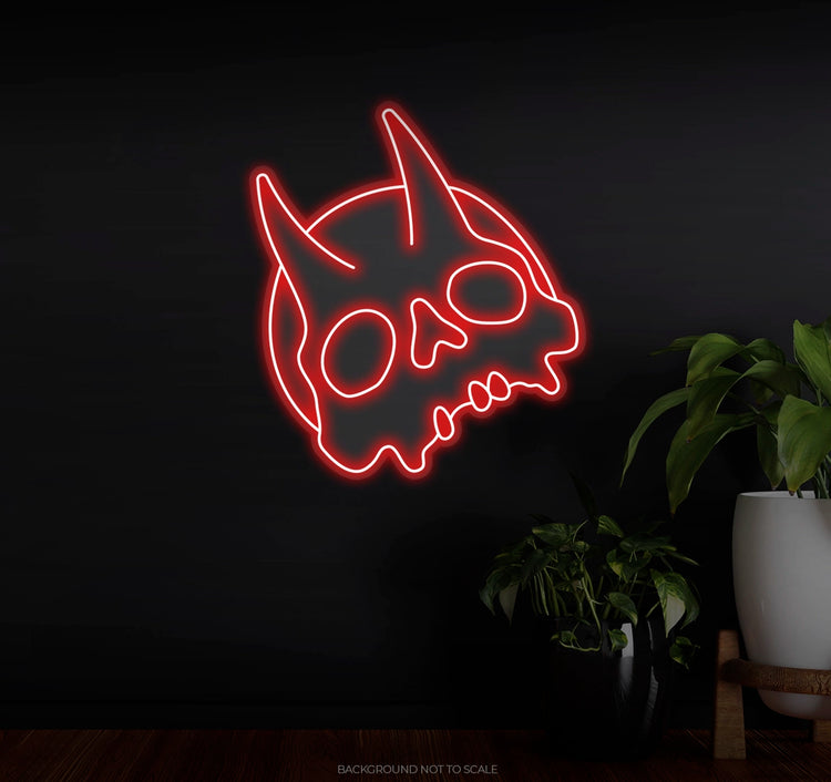 Devil Skull & Horn Design: The central feature of this neon sign is a striking skull with devil horns, exuding a sense of mystery, strength, and intensity. The design is both detailed and impactful, with the horns curving outwards, enhancing the dramatic effect.