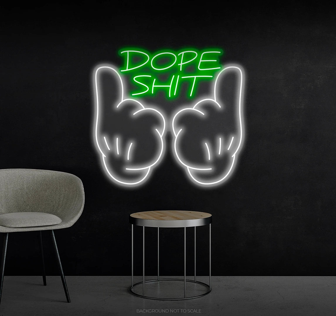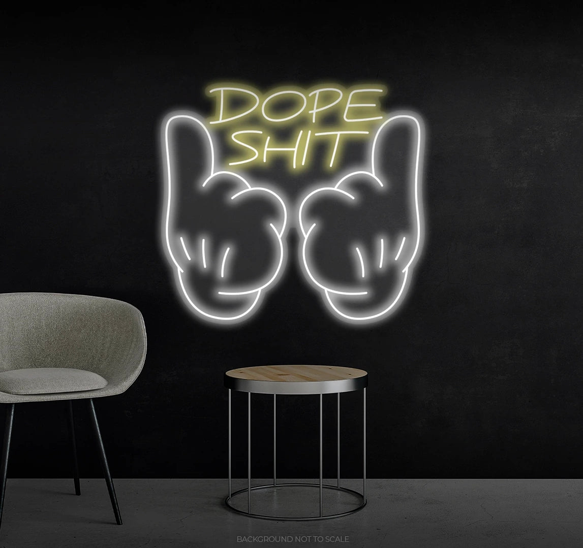 Playful Iconic Design: The sign pairs the bold phrase “Dope Sh*t” with Mickey Mouse-style hands, blending nostalgia with modern cool. Perfect for those who love playful, standout decor.