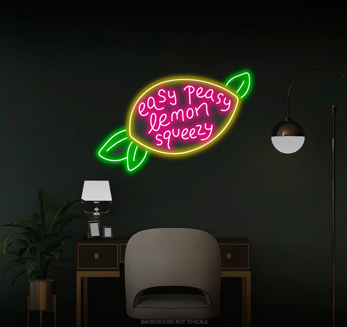 Elevate Your Space with Positivity: Embrace a carefree attitude with our LED neon sign, serving as a glowing reminder to keep things simple and enjoy life. The "Easy Peasy Lemon Squeezy" sign is perfect for creating a joyful and welcoming environment.