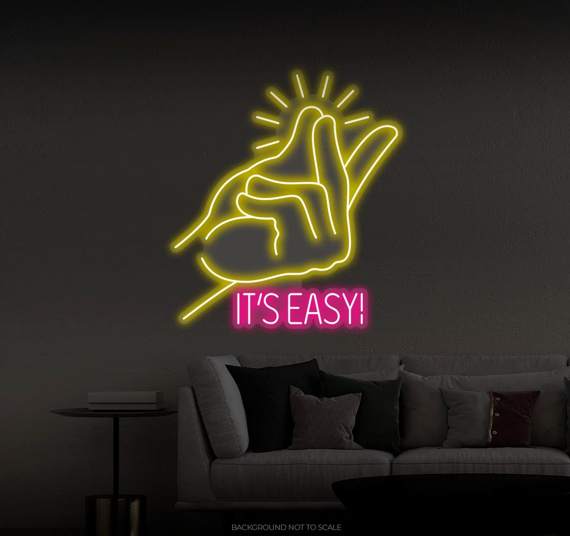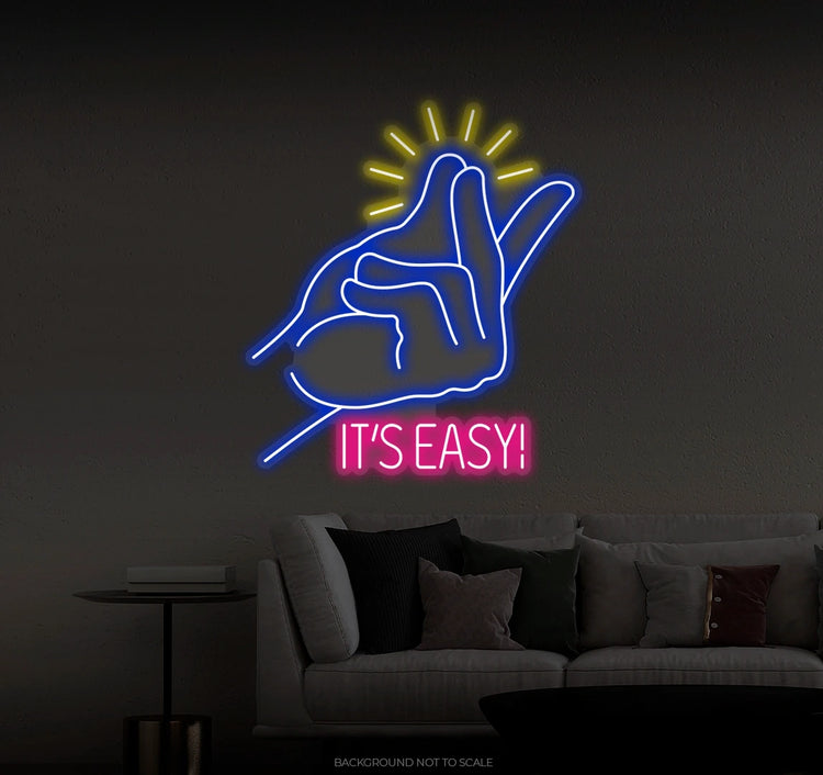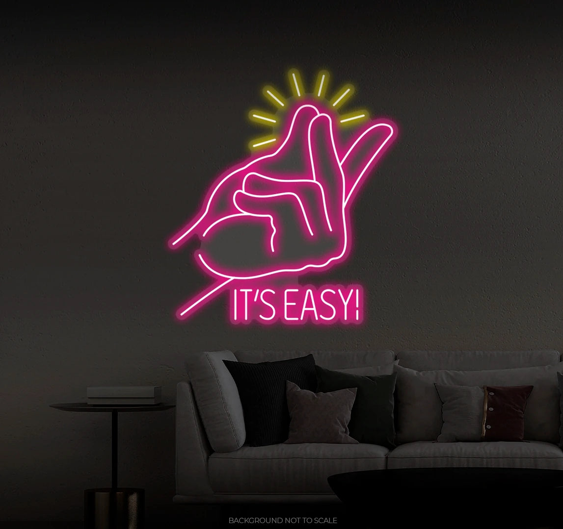 Make a bold statement with the Eat Easy Snapping Fingers LED Neon! Featuring a snapping hand gesture alongside the words "Eat Easy," this neon sign exudes effortless cool and adds a modern, playful vibe to any space. Ideal for kitchens, cafes, dining areas, or as a quirky decor piece, this design encourages a laid-back approach to life and dining.