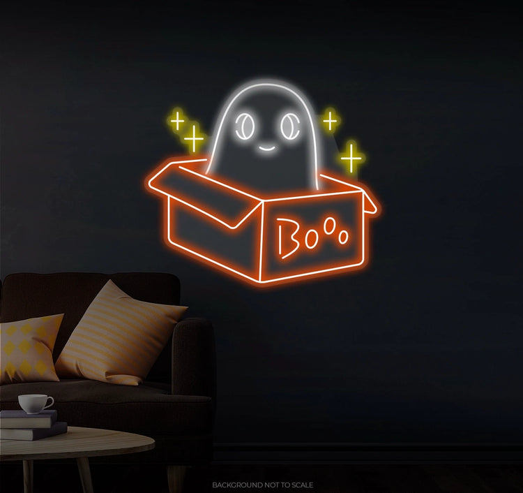 Ghost in a Box "Boo" LED Neon – Playful, Spooky, and Fun