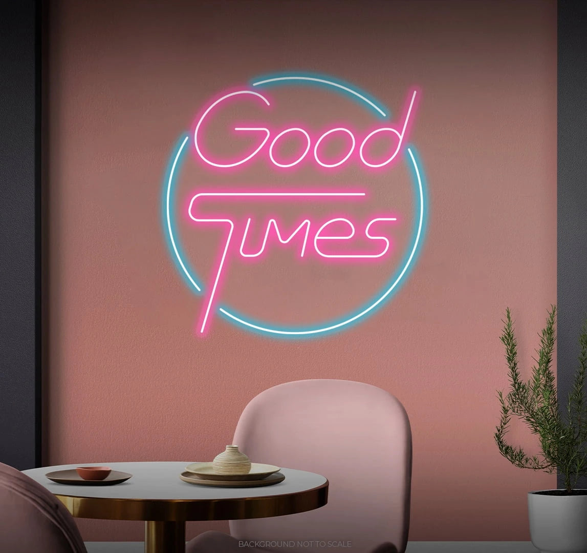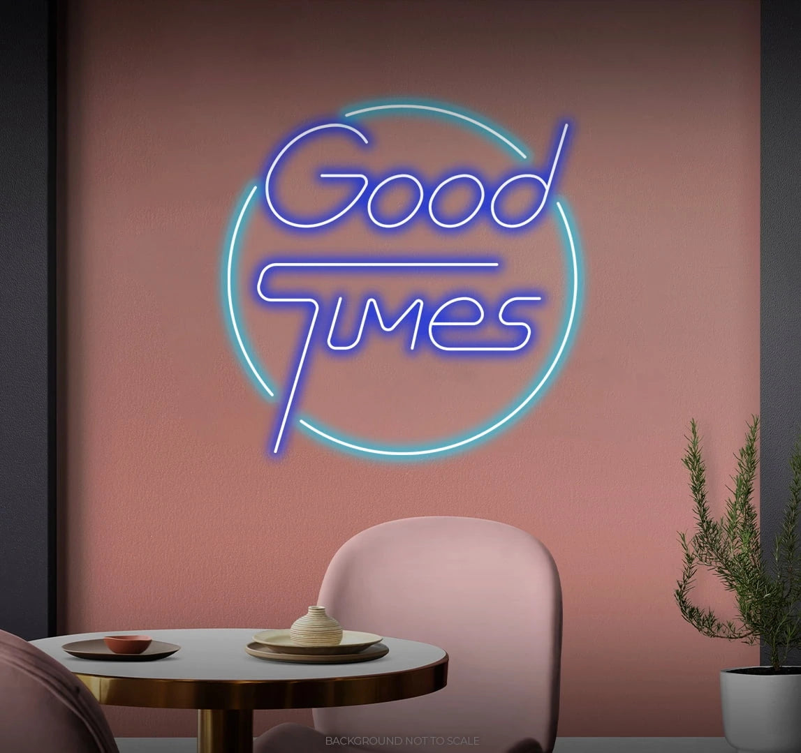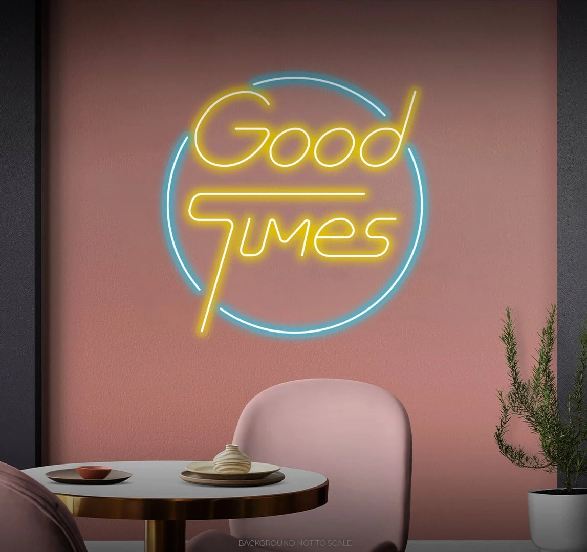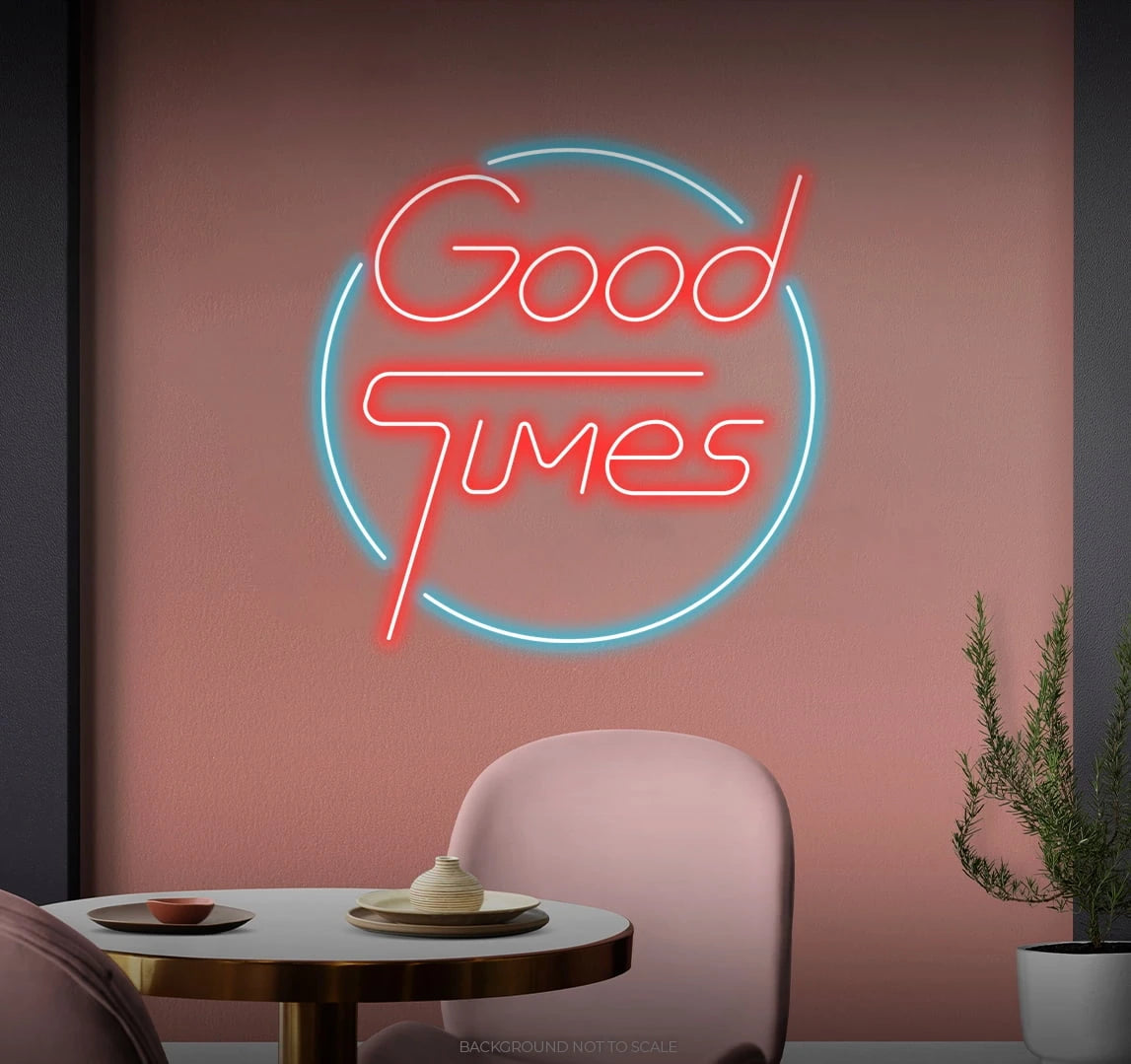 - LED neon sign boasts energy efficiency, casting a radiant glow that perfectly complements the lively and positive nature of good times.