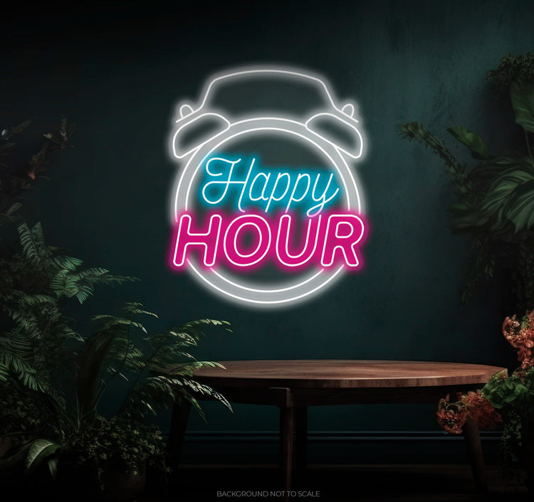 1. Hour of Happiness: Our LED neon sign infuses your space with a lively and joyful glow, setting the stage for an atmosphere of celebration, camaraderie, and the anticipation of good times ahead.