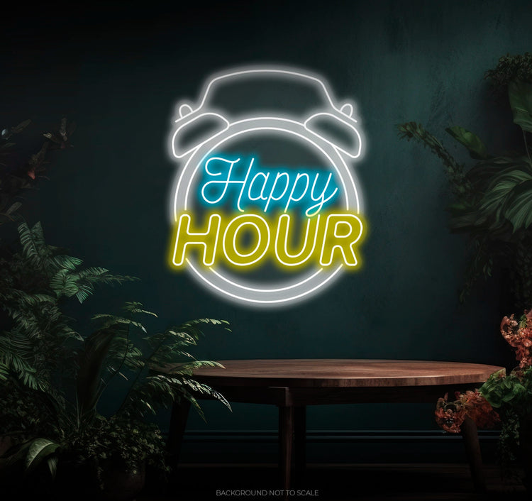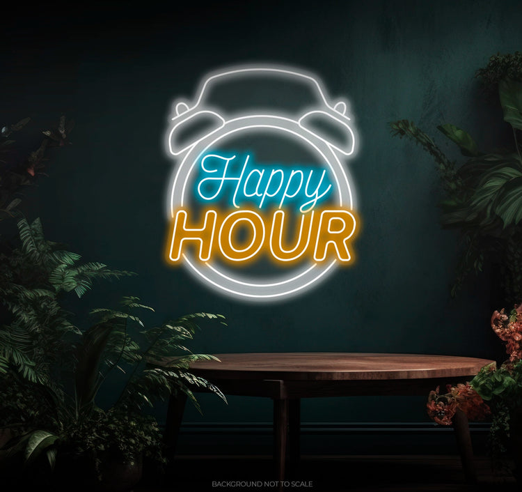 Illuminate your space with the spirit of happiness using our Happy Hour Clock LED Neon Sign. It's the perfect addition to any setting, infusing an atmosphere of joy and celebrating the magic of happy hours that bring people together!