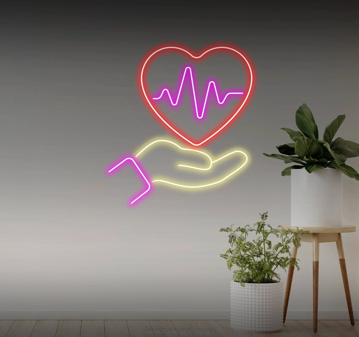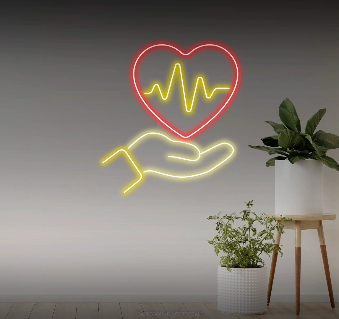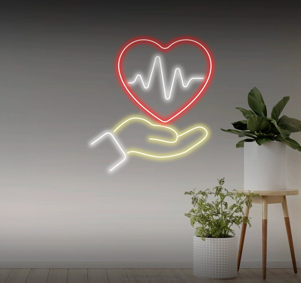 Charming Design: Illuminate your space with the comforting glow of our "Heartbeat in Hand" LED Neon. Beyond its luminosity, it features a stylized depiction of a hand holding a heartbeat line, capturing the essence of love and vitality with gentle detail.