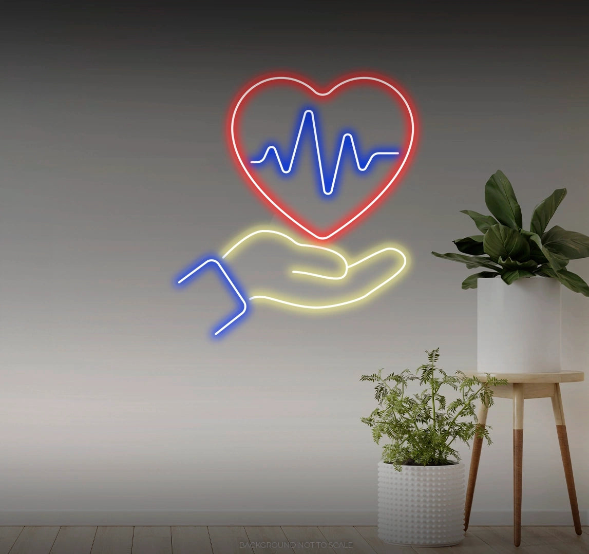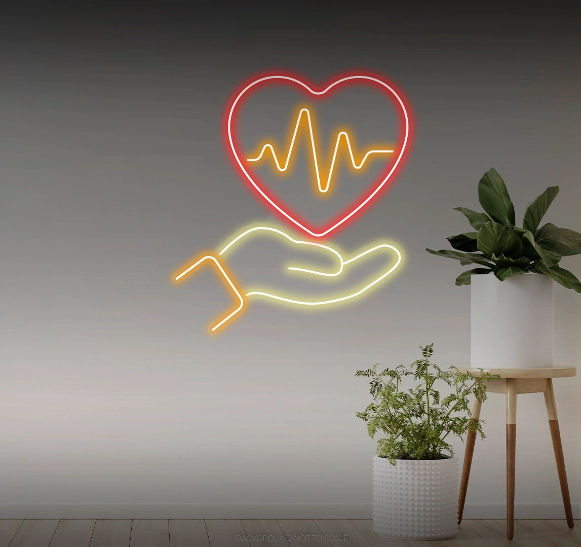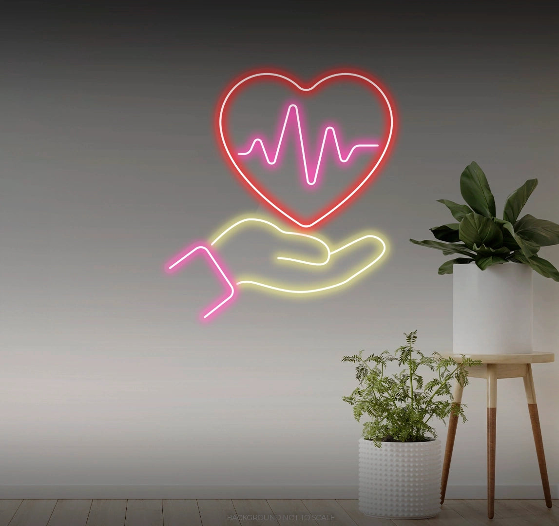 Charming Design: Illuminate your space with the comforting glow of our "Heartbeat in Hand" LED Neon. Beyond its luminosity, it features a stylized depiction of a hand holding a heartbeat line, capturing the essence of love and vitality with gentle detail.