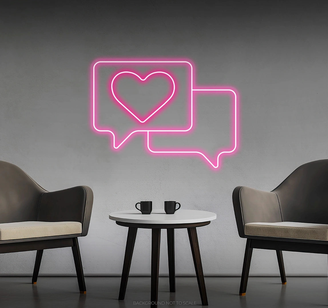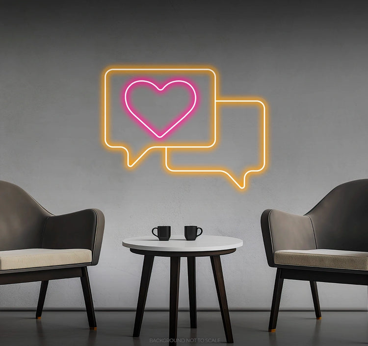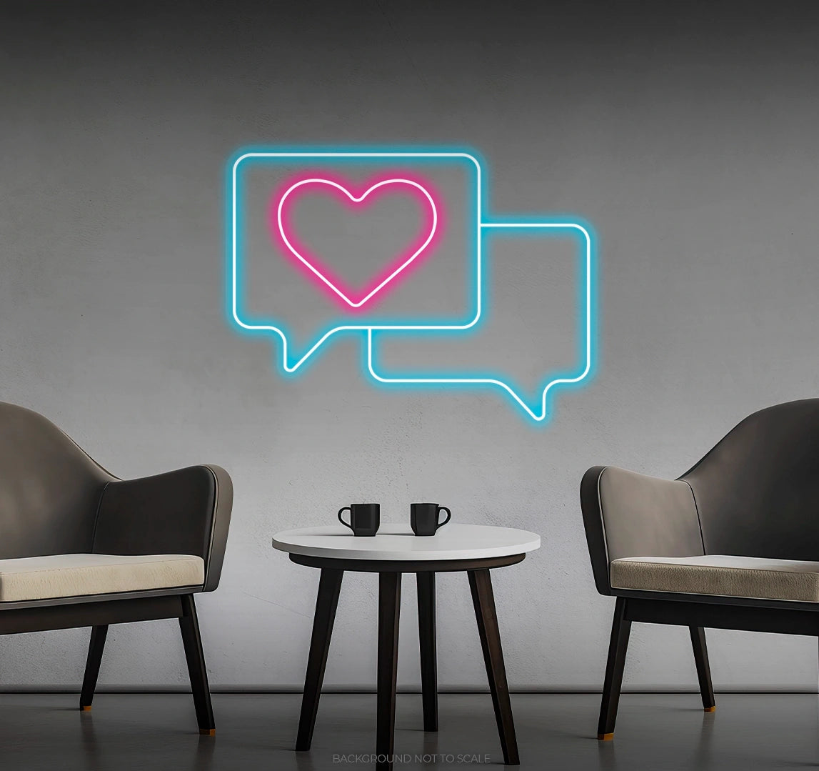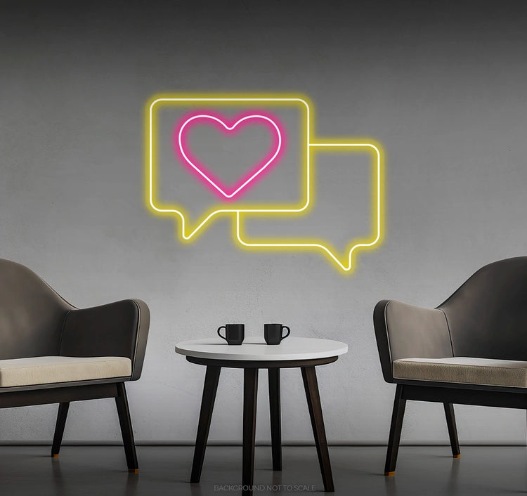- Immerse your space in the heartwarming glow of our LED neon sign, featuring a delightful heart encapsulated within speech balloons.