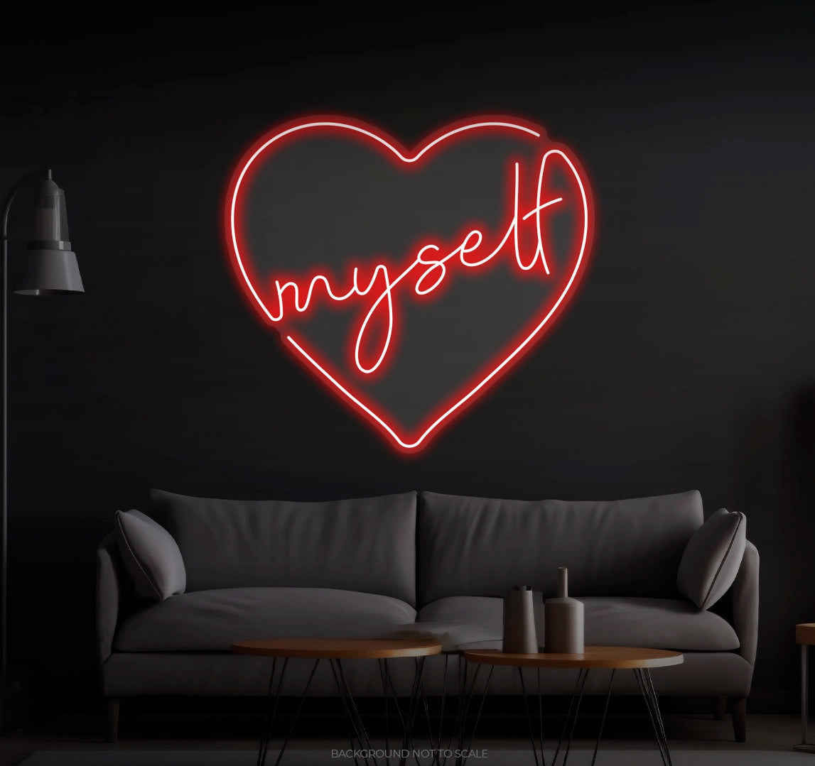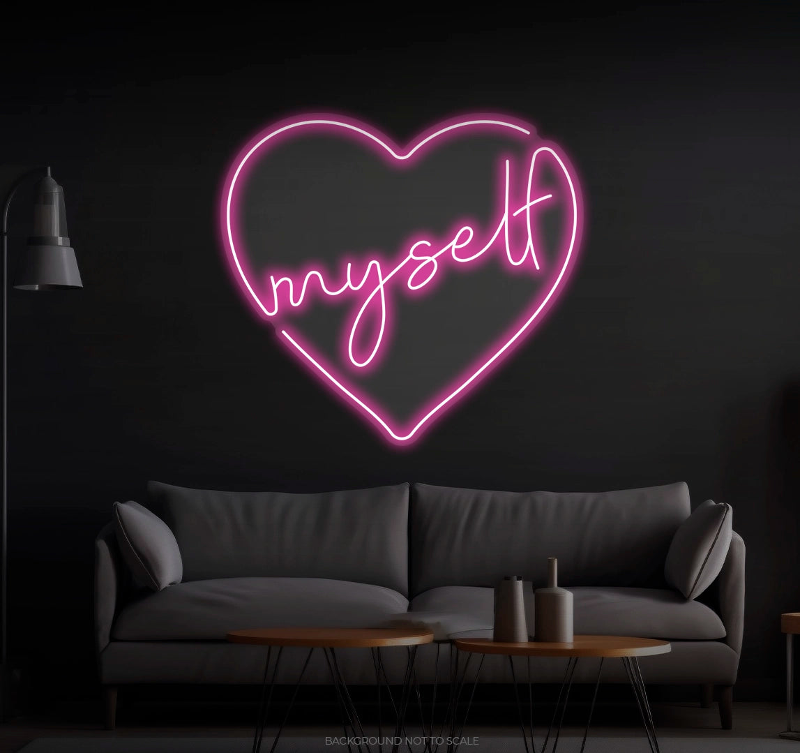 Illuminate your self-love journey with the "Heart Myself" LED Neon. Order now and let your glow come from within! 💖✨