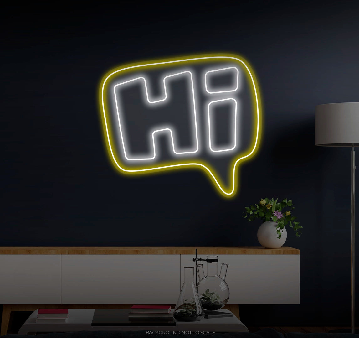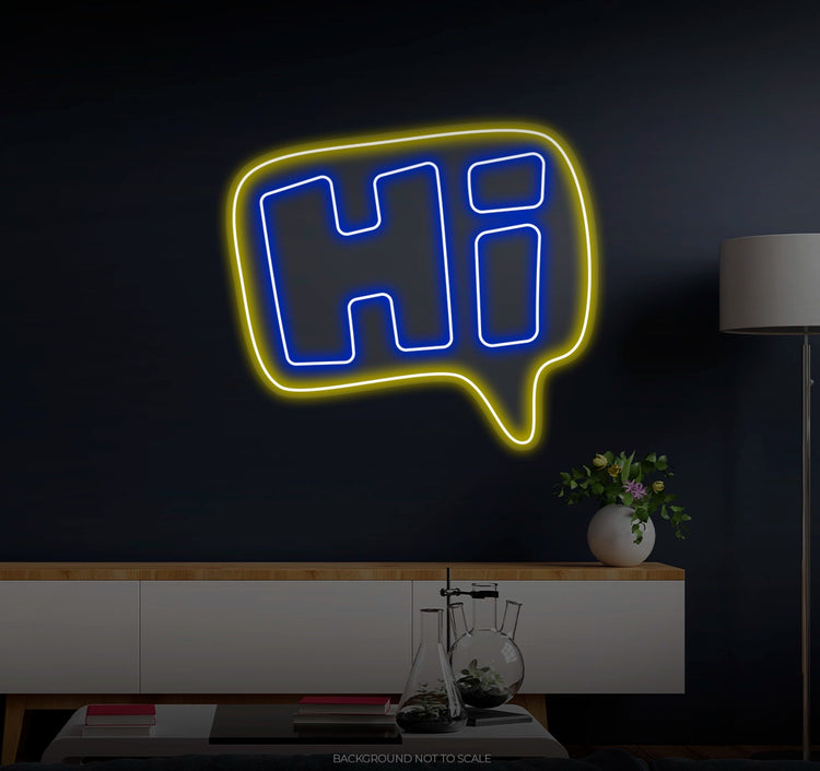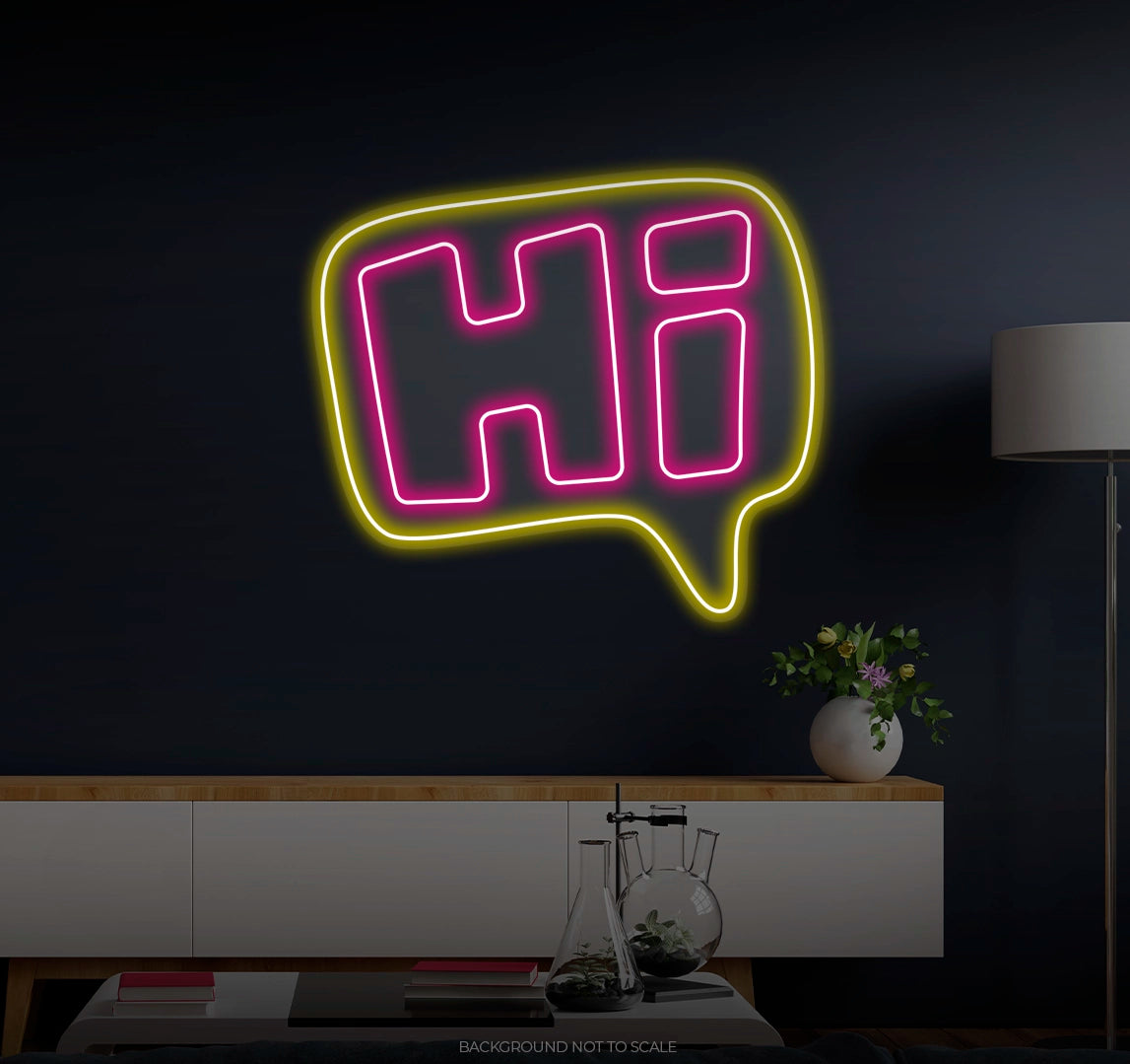 Bold Speech Bubble Design: The Hi Speech Balloon LED Neon showcases a dynamic speech bubble containing a bold "Hi," making it a standout piece that radiates friendliness and fun.