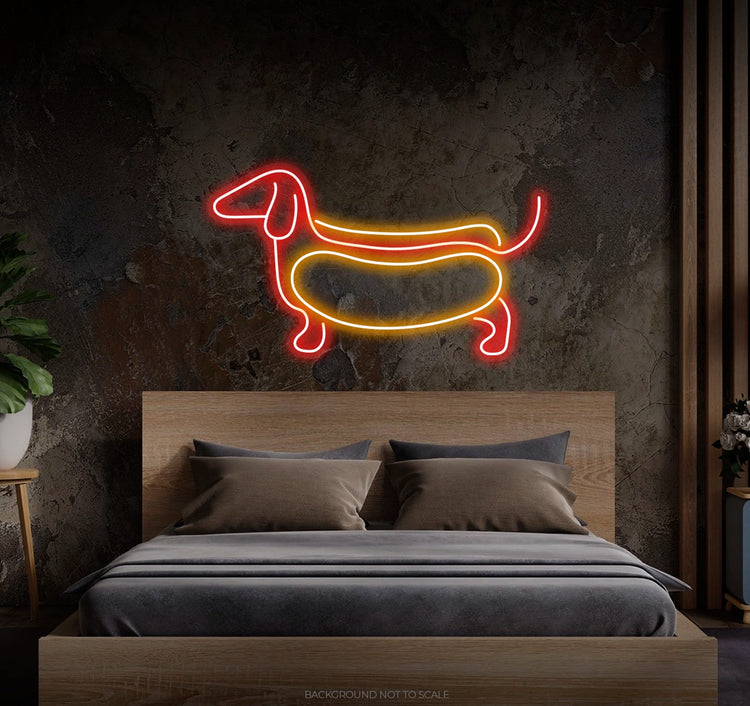 Playful Glow: Watch as our LED neon sign bathes your space in a playful glow, showcasing the delightful image of a hotdog with a real dog. Immerse yourself in the charming allure that turns your surroundings into a unique retreat, providing a touch of whimsical joy for both hotdog and dog lovers.