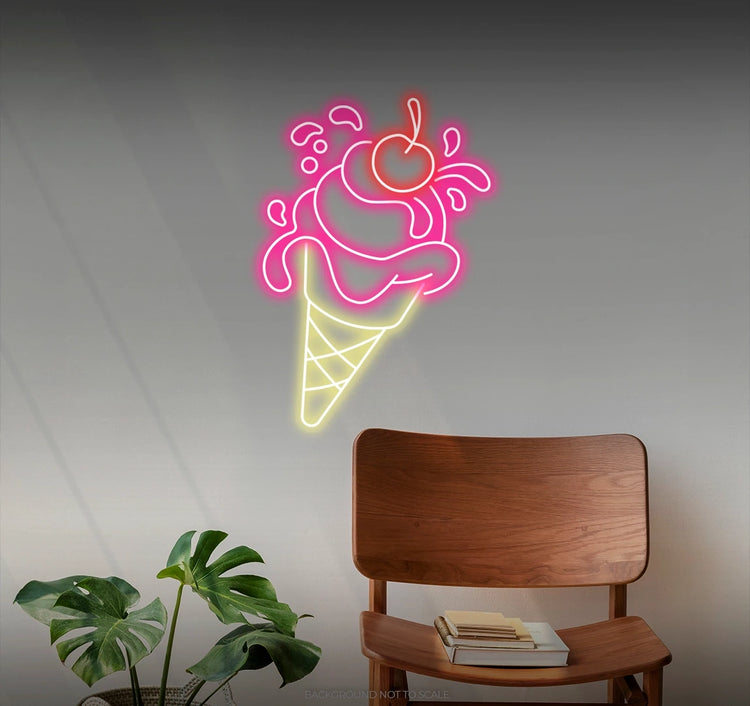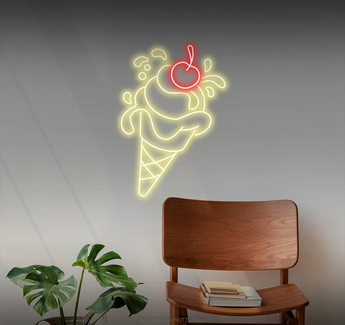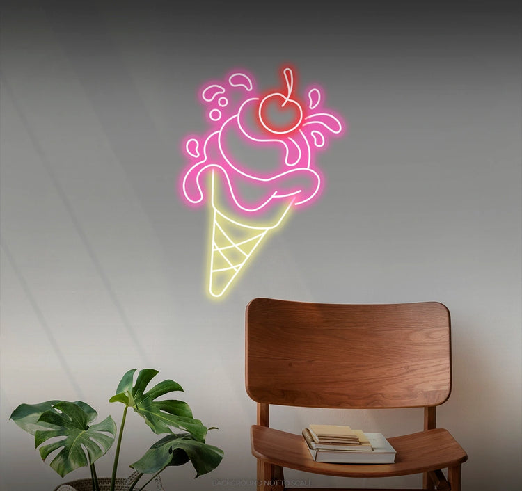 - Infuse your space with the perpetual allure of the "Ice Cream Cone with Cherry" LED Neon.