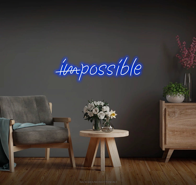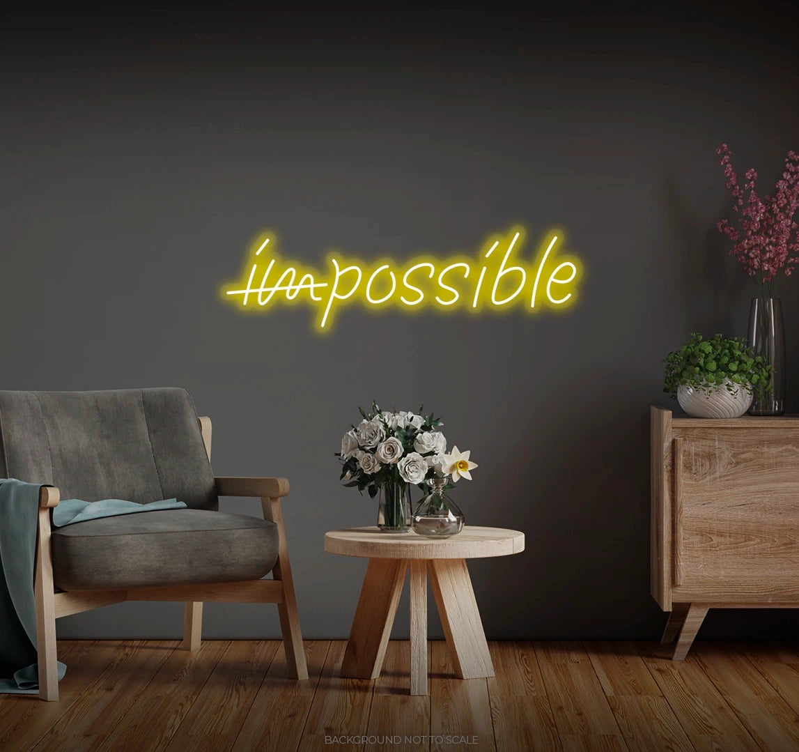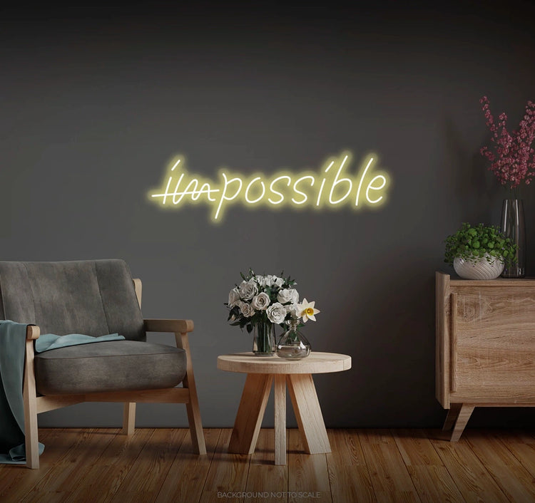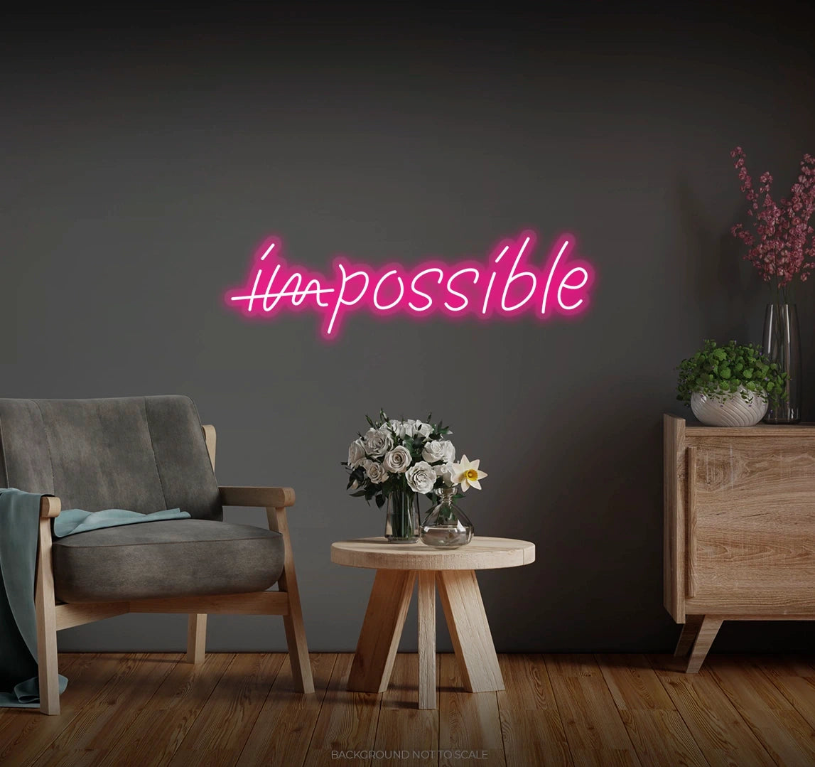 Order Your "Impossible Possible" LED Neon Today! Don't miss this opportunity to bring a touch of motivation and positivity into your space. Order your "Impossible Possible" LED Neon today and let the inspirational charm of overcoming challenges guide you through a world of determined moments! Illuminate your space with the radiant glow of our "Impossible Possible" LED Neon – an essential addition for go-getters and those who appreciate the timeless beauty of positive expressions. 🌟✨