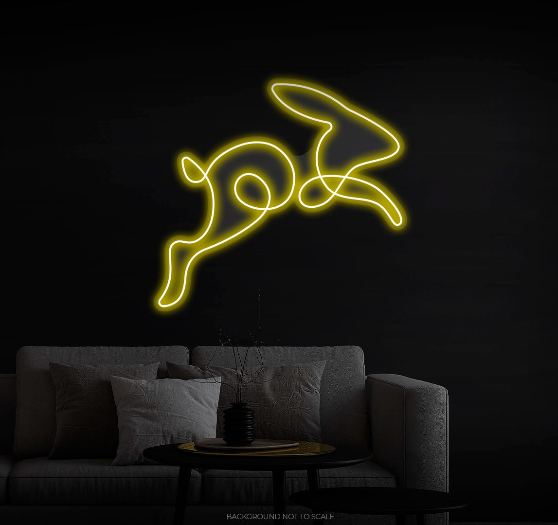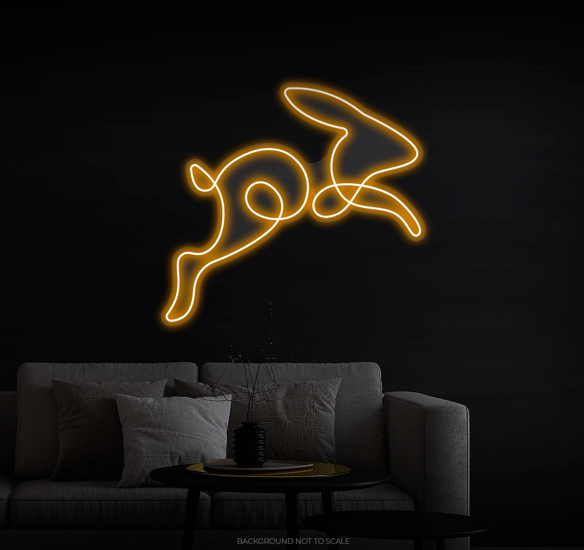 Hop into style with the Jumping Bunny One-Line Art LED Neon. Order today and bring a delightful, glowing bunny into your space!