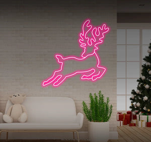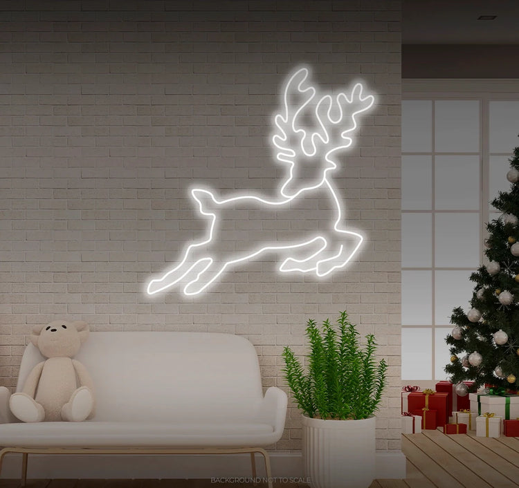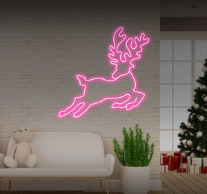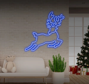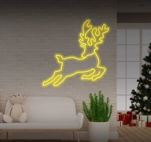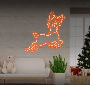 Jumping reindeer looking back LED neon