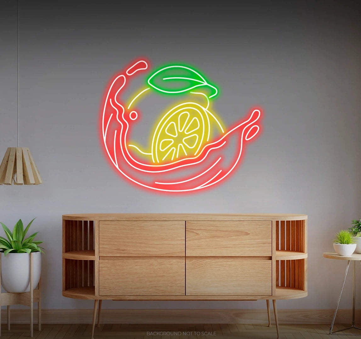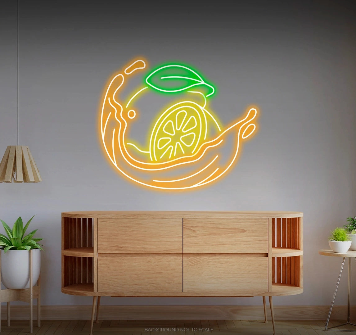 Vibrant Design: Illuminate your space with the vibrant depiction of lemon liquid splashing, symbolizing the burst of flavor and aroma that accompanies citrus. Beyond its luminosity, our LED neon sign captures the essence of rejuvenation and vitality, inviting viewers to embrace the zest for life.