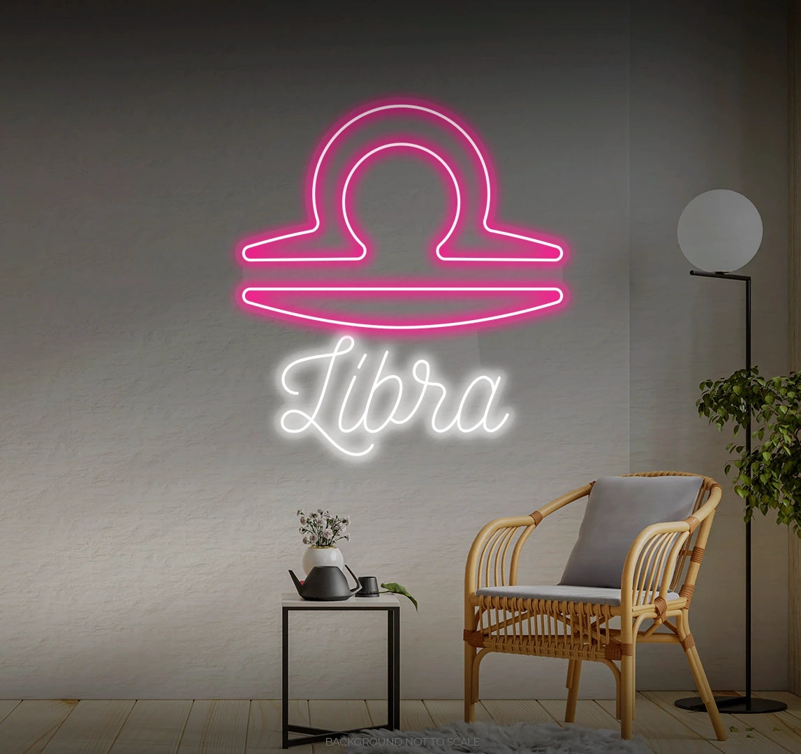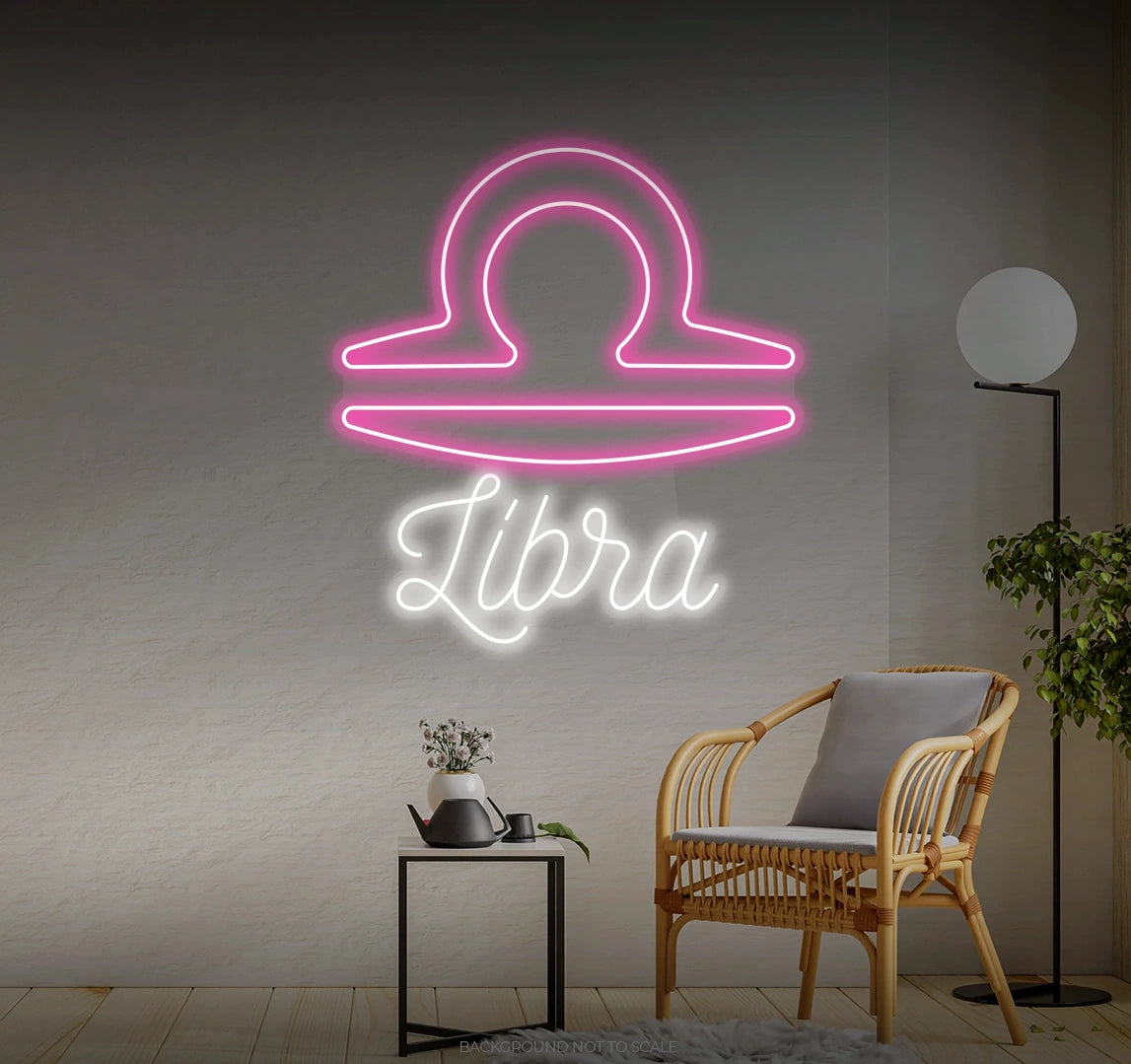 Elevate Your Space with Serenity: Embrace the peaceful energy of Libra with our LED neon sign, casting a serene glow that enhances the ambiance and tranquility of your space, inspiring harmony and relaxation.