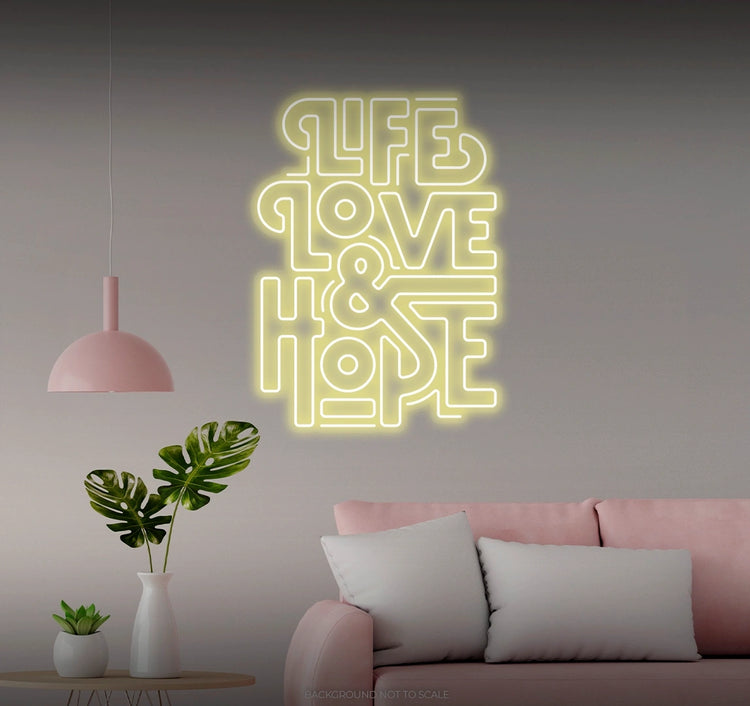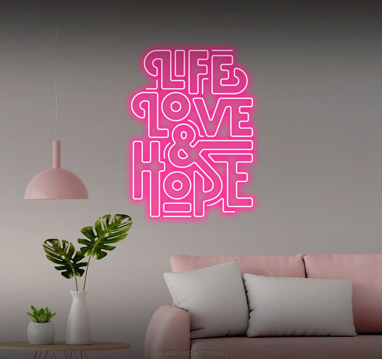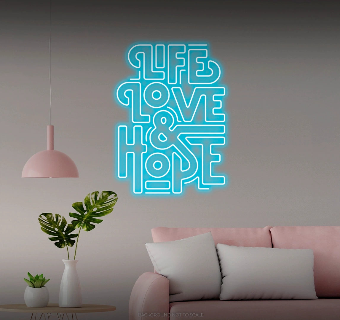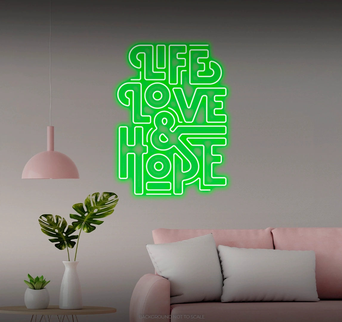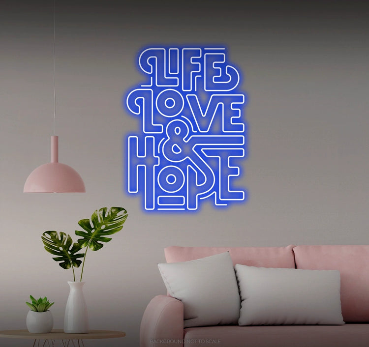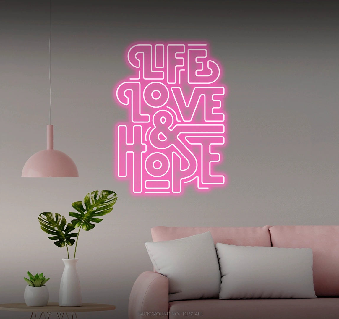 7. Enduring Expression: Infuse your space with the perpetual allure of "Life Love Hope" LED Neon. It's not just a decorative piece; it's a tribute to the enduring joy and beauty that come with embracing the core values that define a meaningful life, beautifully illuminated by the captivating glow of the LED Neon.