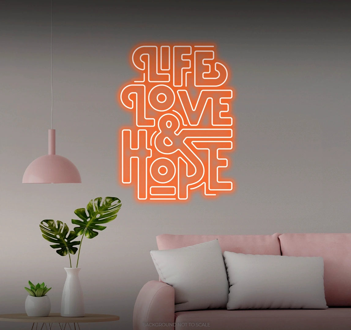 4. Timeless Signage Elegance: Illuminate your space with the captivating glow of our "Life Love Hope" LED neon sign. It doesn't just light up; it radiates with the timeless charm of life-affirming values, capturing the essence of positivity in a stylish design.