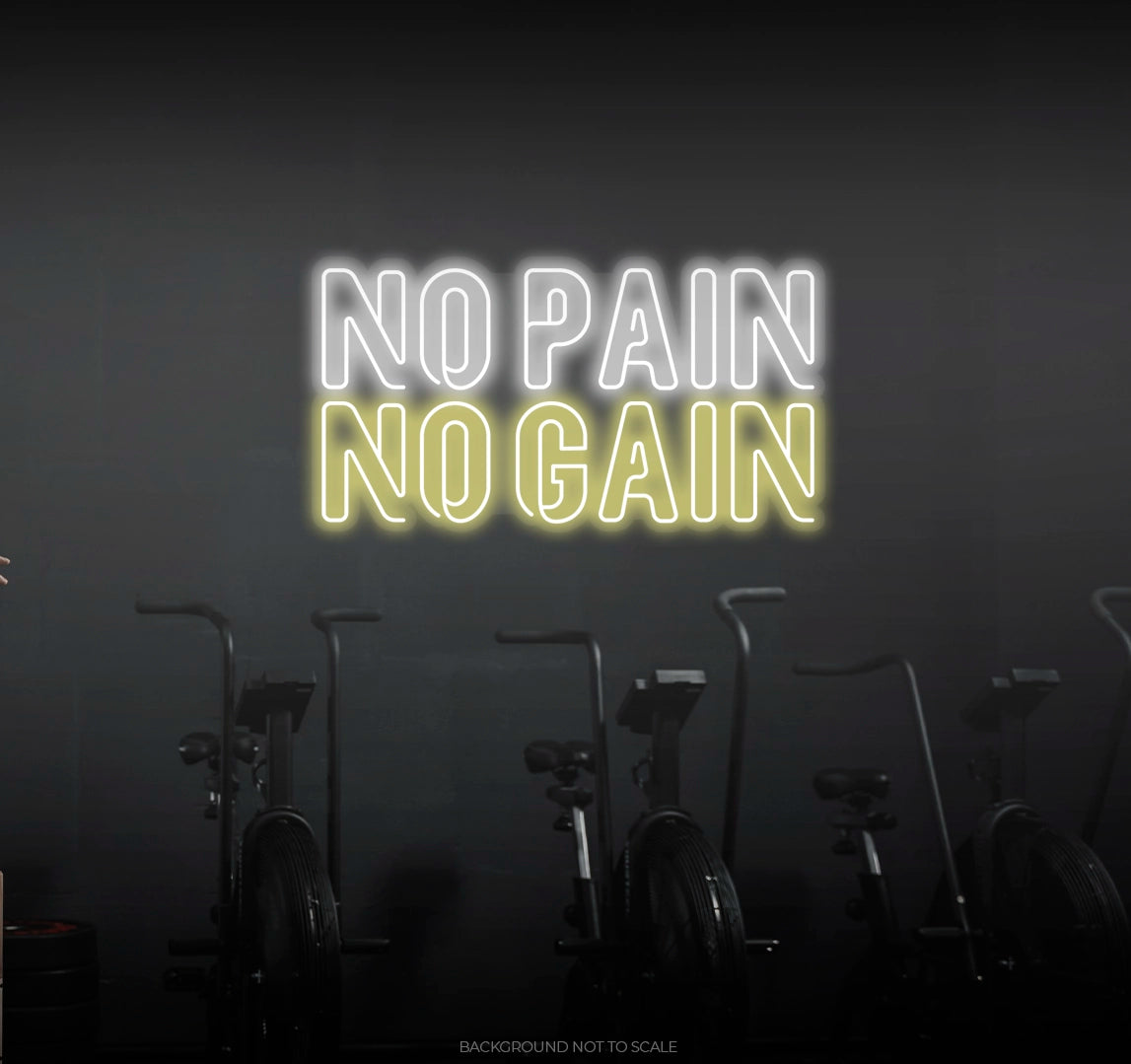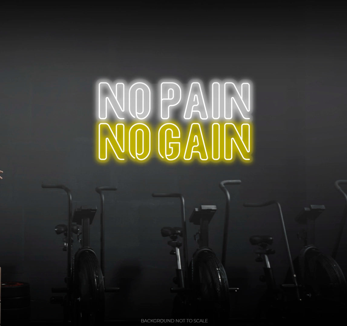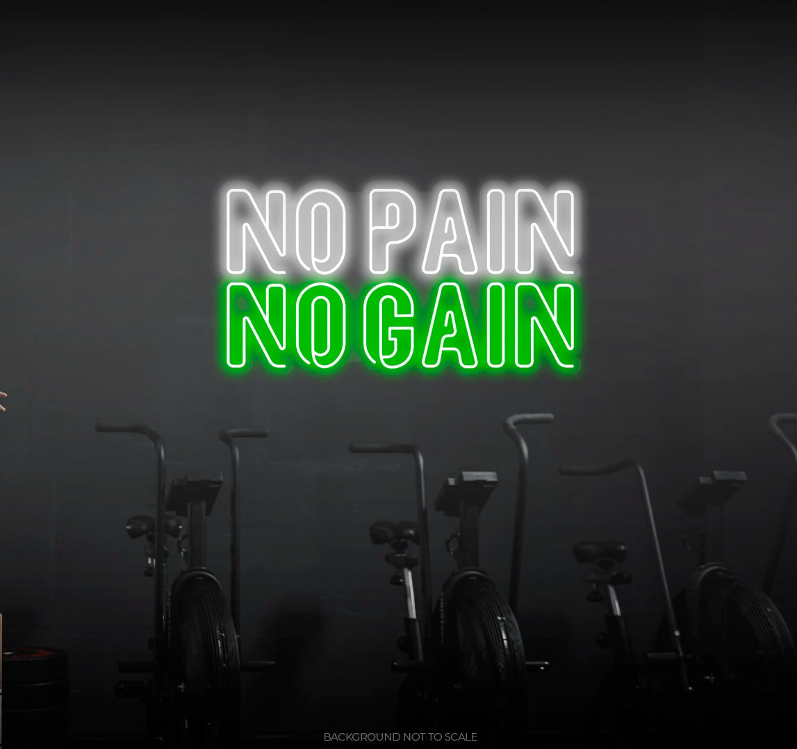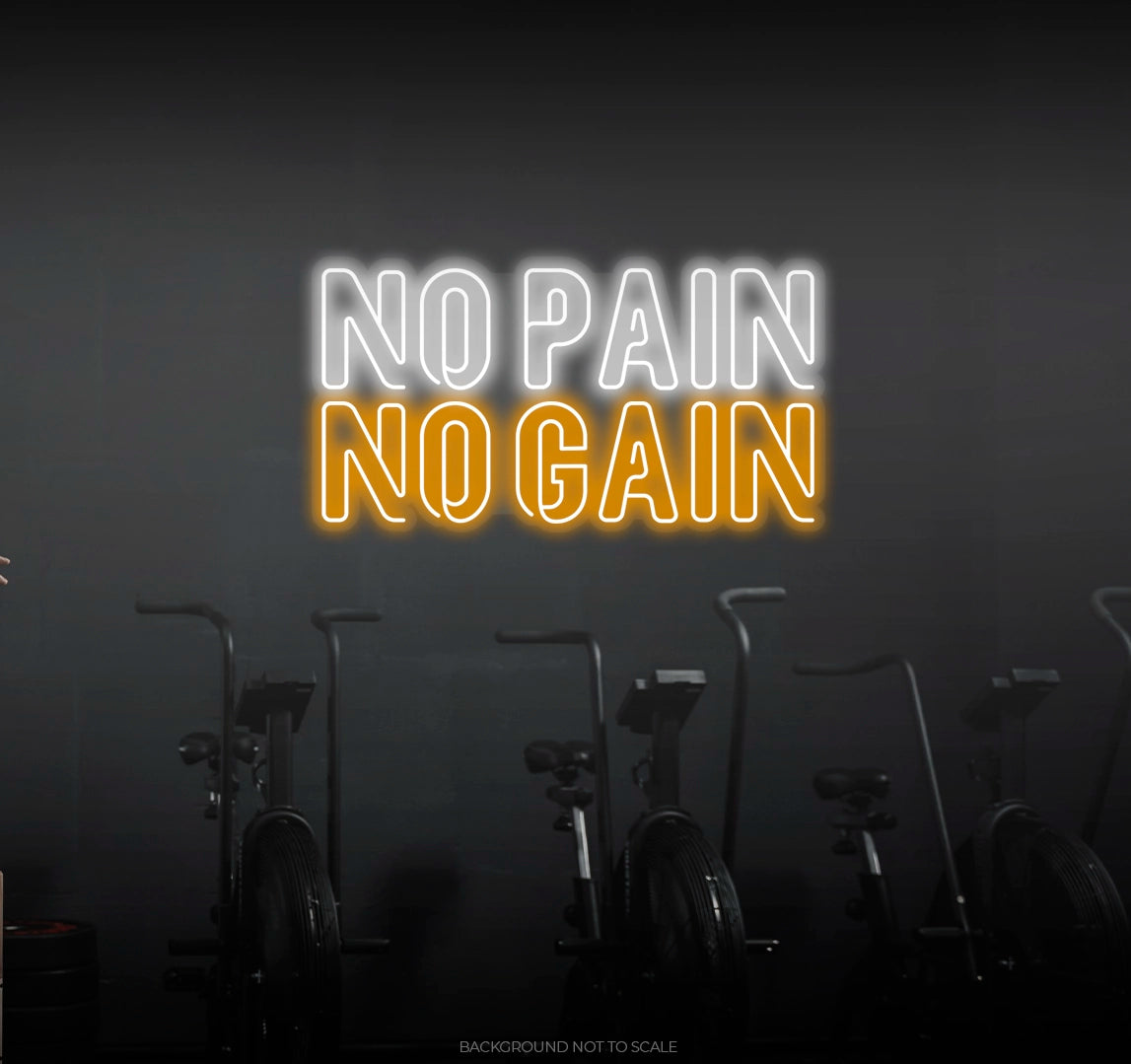 1. Inspirational Neon Glow: Our LED neon sign replicates the inspirational and motivational phrase "No Pain, No Gain," setting the mood for embracing challenges and achieving progress.