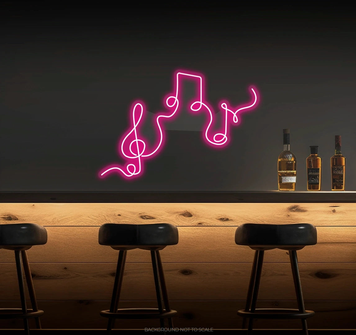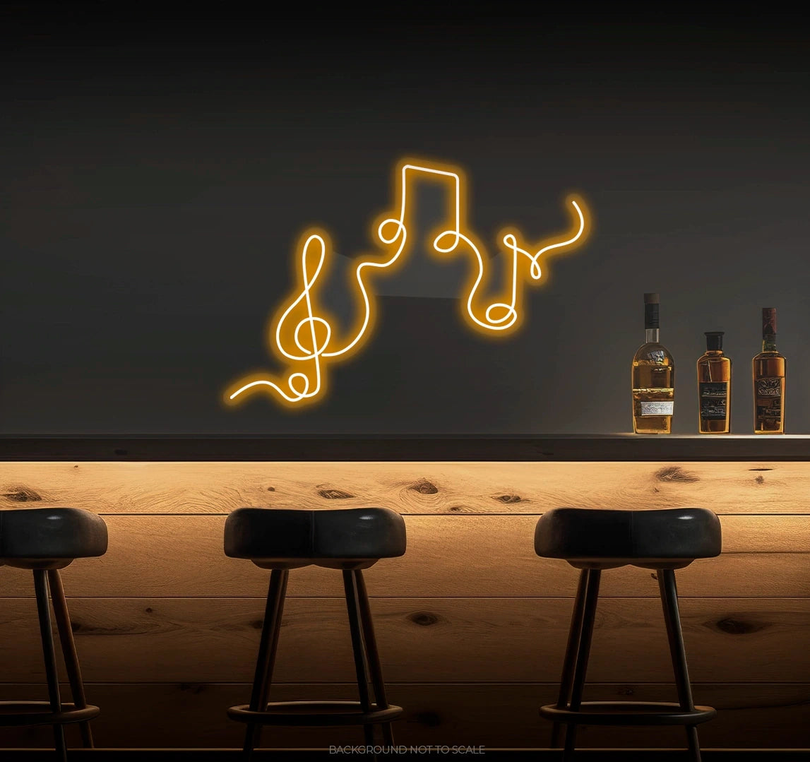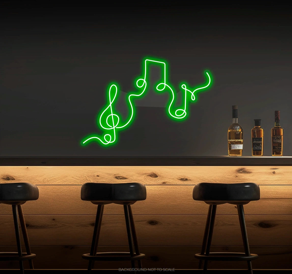 Harmonious Glow: Our LED neon sign beautifully captures the iconic music notes, while harnessing the energy-efficient and long-lasting benefits of modern LED technology. Immerse yourself in its dynamic radiance that instantly transforms your space into a musical sanctuary.
