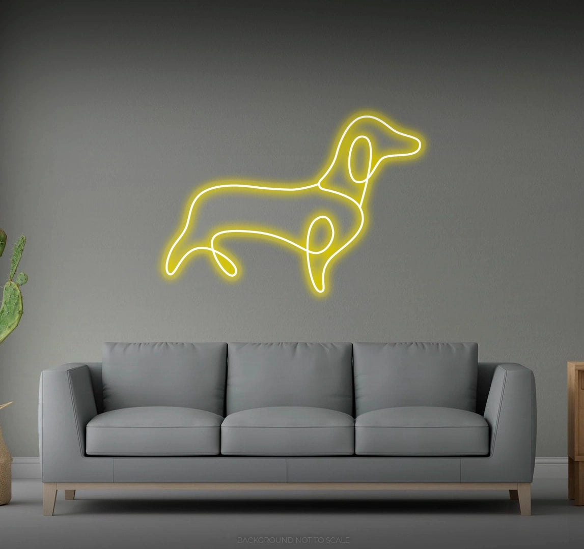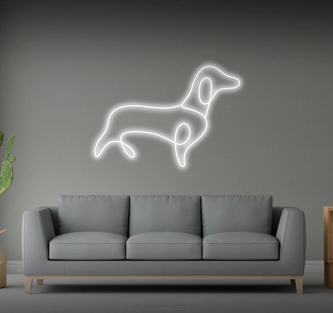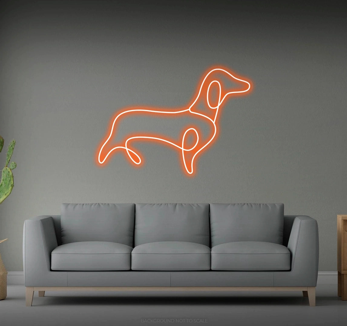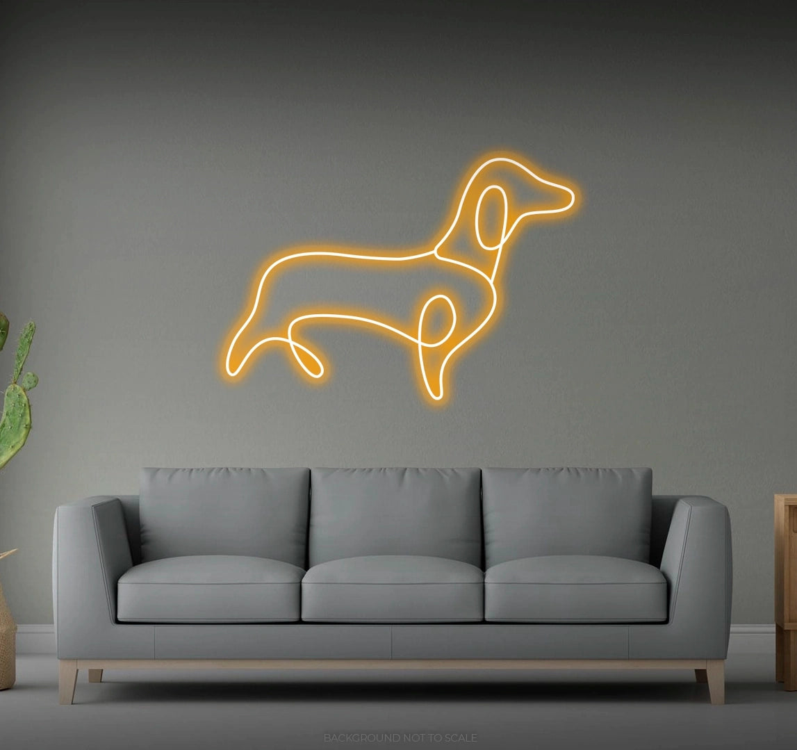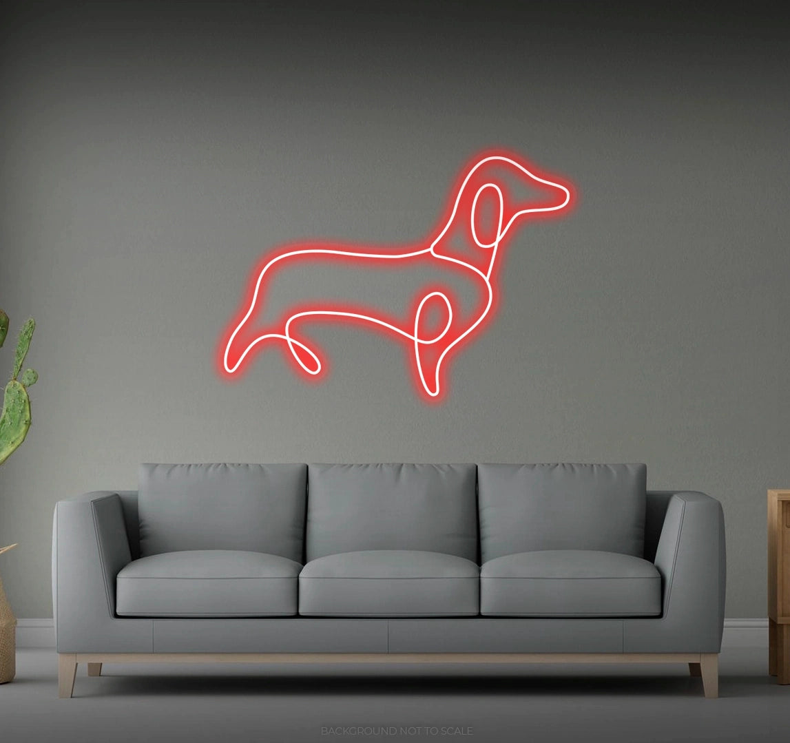 Elevate Your Space with Canine Vibes: Embrace the charming and playful ambiance with our LED neon sign, casting a radiant glow that symbolizes the spirit of canine companionship within the phrase "One Line Sausage Dog."