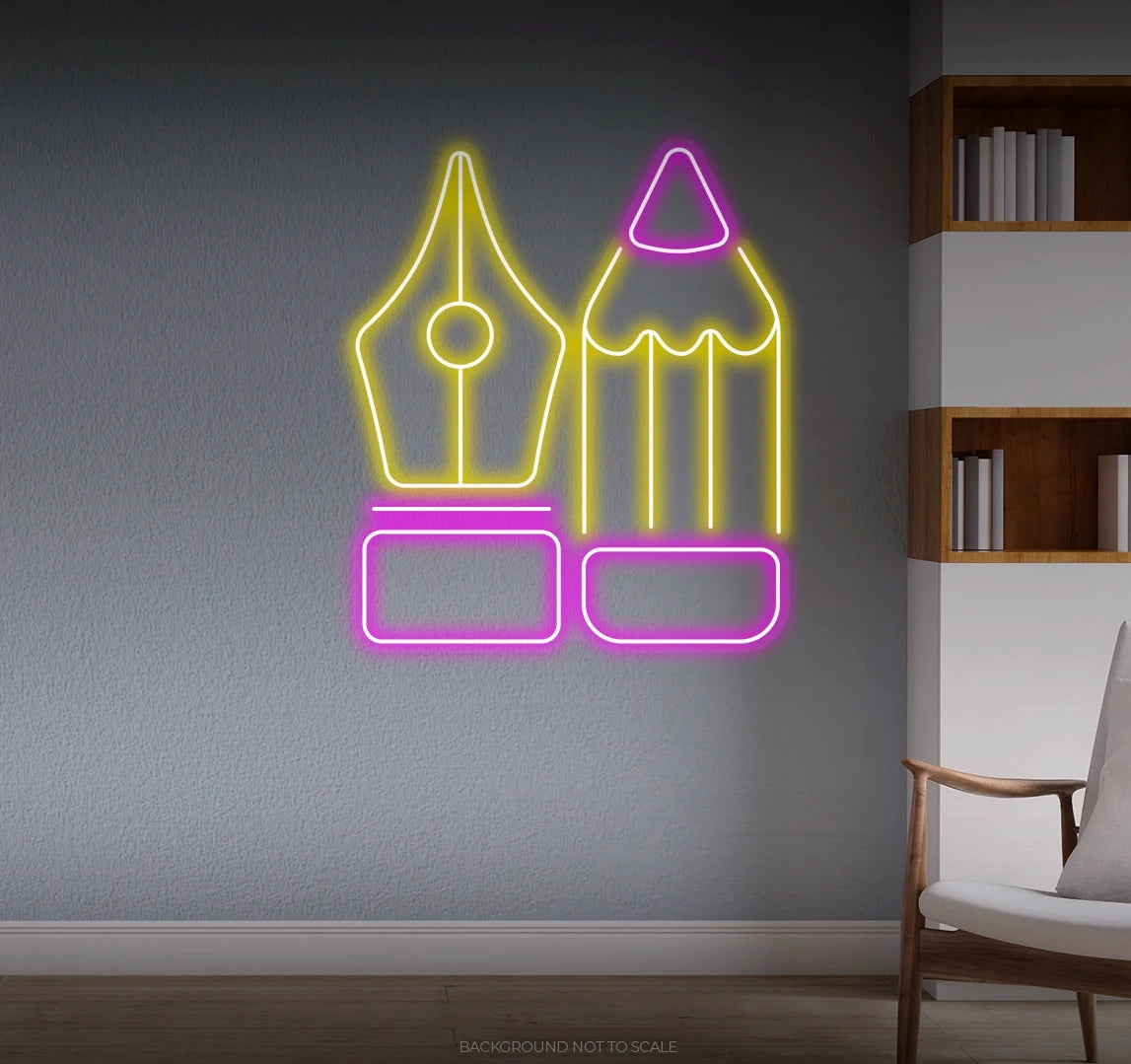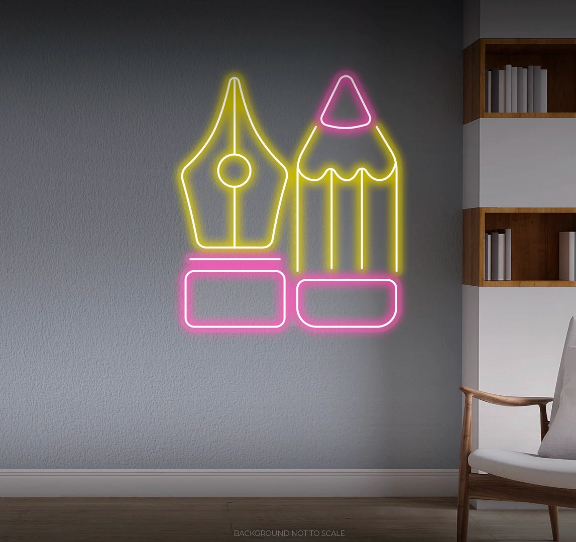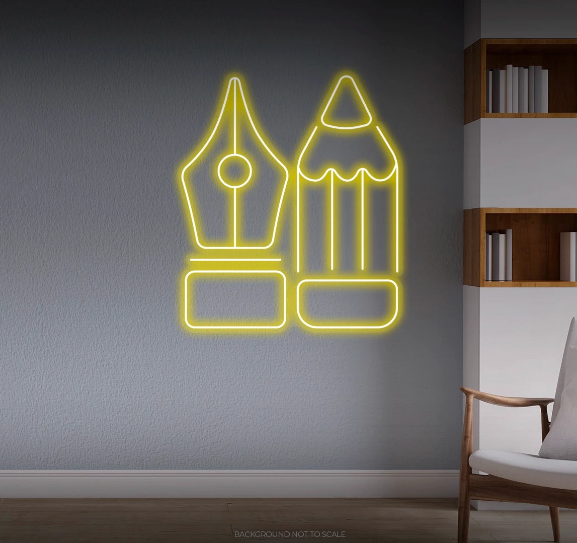 Elevate Your Space with Inspiration: Embrace the inspiring presence of the "Pen and Pencil" with our LED neon sign, casting a radiant glow that enhances the ambiance and productivity of your space, inspiring new ideas and artistic endeavors.