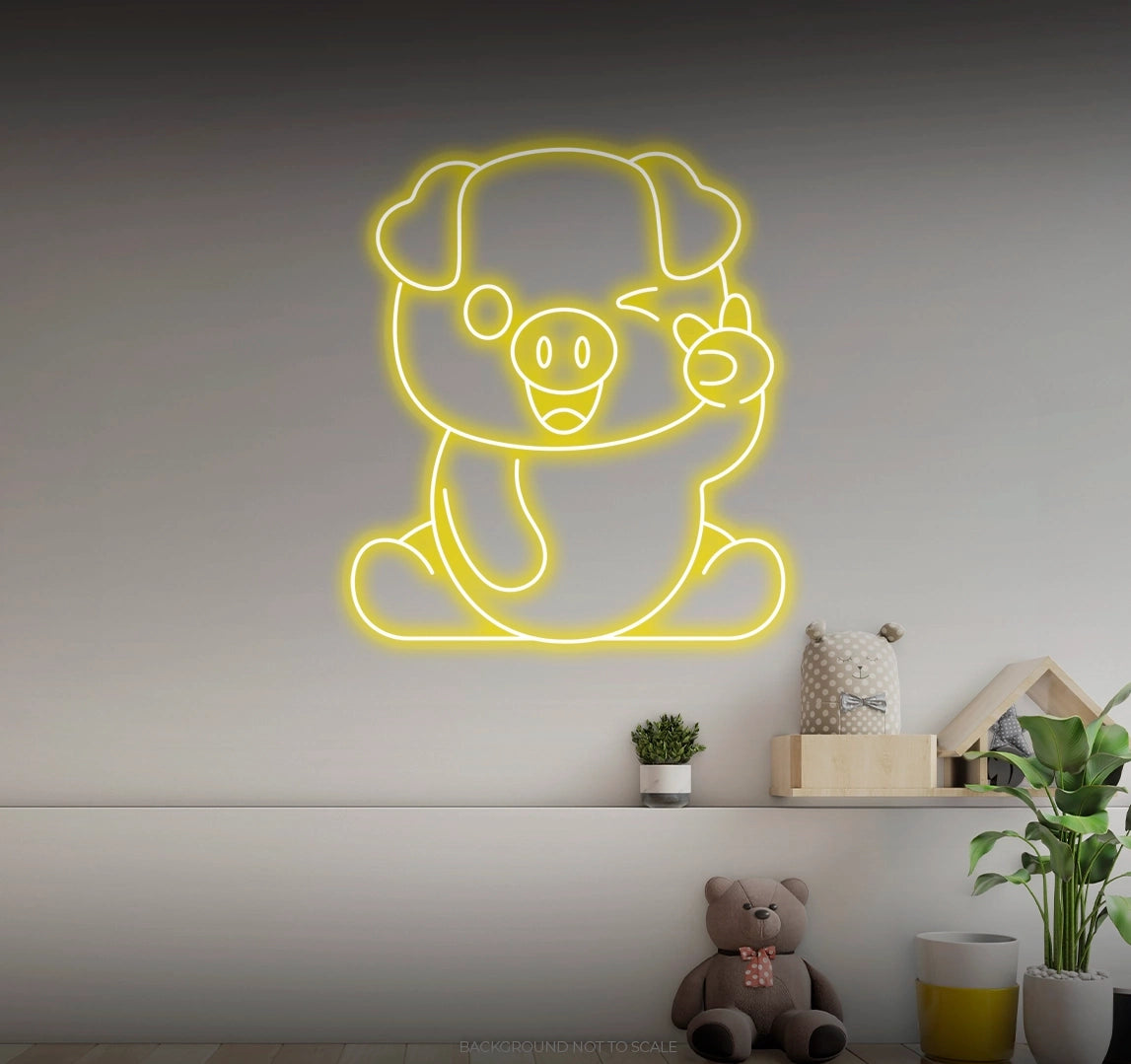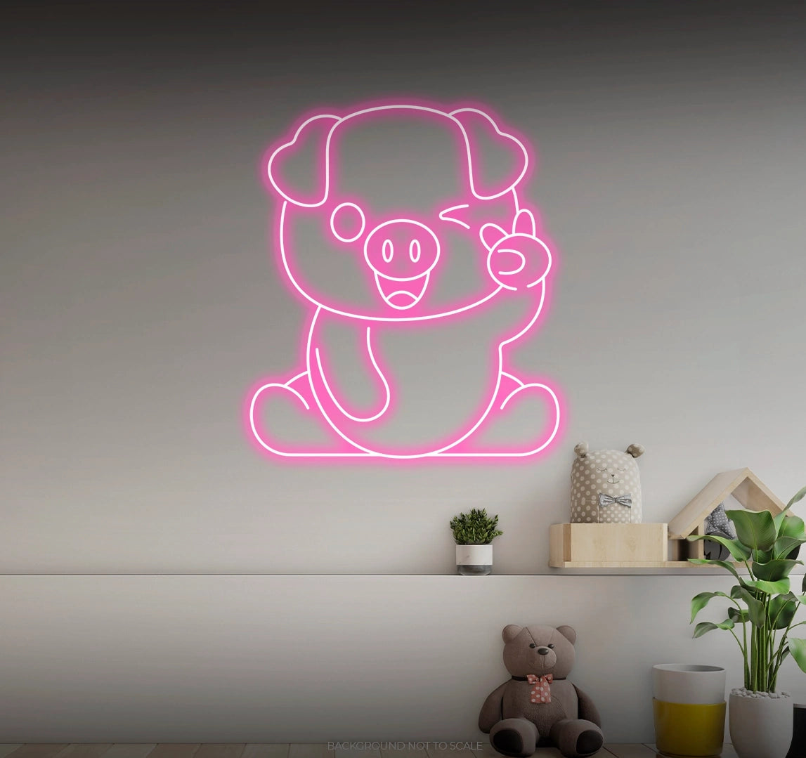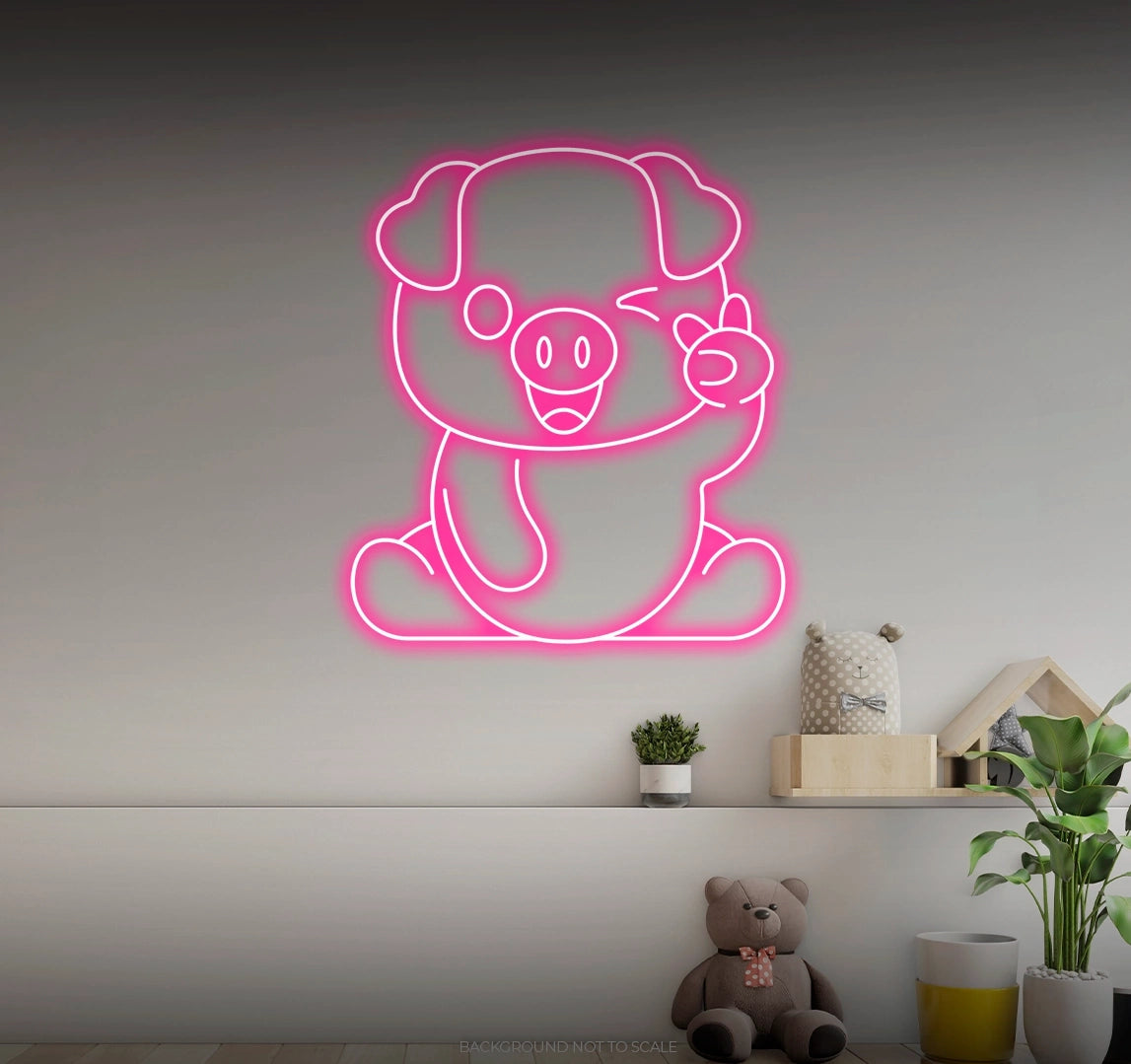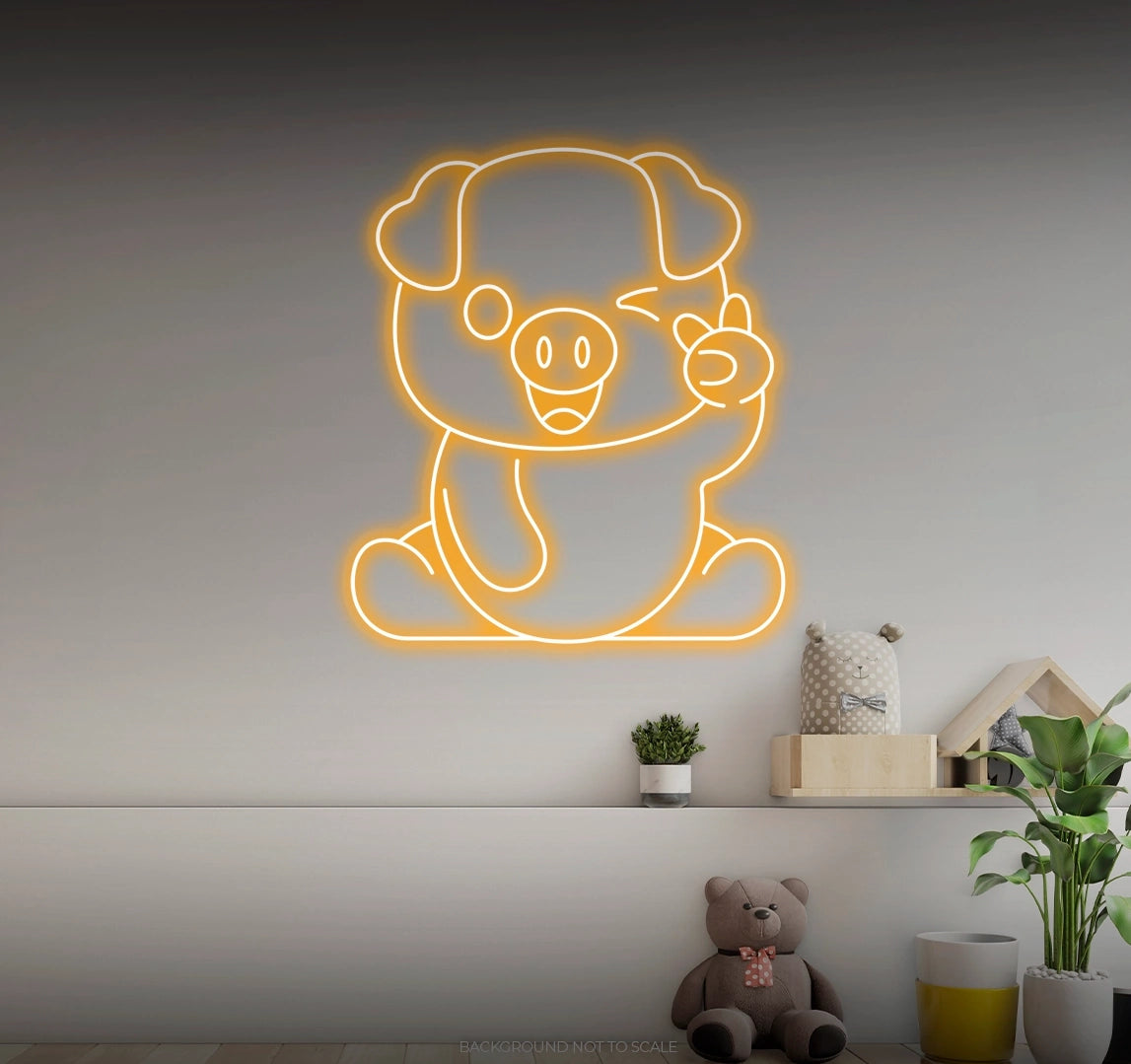 Animal Signage Splendor: Illuminate your space with the captivating glow of our "Pig Peace" LED neon sign. It doesn't just light up; it radiates with the timeless charm of a peaceful pig, capturing the essence of animal joy and the heartwarming allure of the delightful creature.